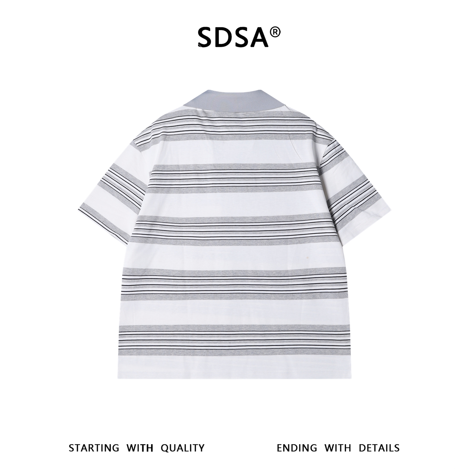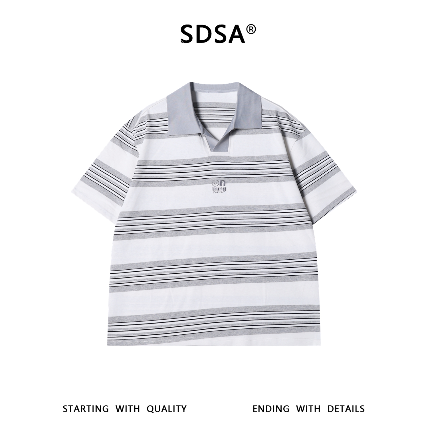 SDSA男装2026新款轻奢老钱风撞色条纹翻领短袖T恤刺绣字母百搭