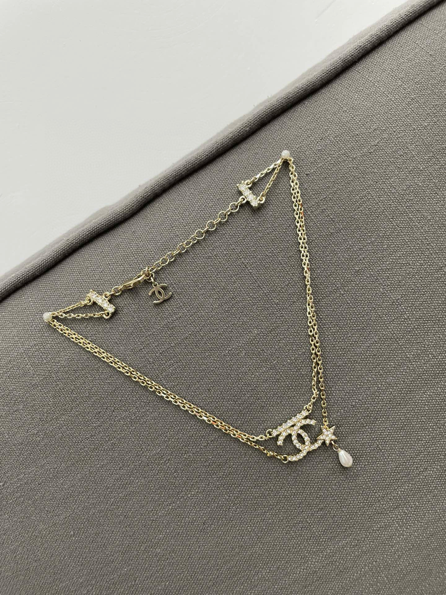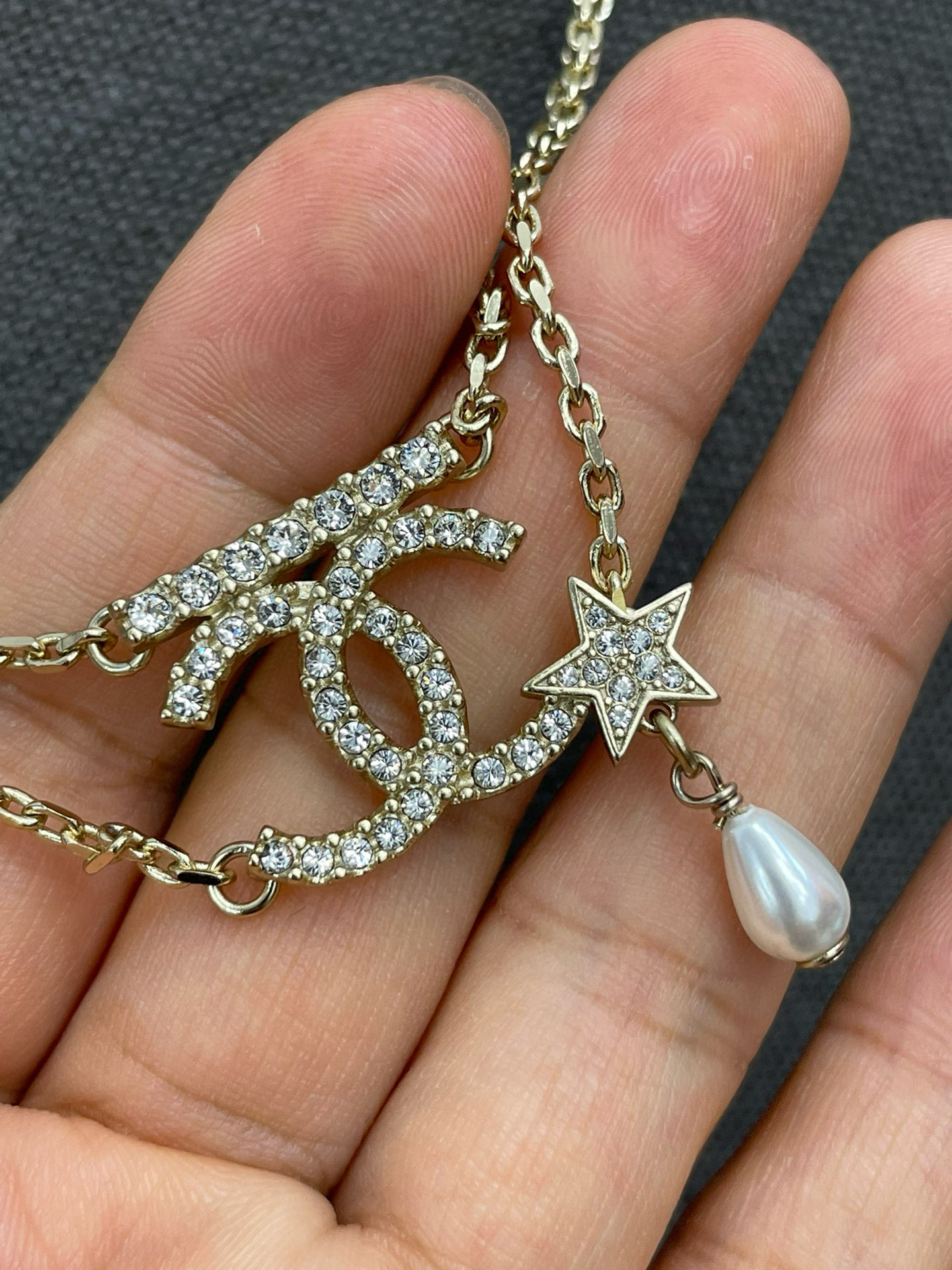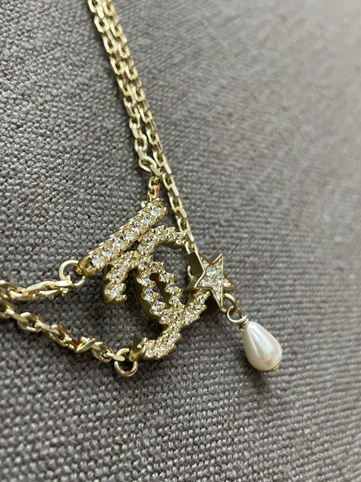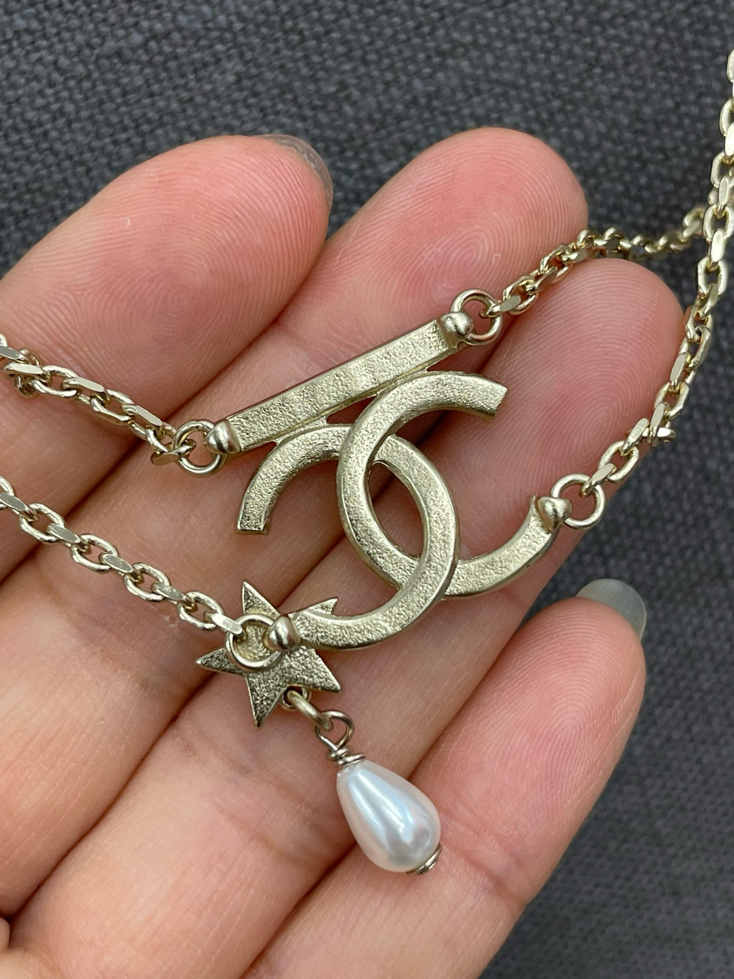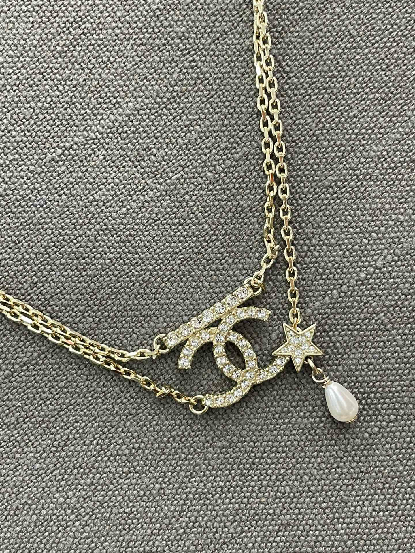 22春夏浅金色 双C 五角星 水滴珍珠choker实拍展示