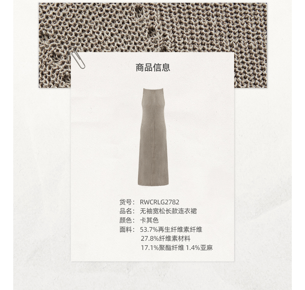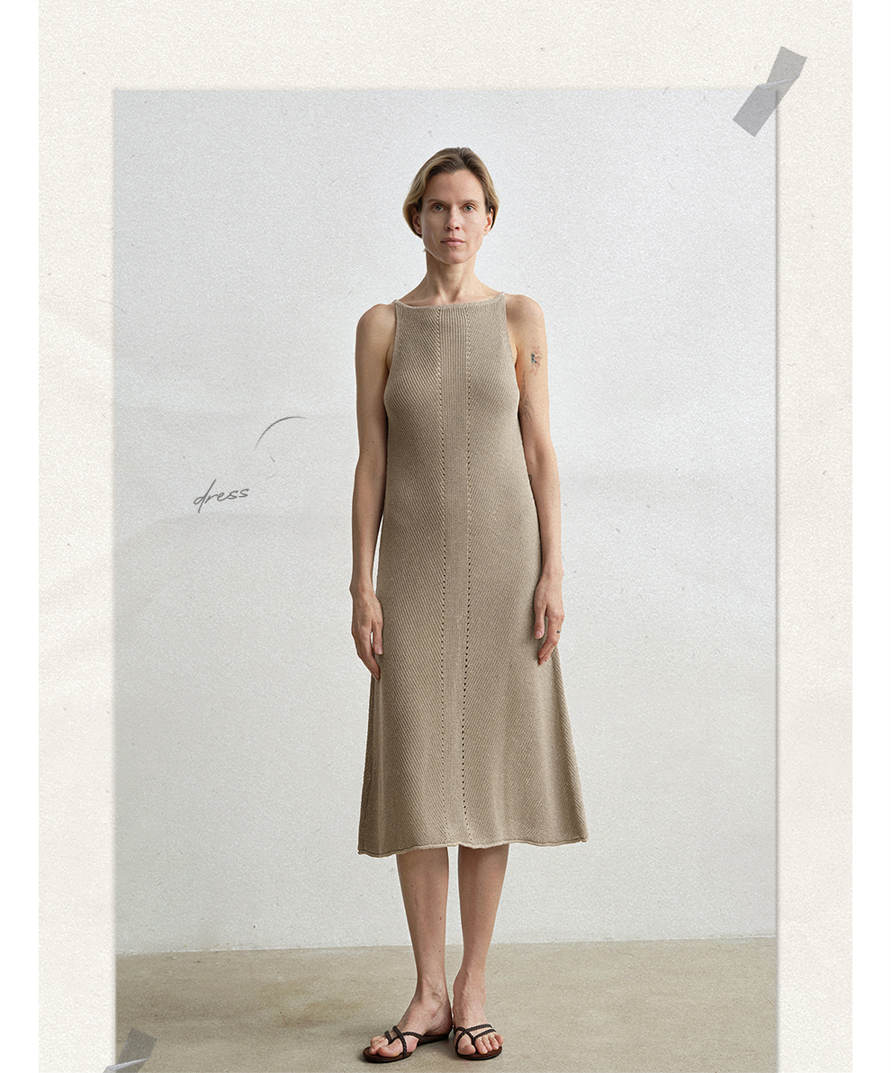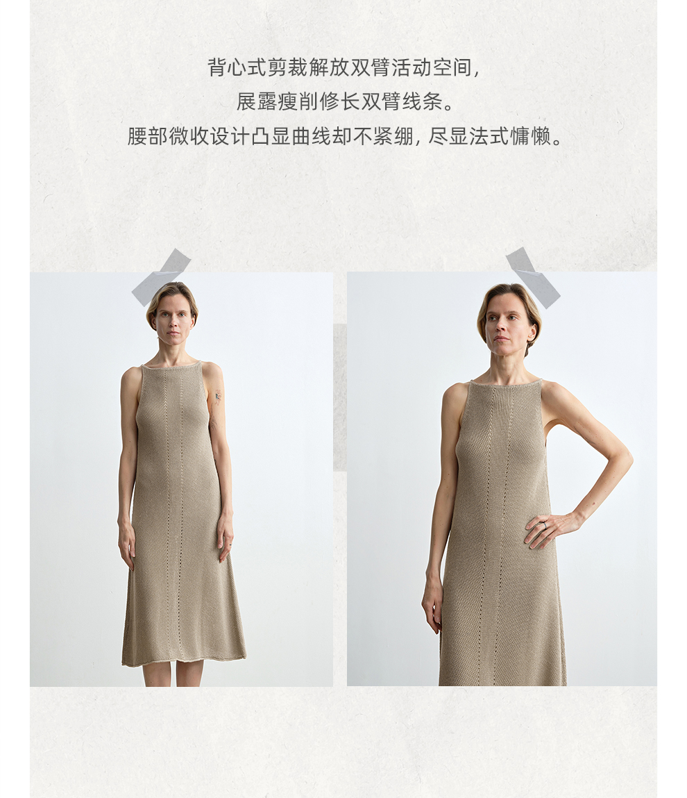 ROMI STUDIO 亚麻和纸纱混纺镂空无袖宽松长款连衣裙 RWCRLG2782