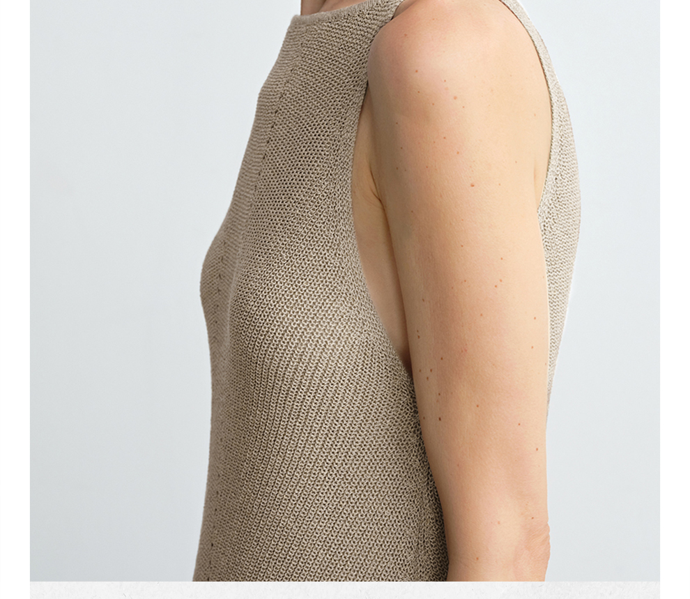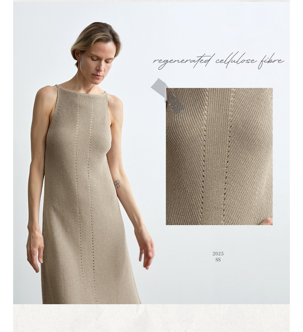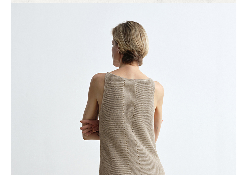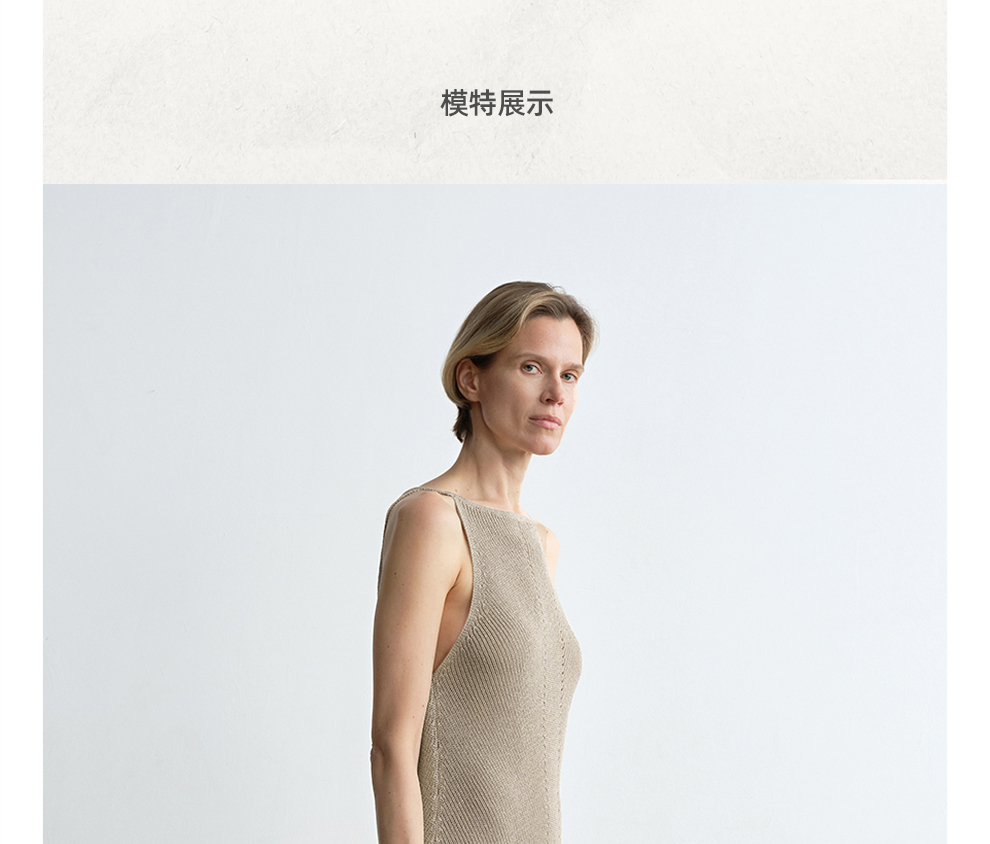 ROMI STUDIO 亚麻和纸纱混纺镂空无袖宽松长款连衣裙 RWCRLG2782