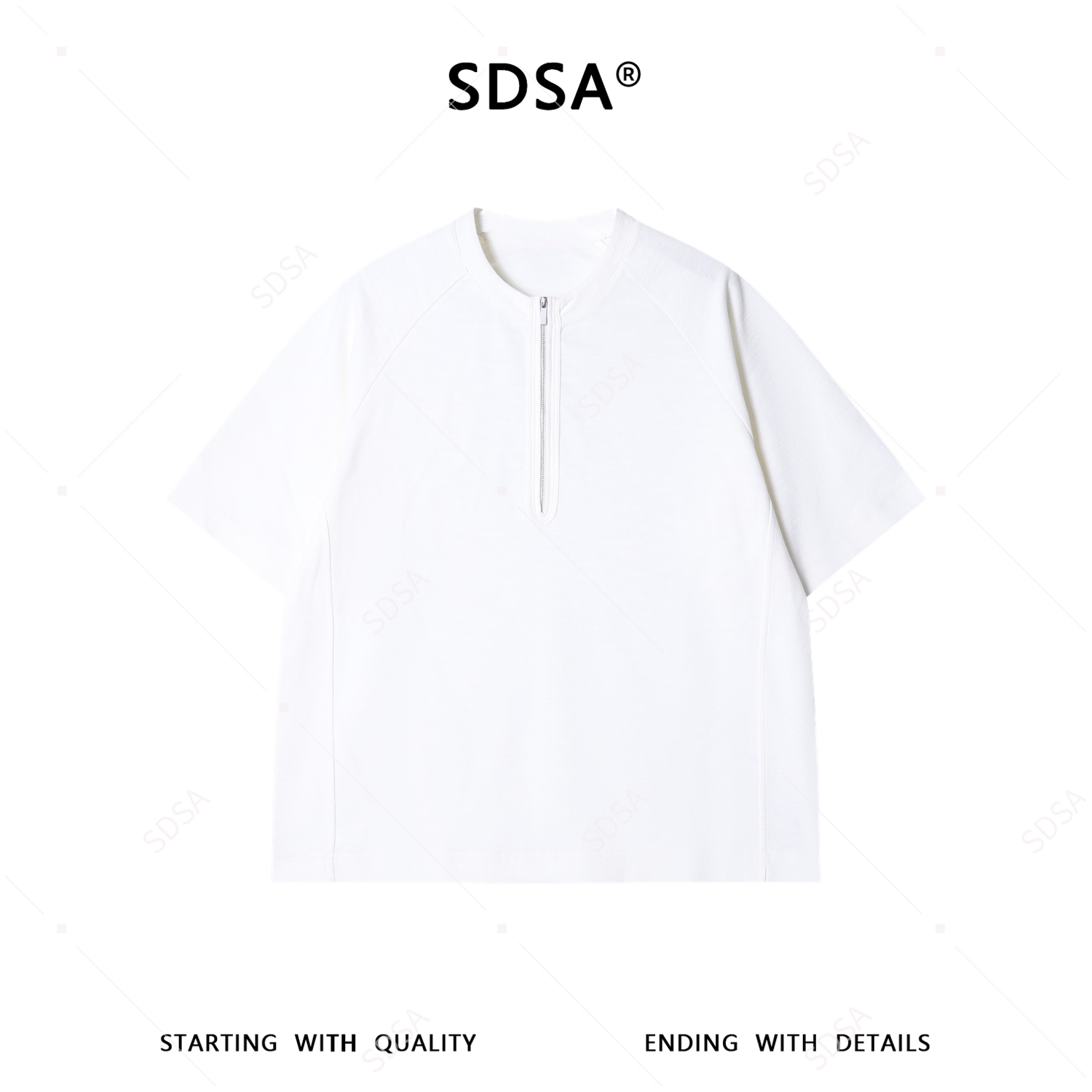 SDSA男装2026新款高贵轻奢简约时尚半拉链圆领短袖T恤宽松百搭潮