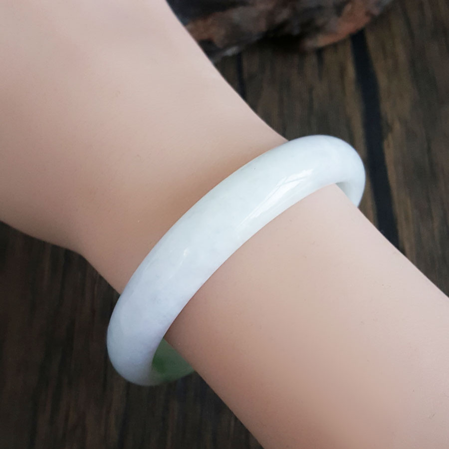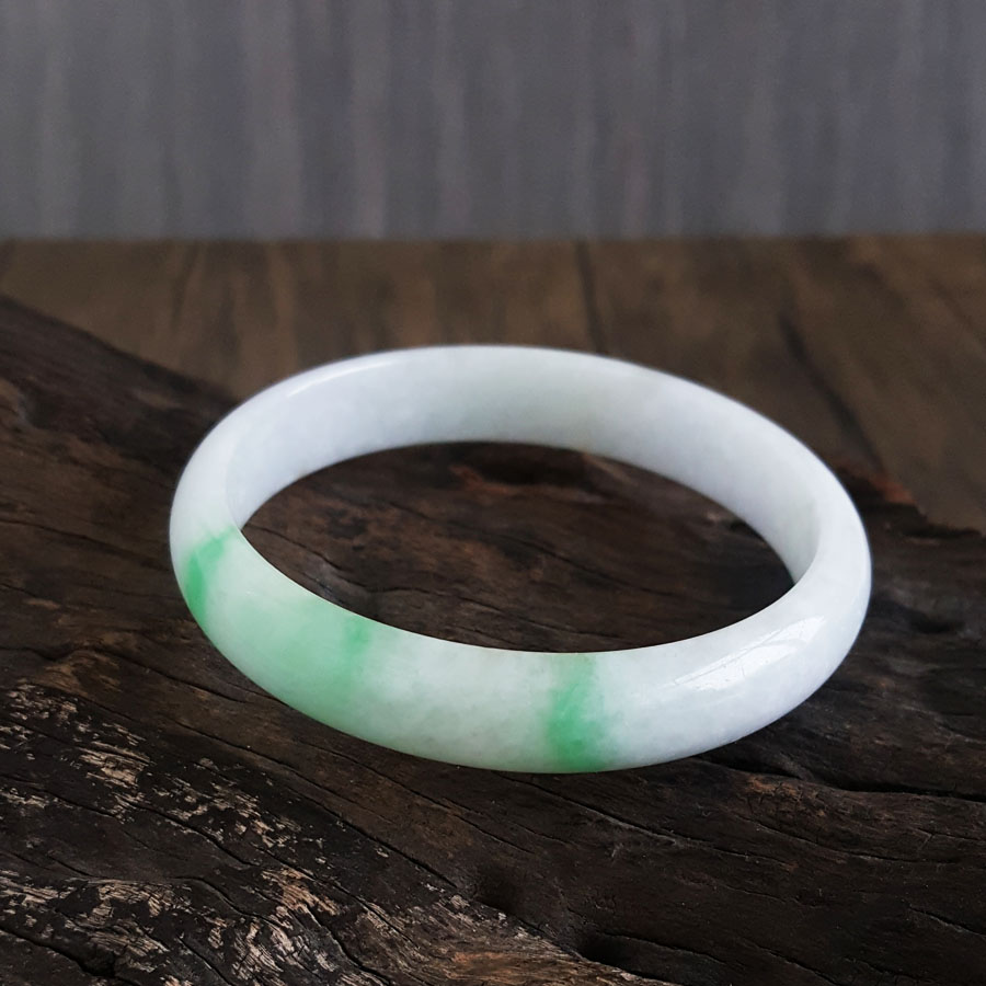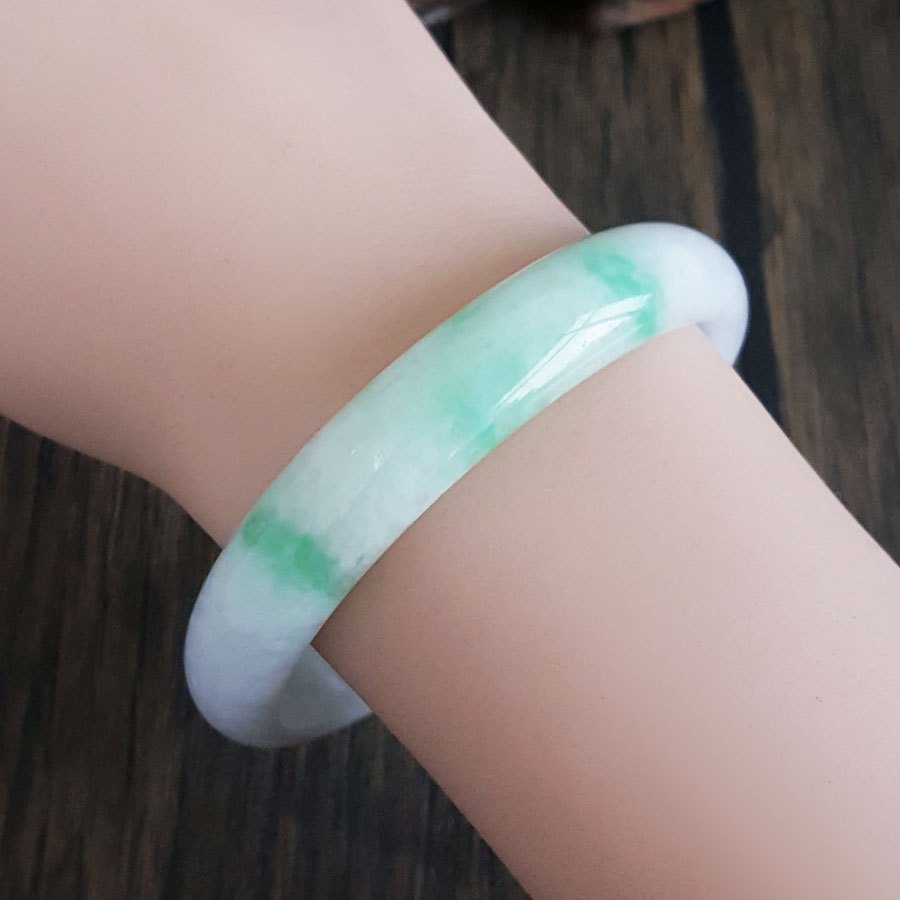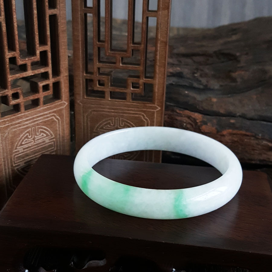 【天然正品】天然无纹裂细豆种飘绿58号翡翠手镯58MM女士现售价:1380特价!250125NJS17