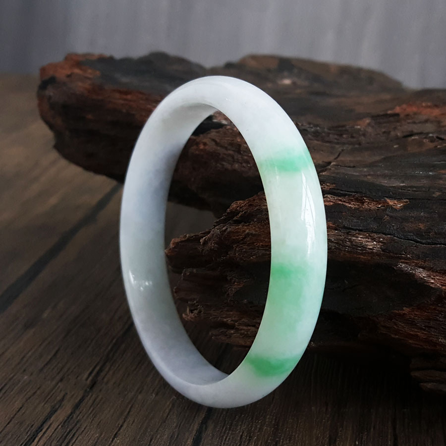 名称 | 天然无纹裂细豆种飘绿58号翡翠手镯 |