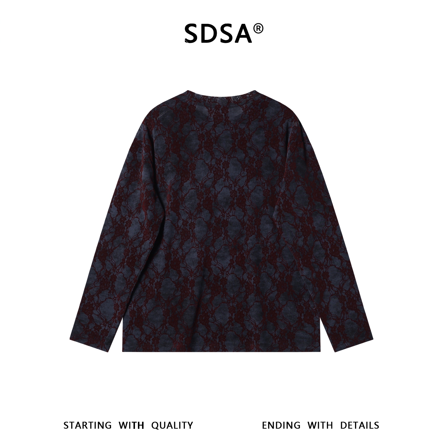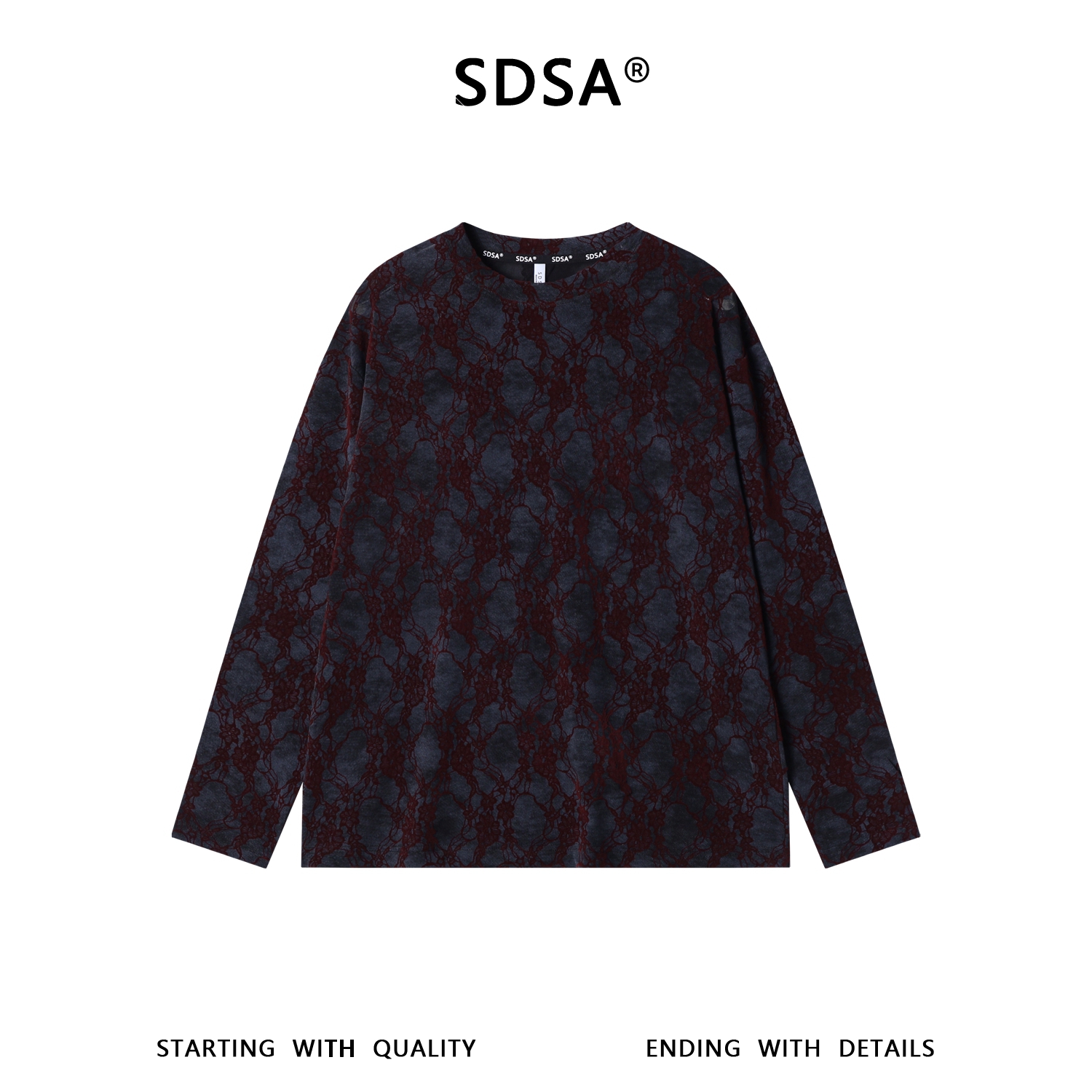 26T53SDSA男装2026新款潮牌植绒长袖男女同款红纹植绒宽松圆领T恤
