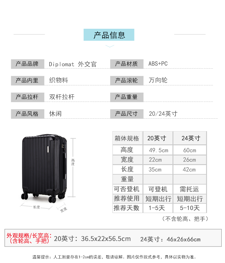 Diplomat外交官轻奢商务箱TC-651系列20/24寸行李箱商场款