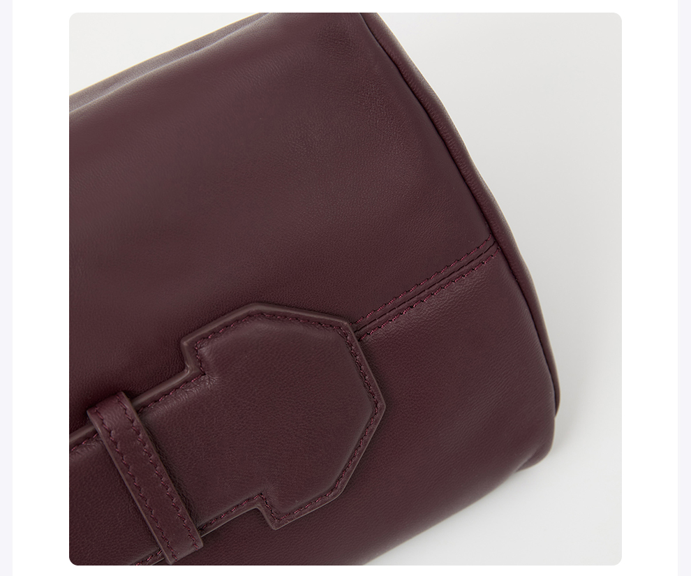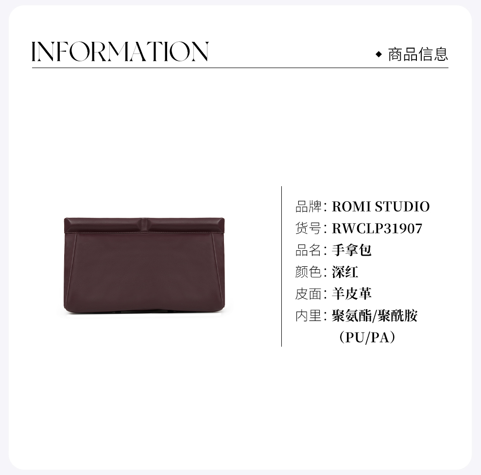 ROMI STUDIO低奢通勤复古荔枝纹羊皮小方酒红手拿包RWCLP31907