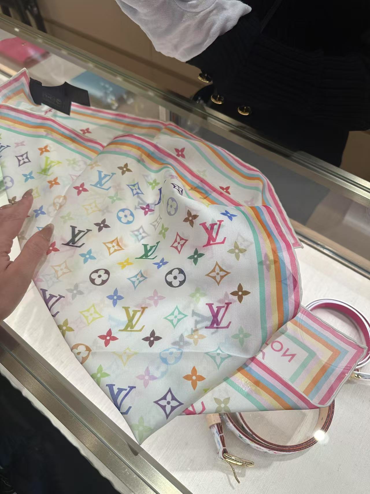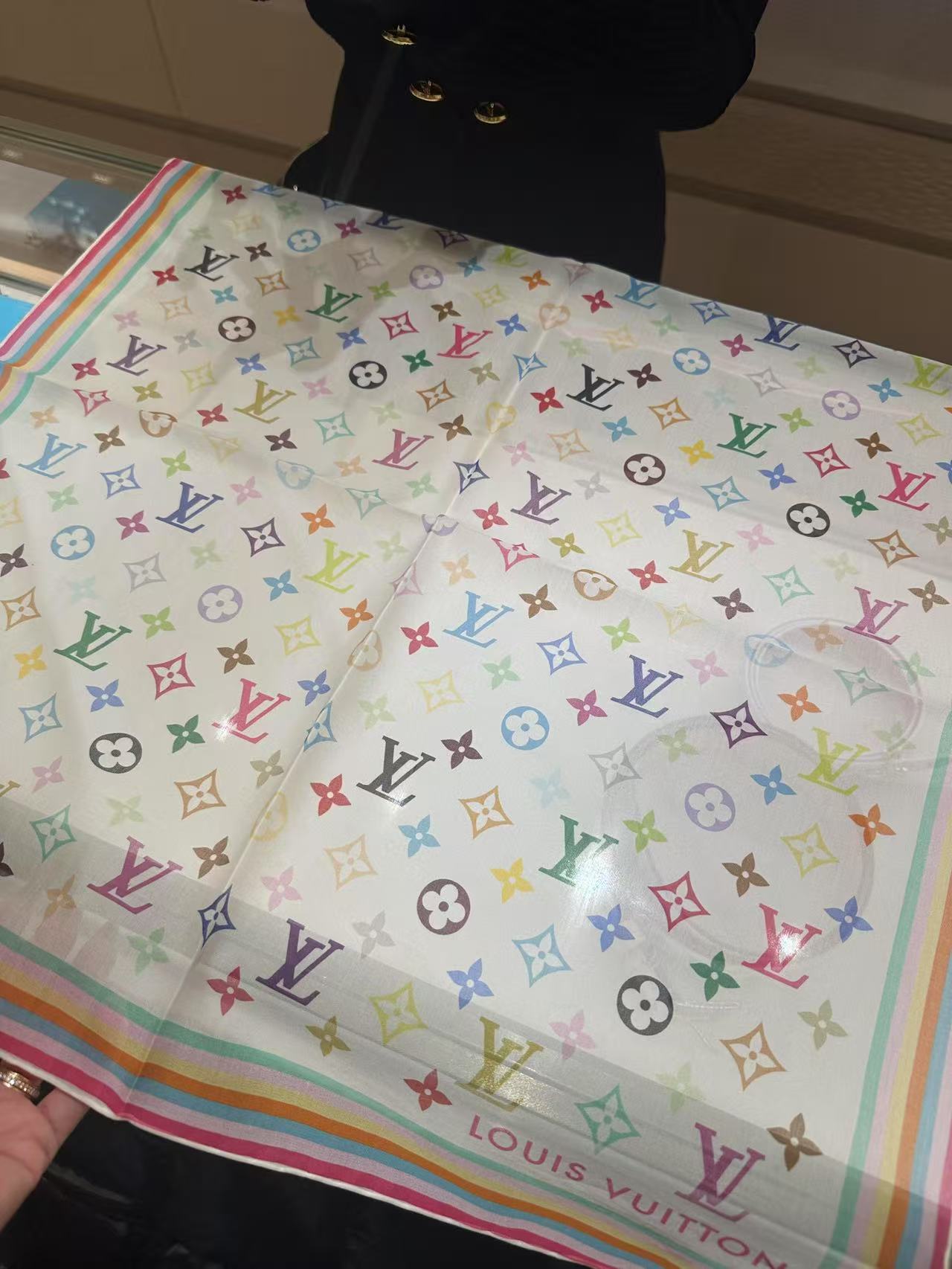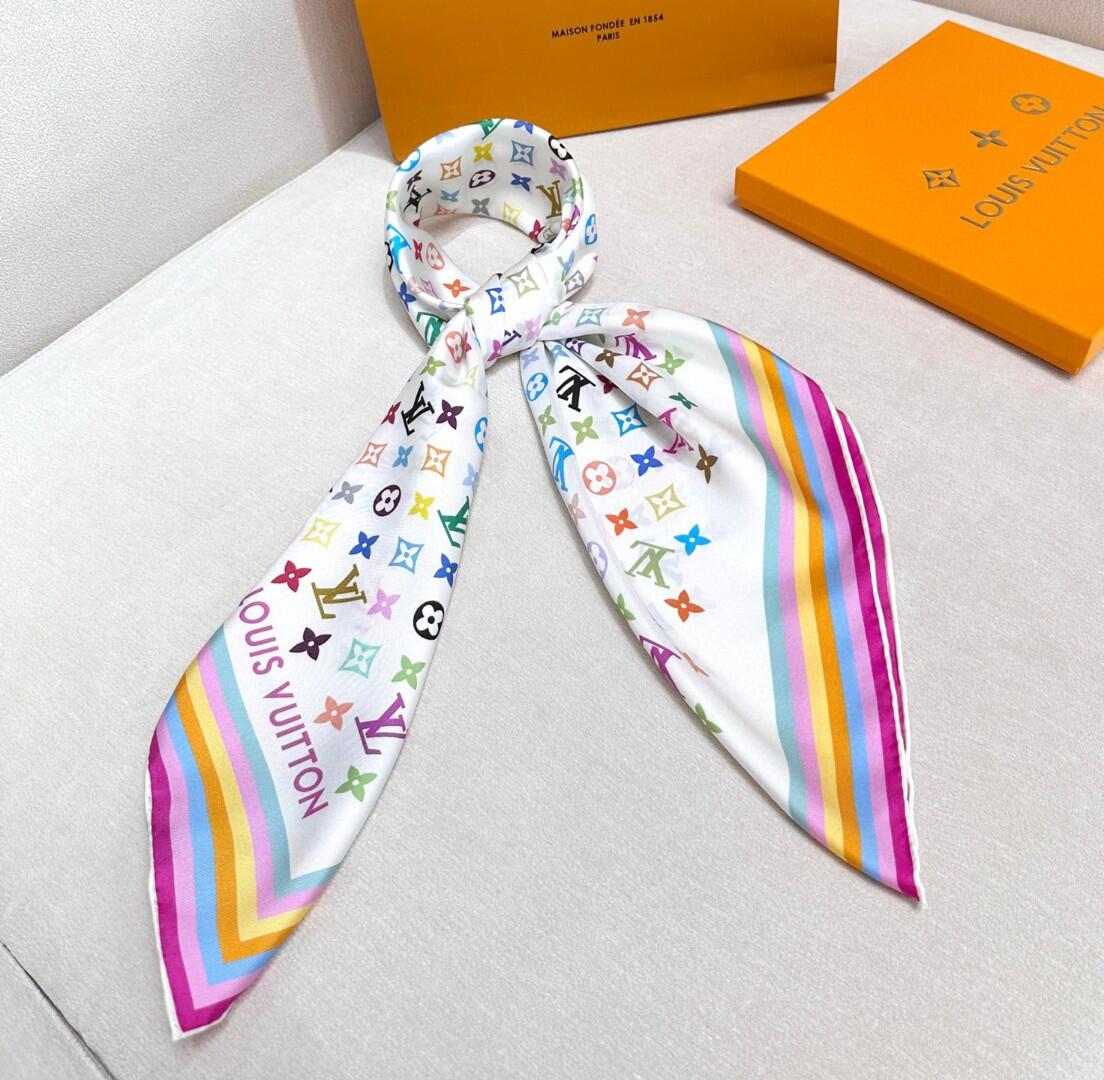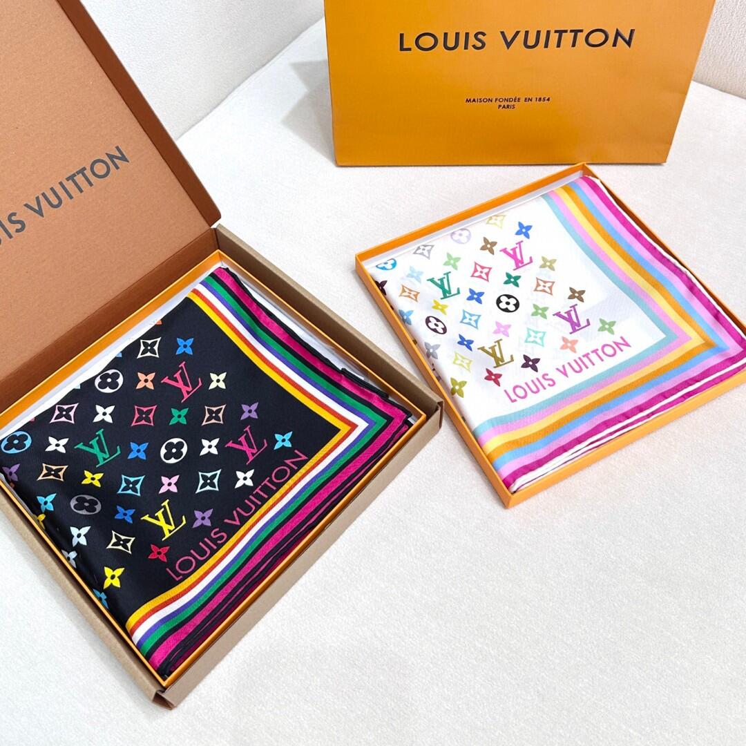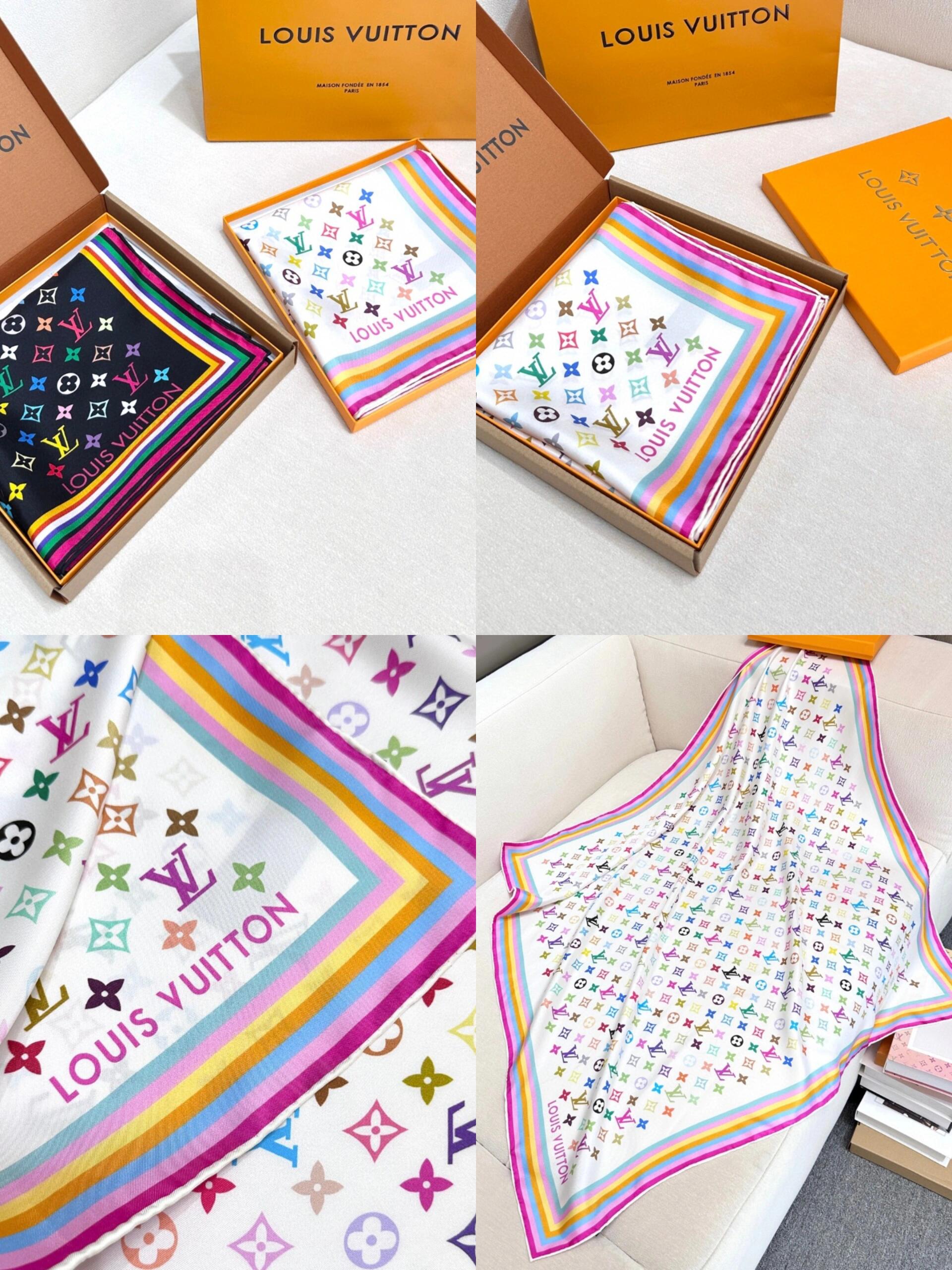 驴家 2025 新款白三彩 x 村上隆系列丝巾LV x TM Monogram Multicolor 方巾 特别难买的款式柜子(ZT*DSX)