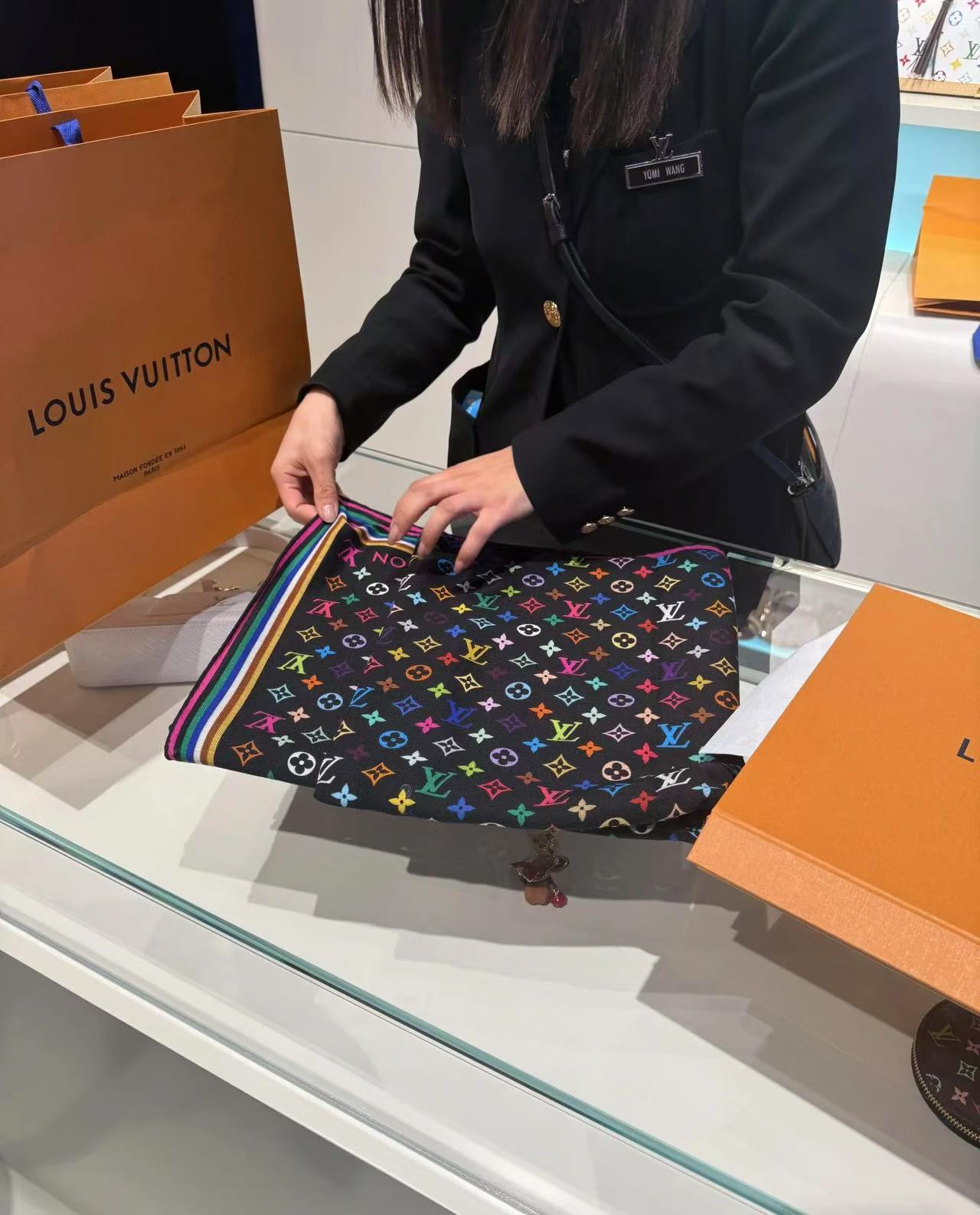 出自路易威登与村上隆联袂打造的合作系列,为华美桑蚕丝浸染深邃色调,再以缤纷 Monogram 图案道出艺术家对品牌元素的妙趣诠释。