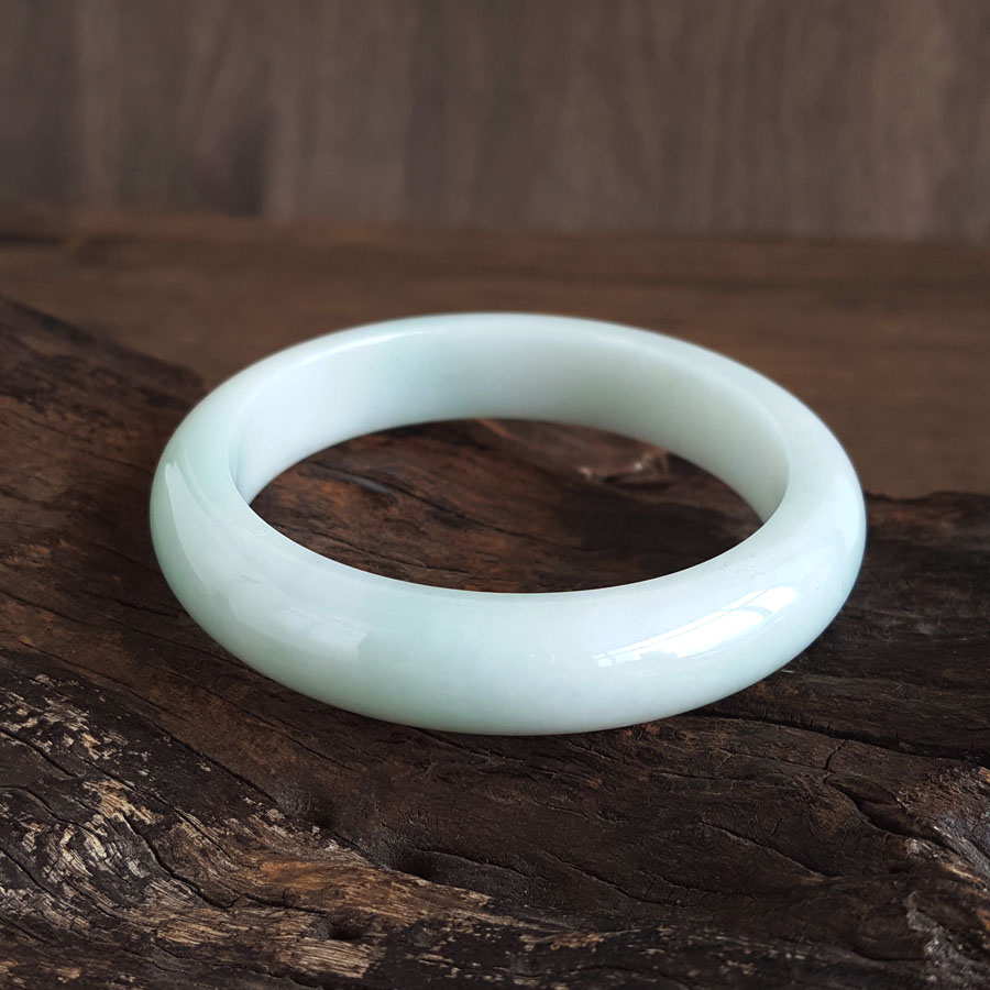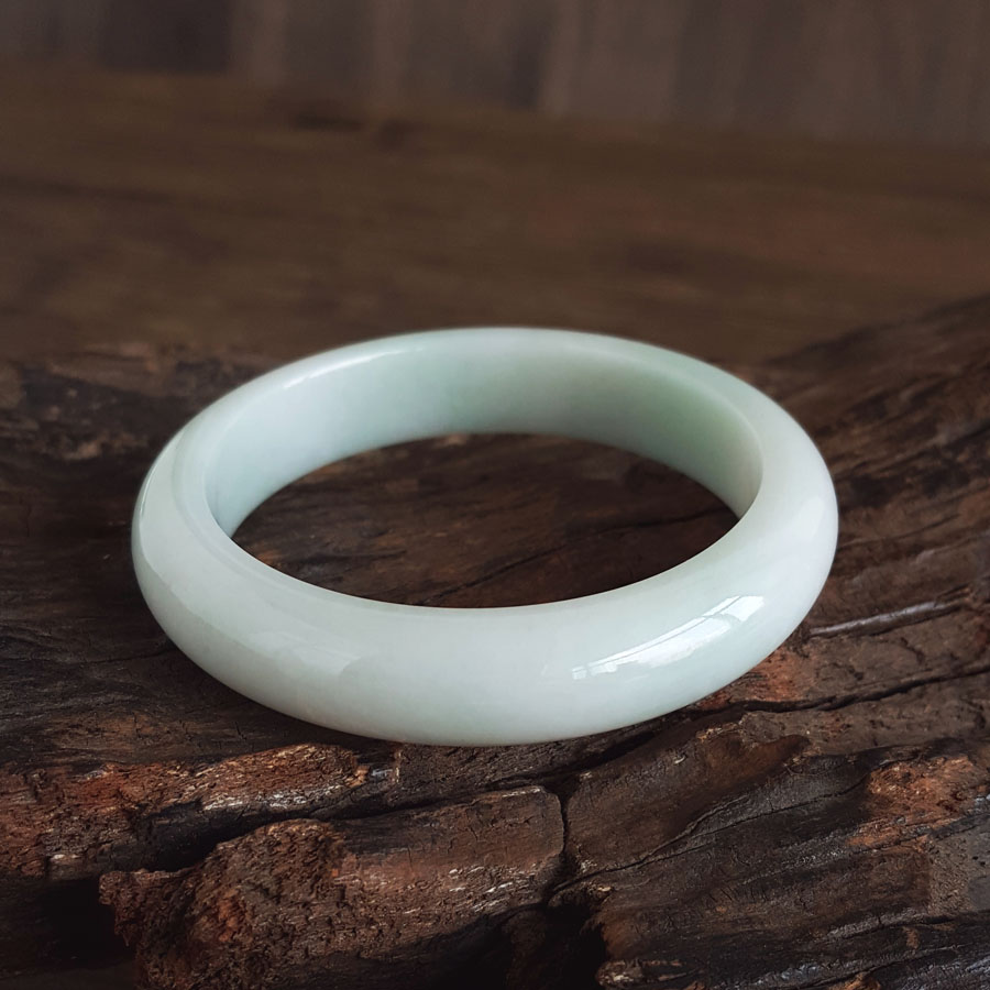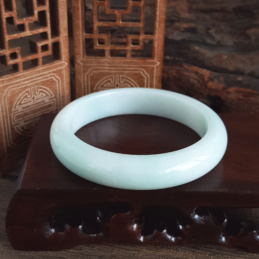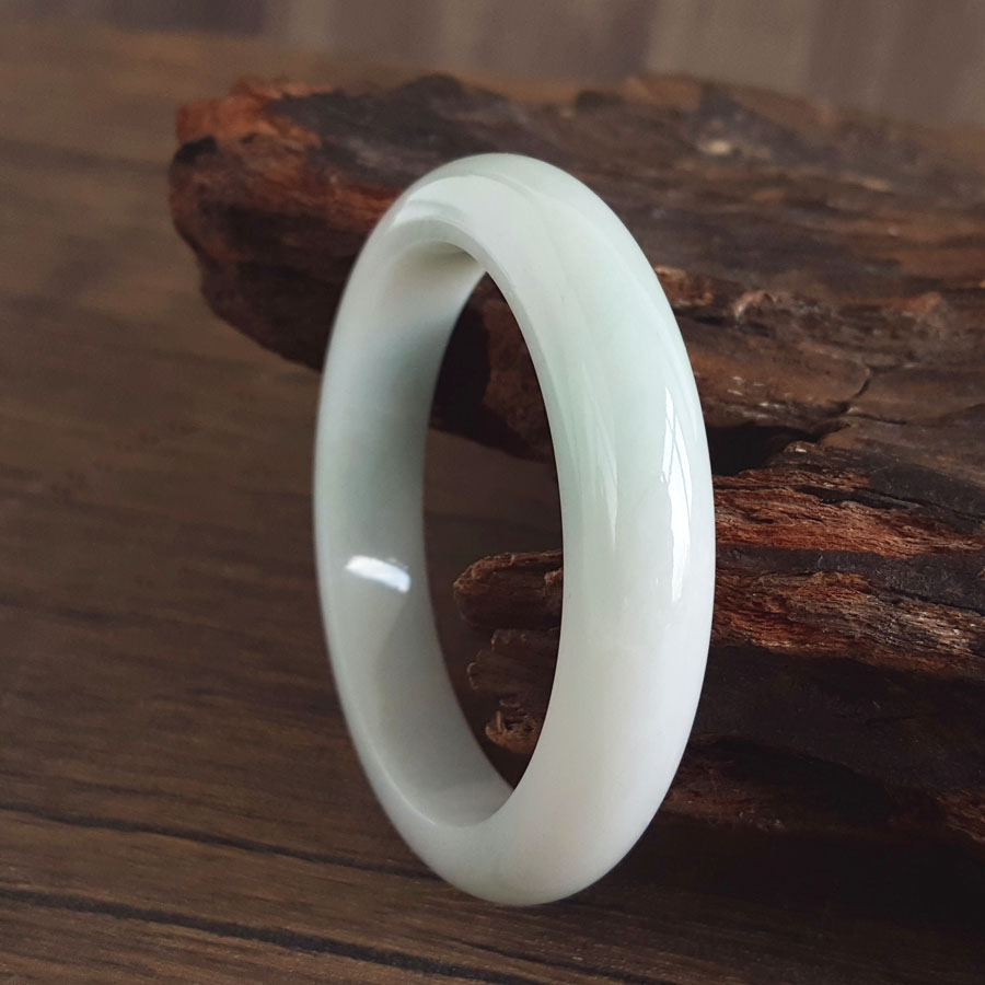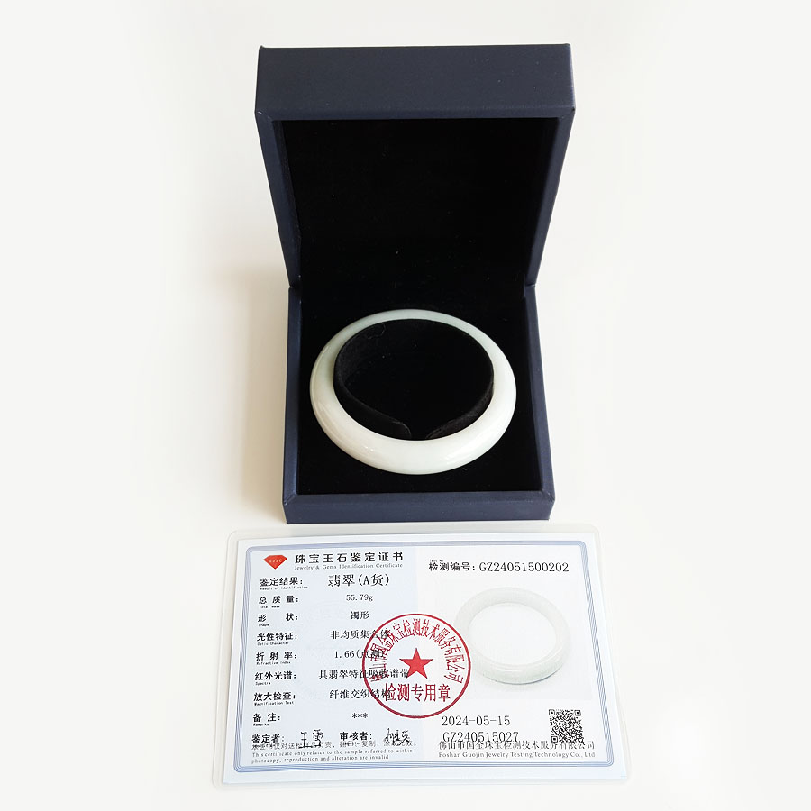 名称 | 天然细腻正桩无纹裂白底飘绿糯种55号翡翠手镯 |
