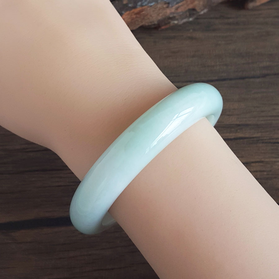 【天然正品】A货翡翠天然细腻正桩无纹裂白底飘绿糯种55号翡翠手镯现售价:780特价!310325AH48