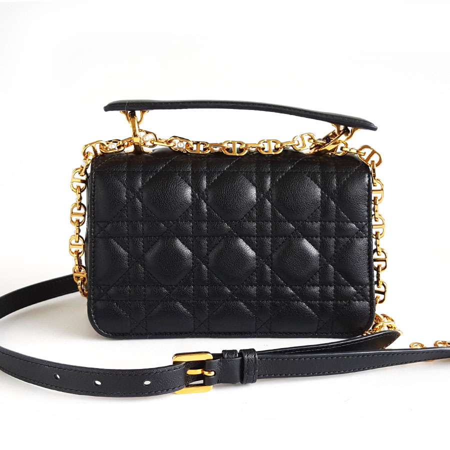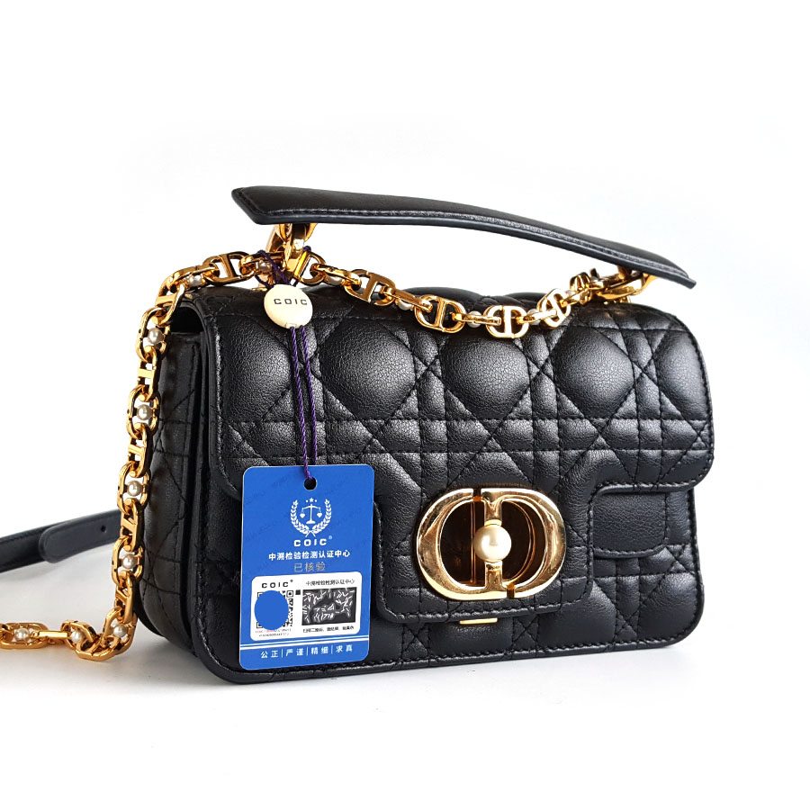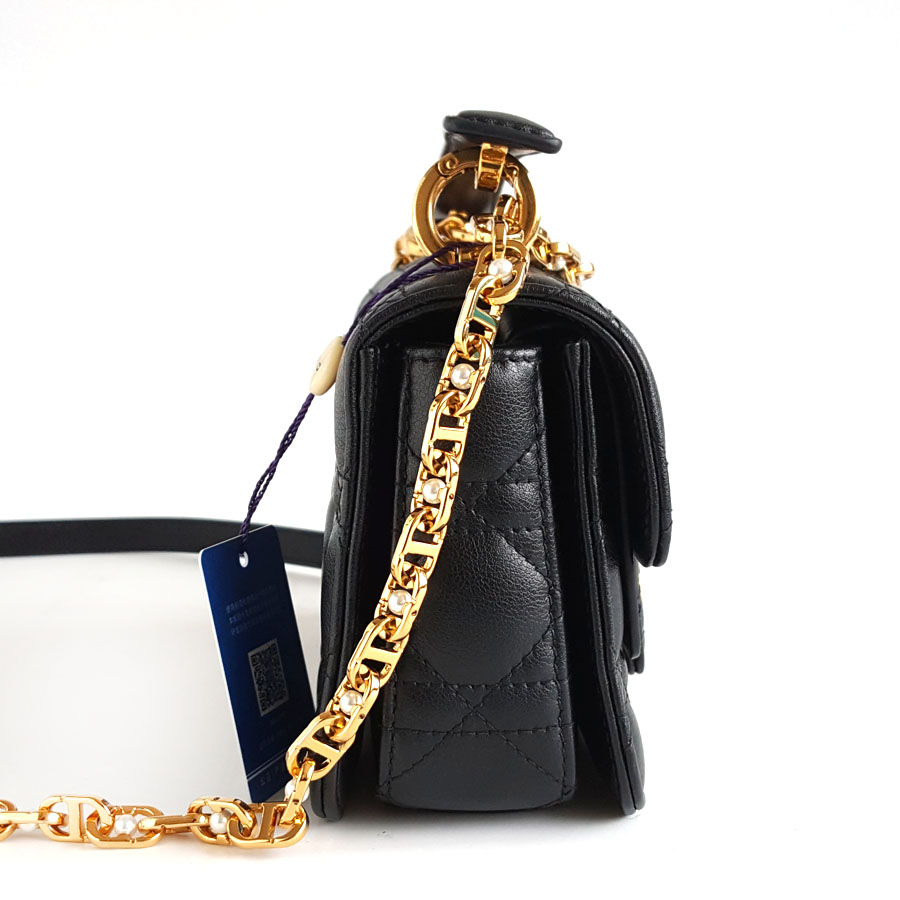 【95新】Dior迪奥Jolie系列黑色金扣迷你mini Jolie珍珠链条单肩包女士150426AK04