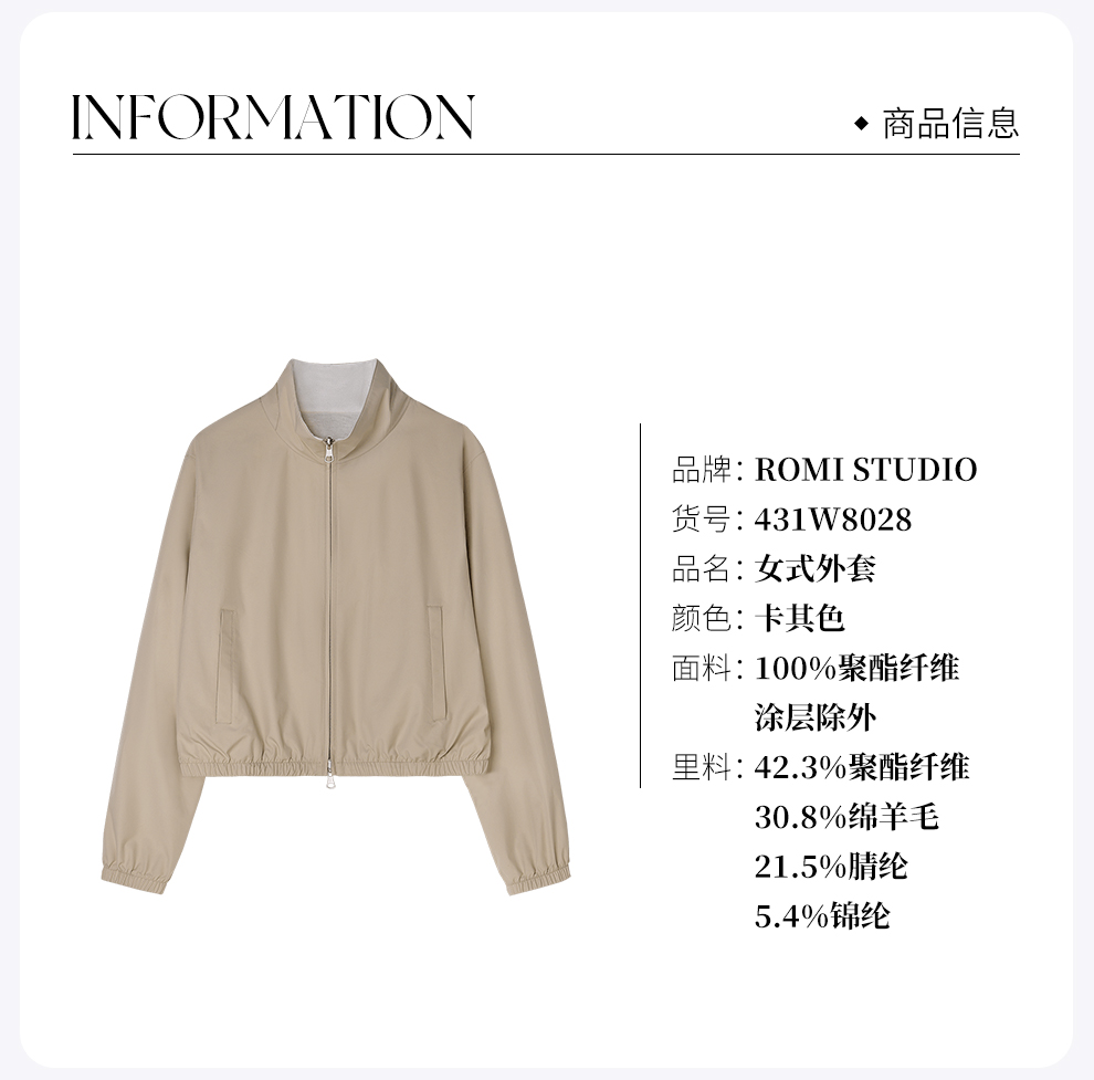 ROMI STUDIO“即兴时光”绵羊毛混纺双面穿立领夹克短外套 431W8028
