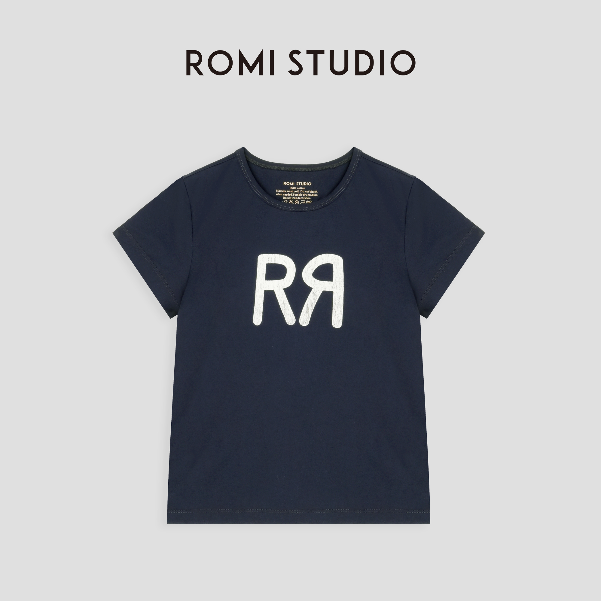ROMI STUDIO“美式复古” 100%棉舒适圆领百搭印花短袖T恤 23AWT560