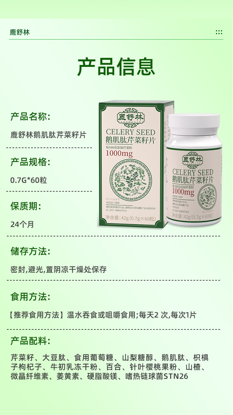 鹿舒林鹅肌肽芹菜籽片中老年平衡呵护关节不适酸友常备官方正品