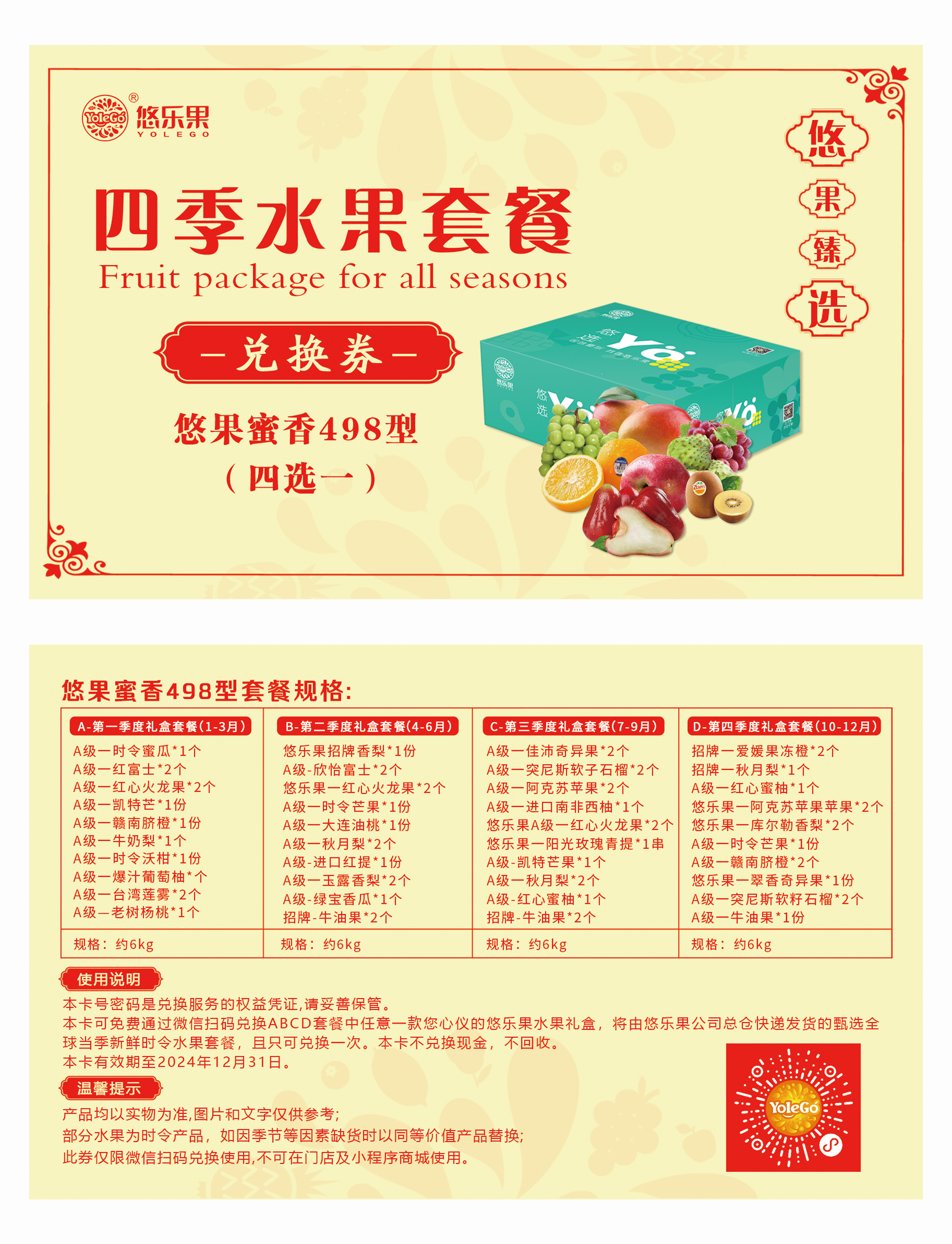 悠乐果高端送礼四季水果套餐系列礼盒兑换498