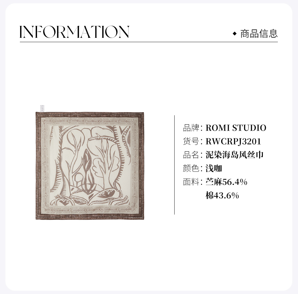 ROMI STUDIO 天然苎麻海岛风砂洗做旧复古印花方巾 RWCRPJ3201【发货时间:25-30天】