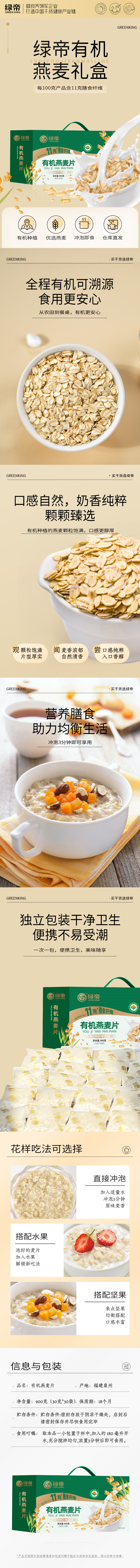 绿帝有机燕麦片礼盒900g
