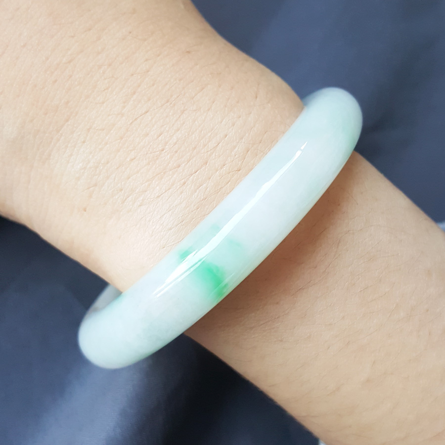 【天然正品】A货翡翠天然精品细腻无杂裂糯种飘阳绿54.5号翡翠手镯54.4MM 131223XY07+