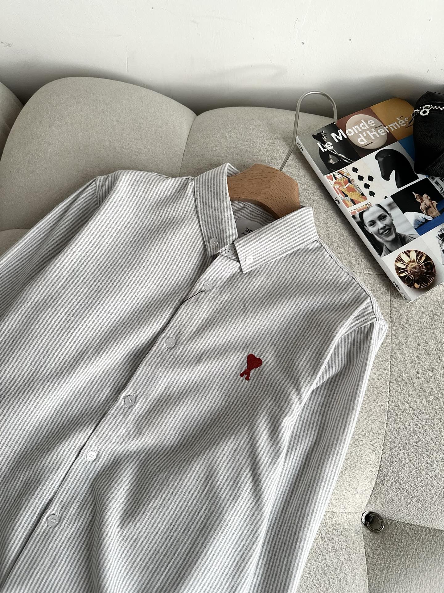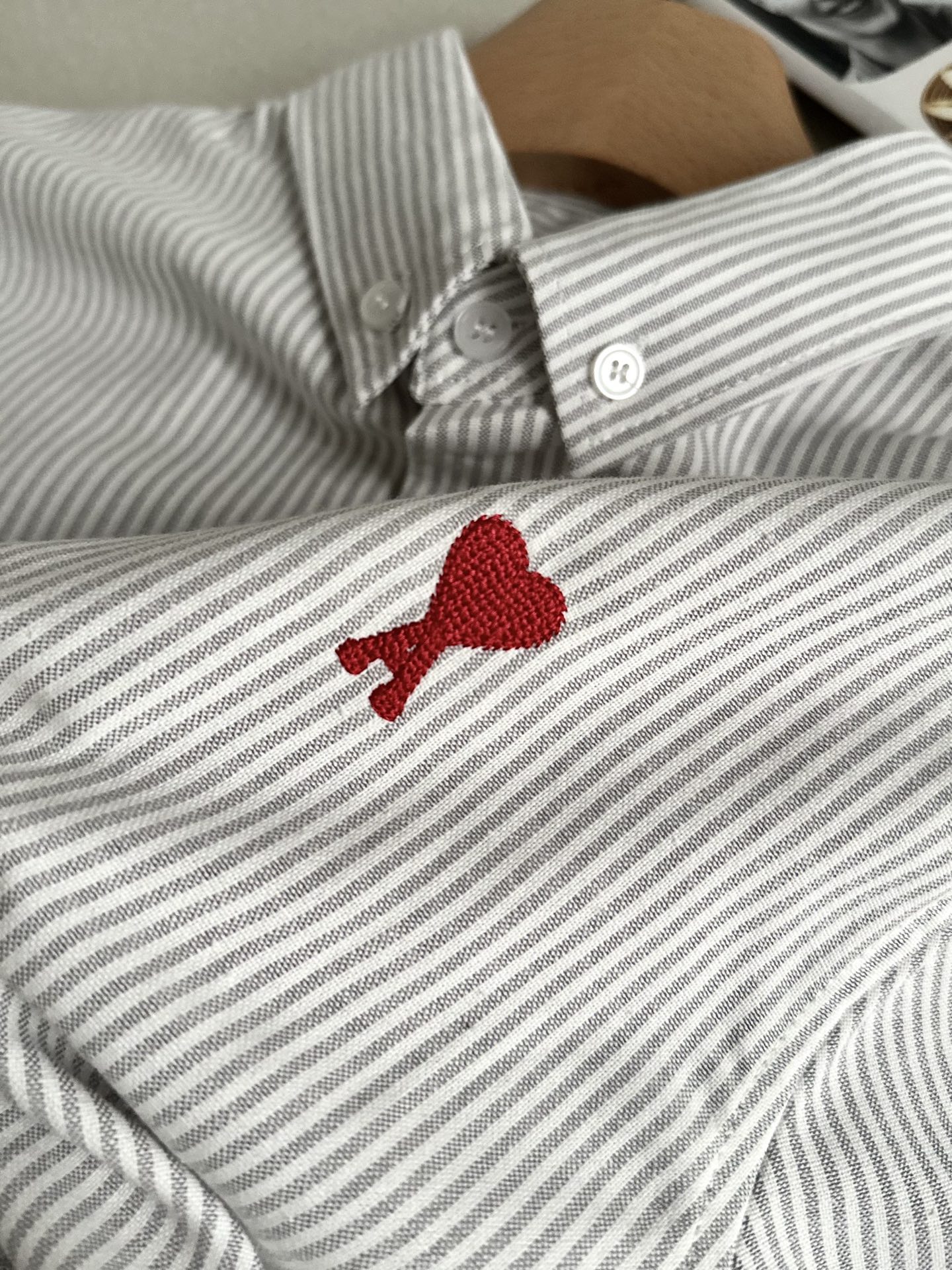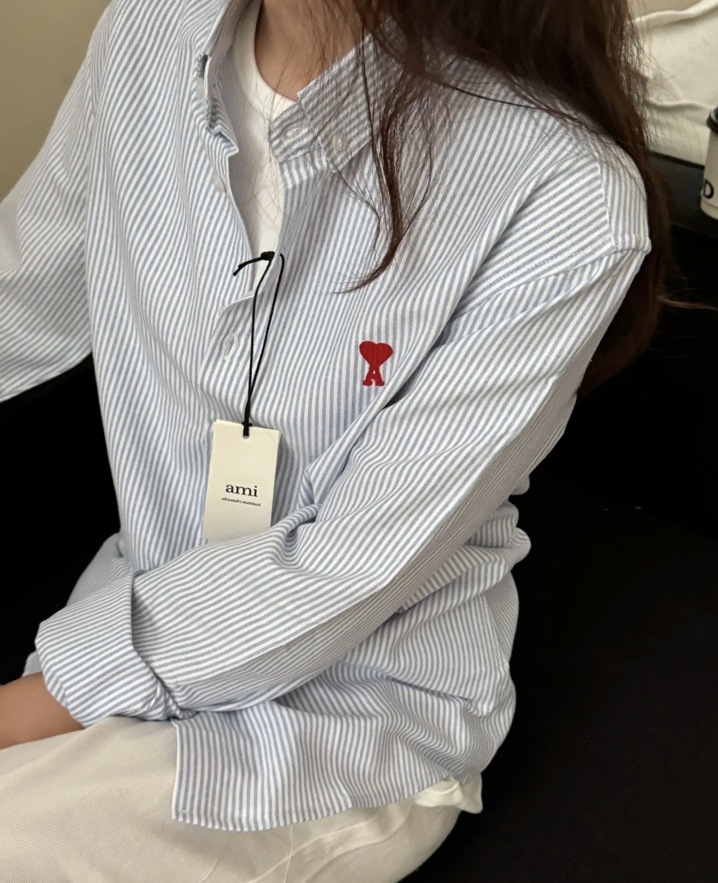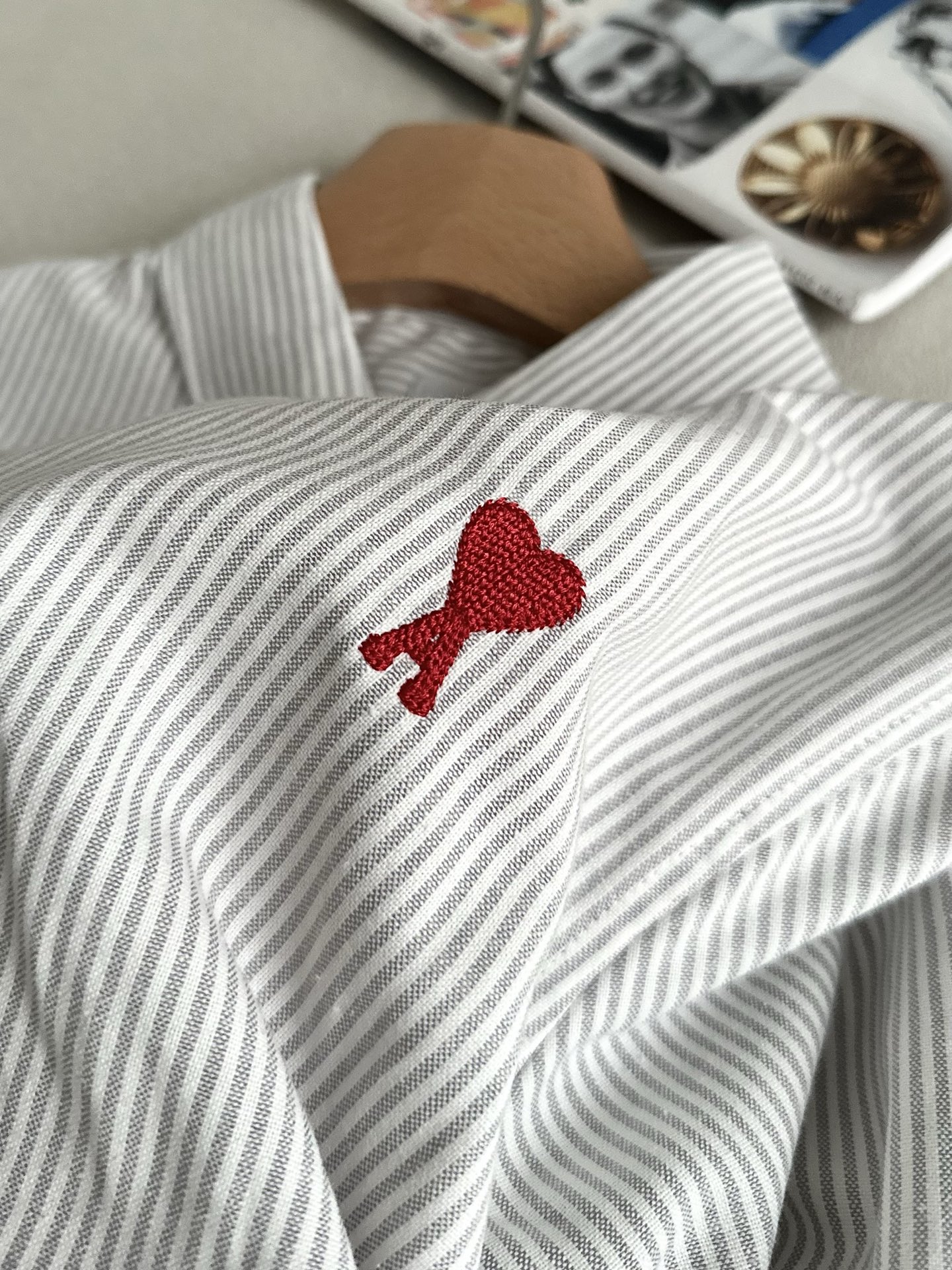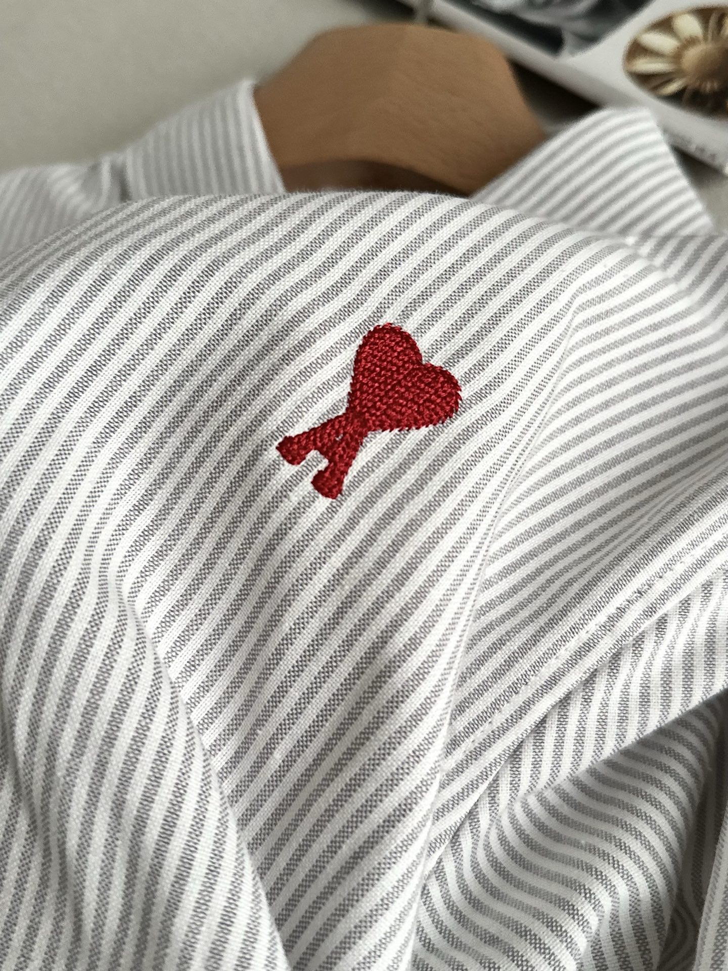 AMI男女同款经典款红色爱心条纹长袖衬衫‼️