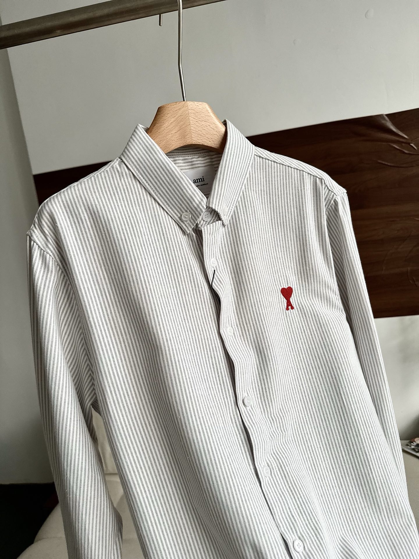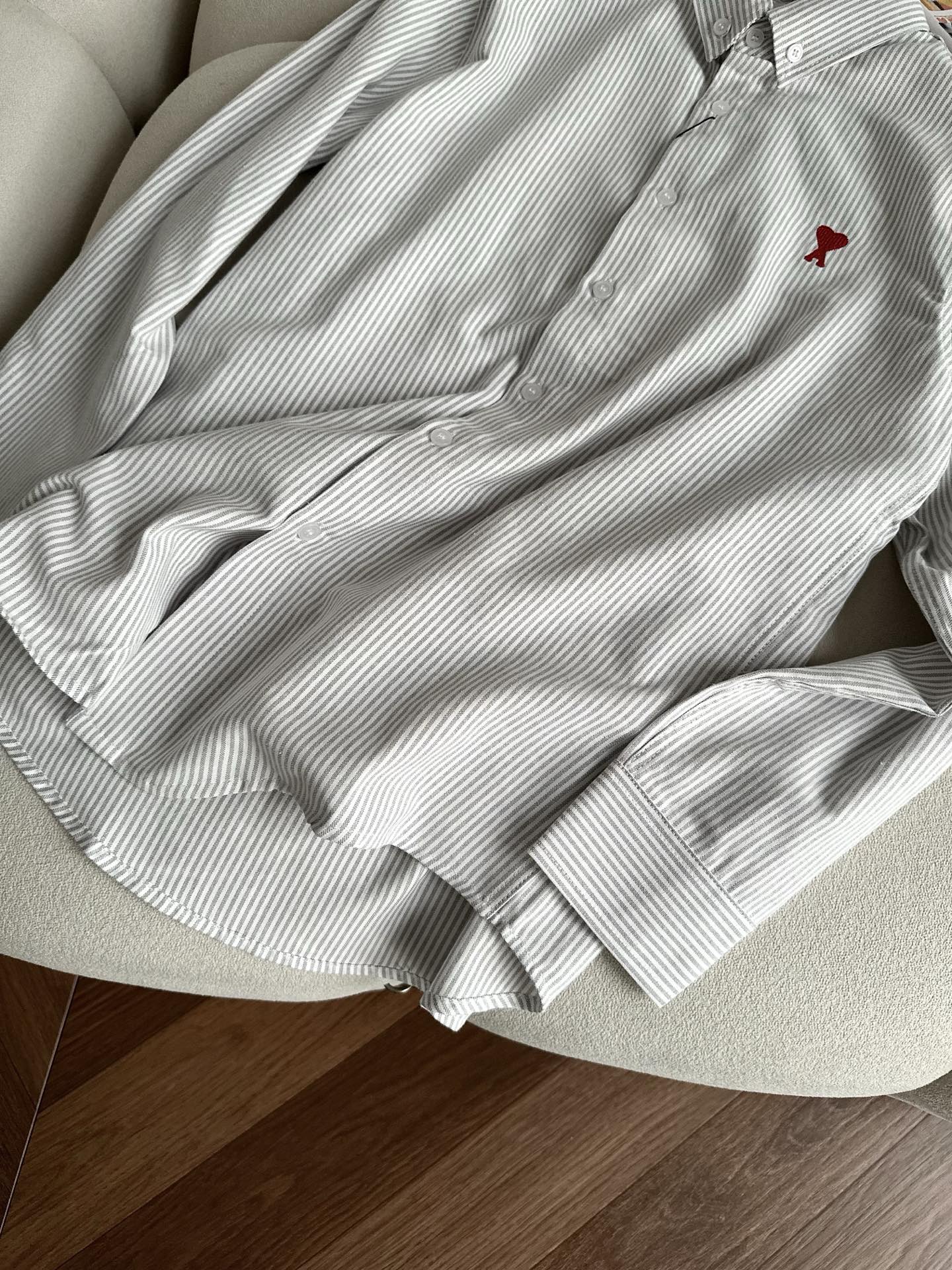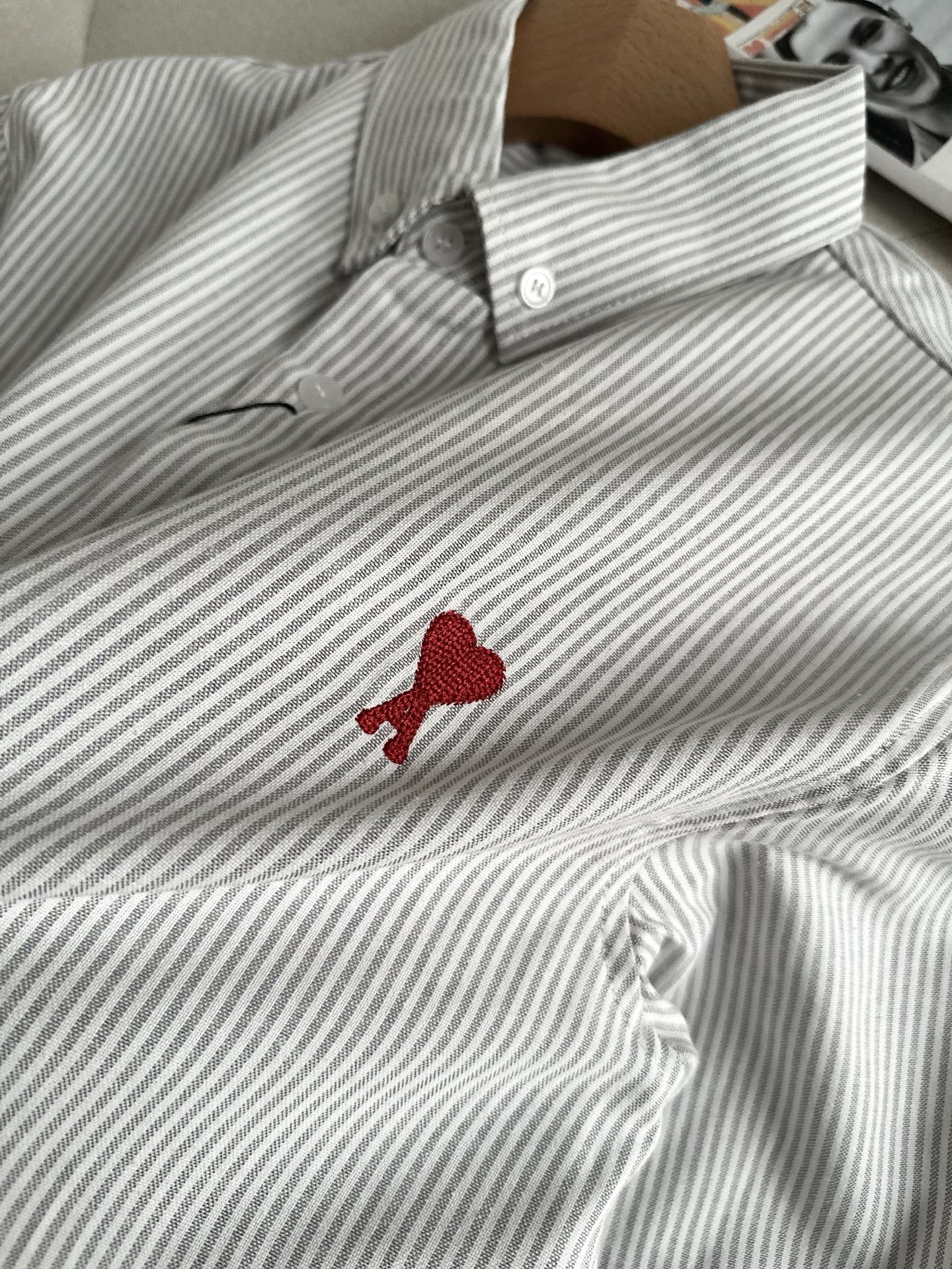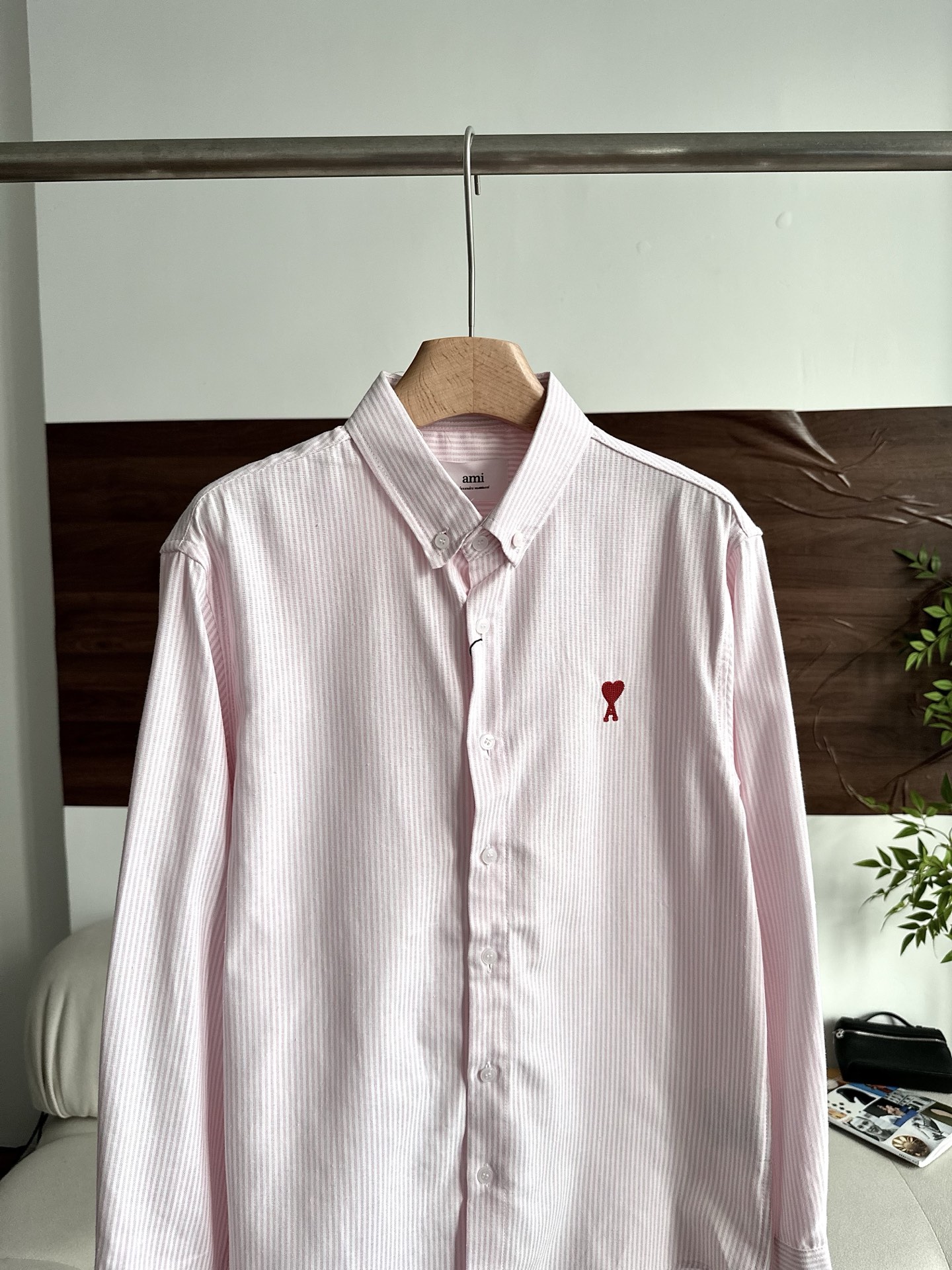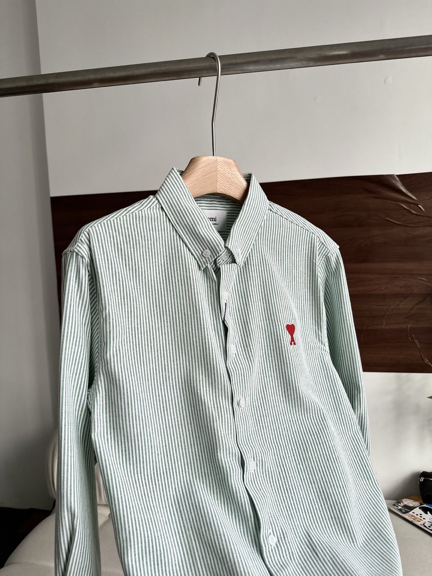AMI男女同款经典款红色爱心条纹长袖衬衫‼️