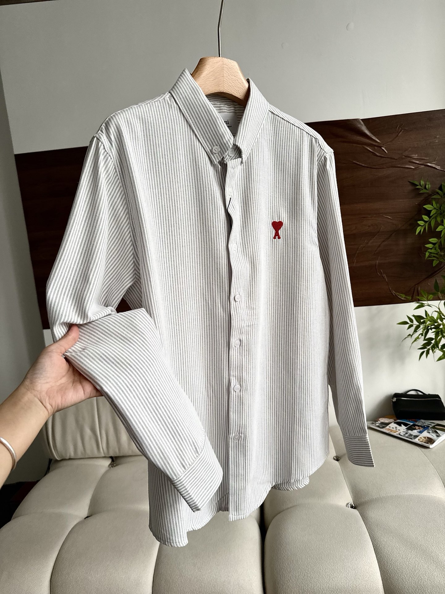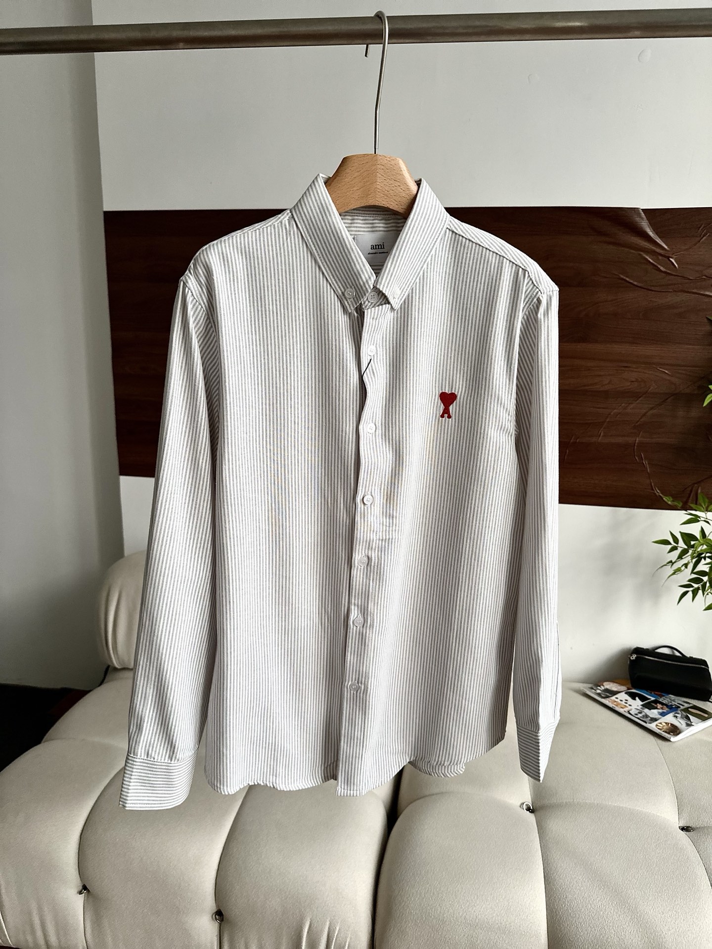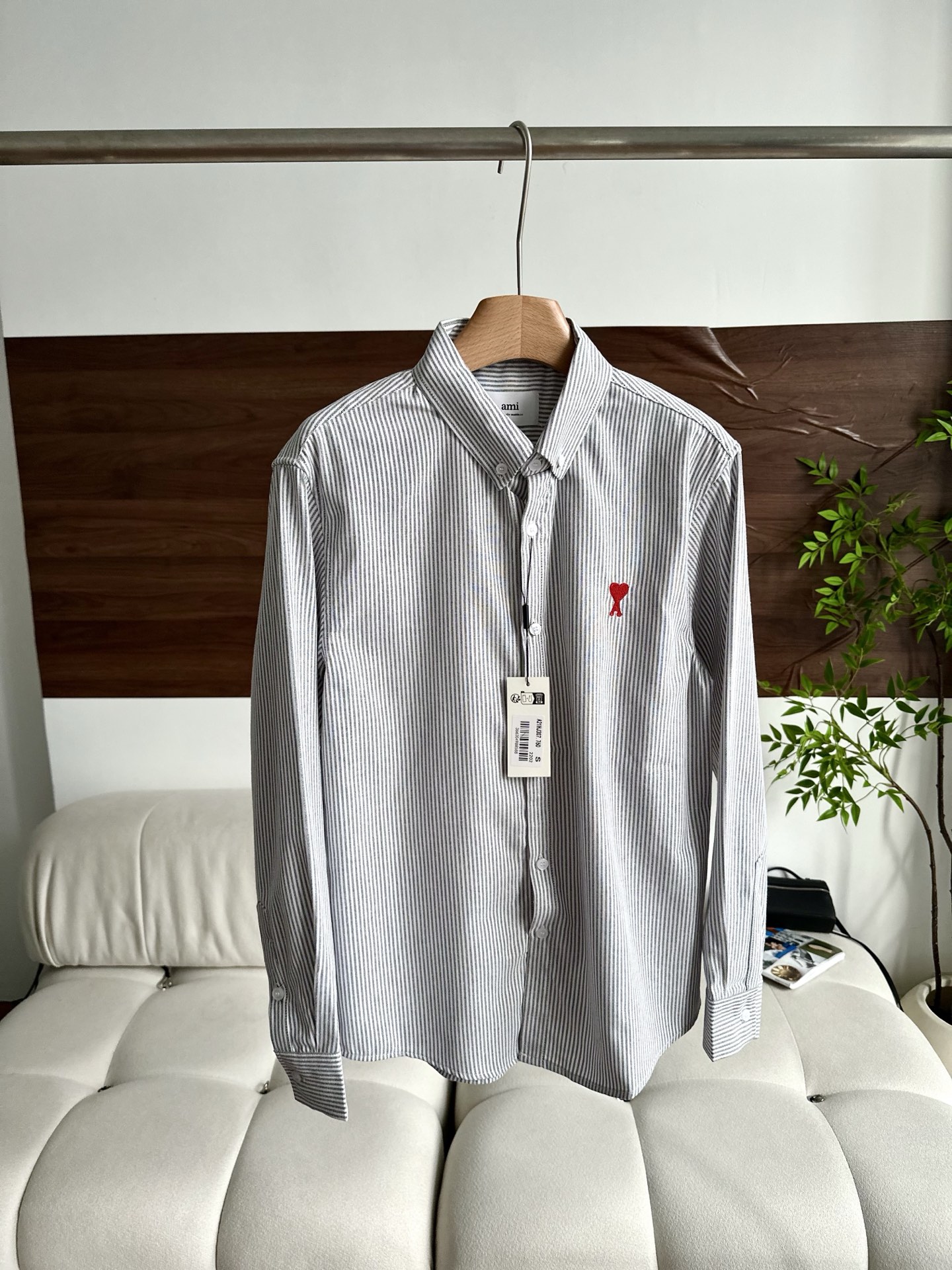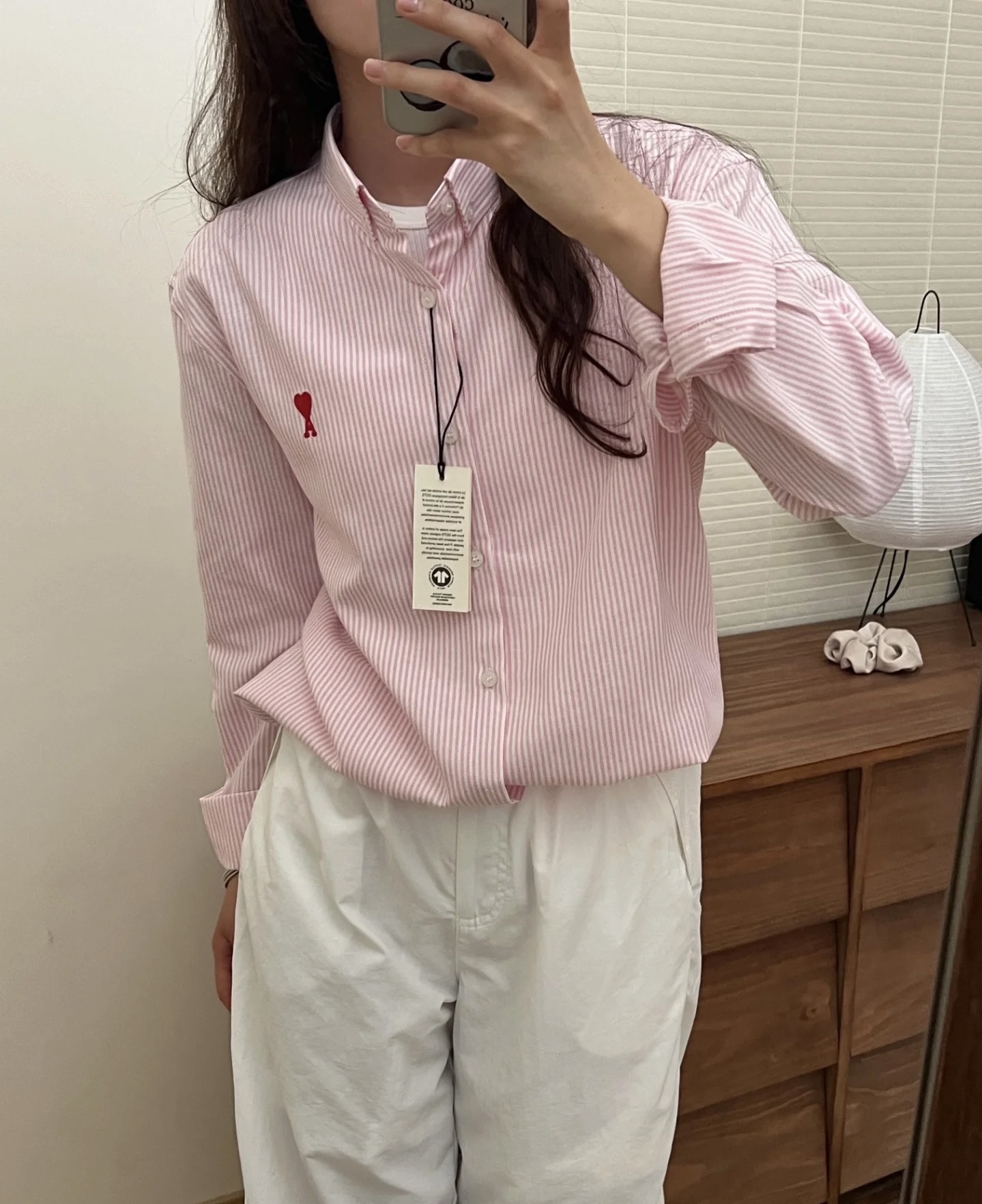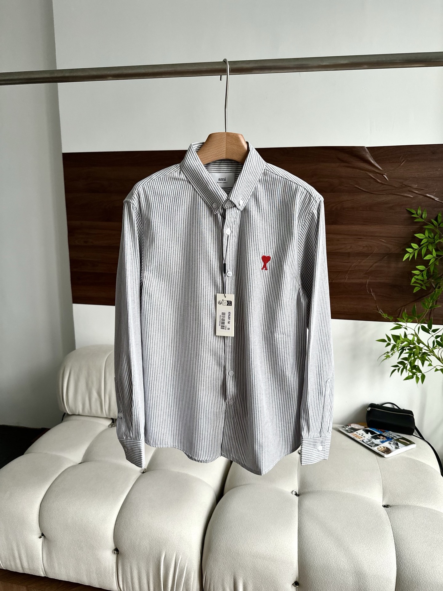 AMI男女同款经典款红色爱心条纹长袖衬衫‼️