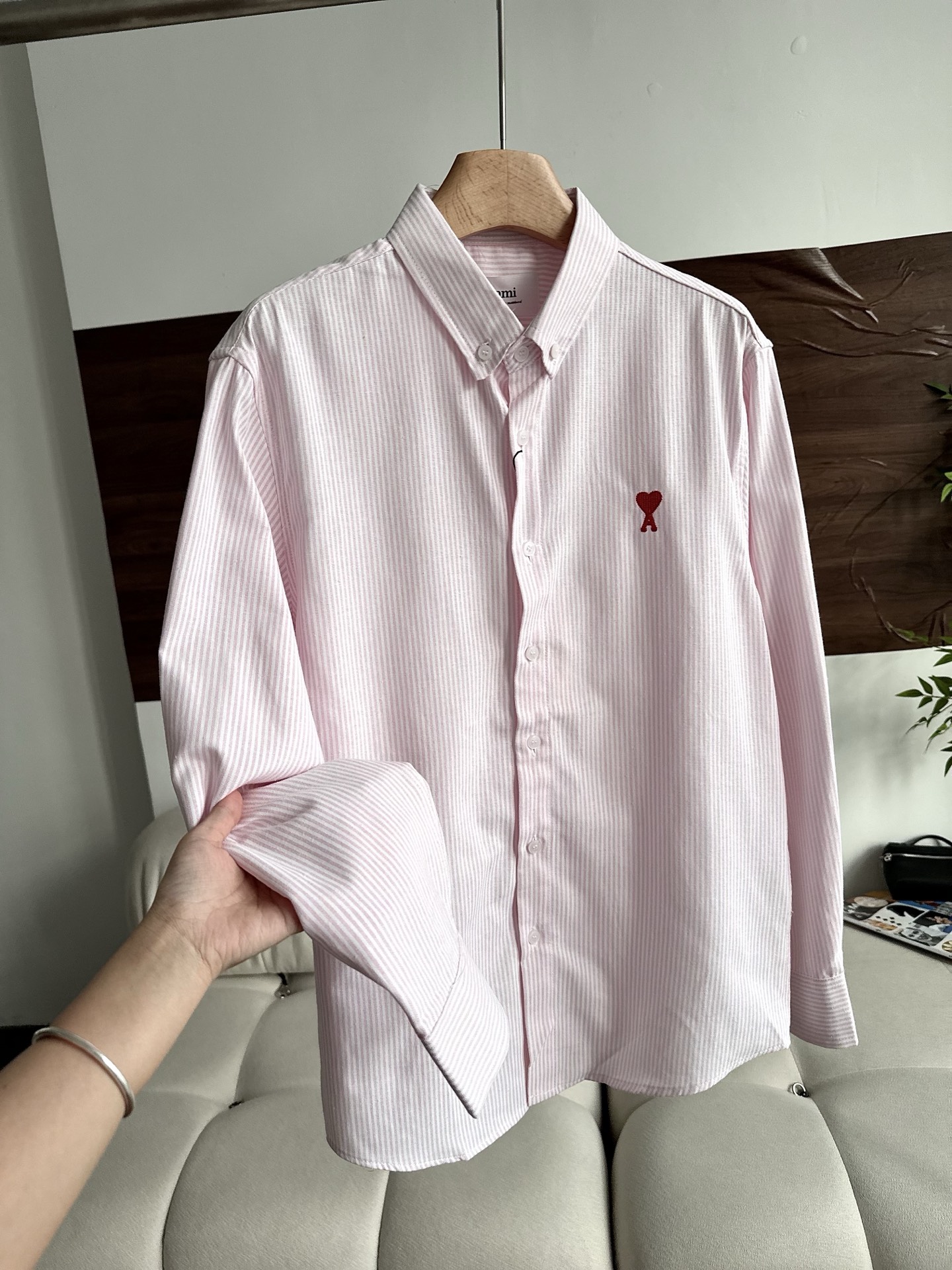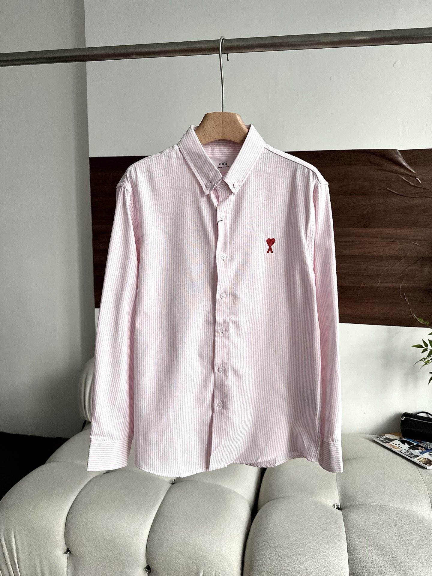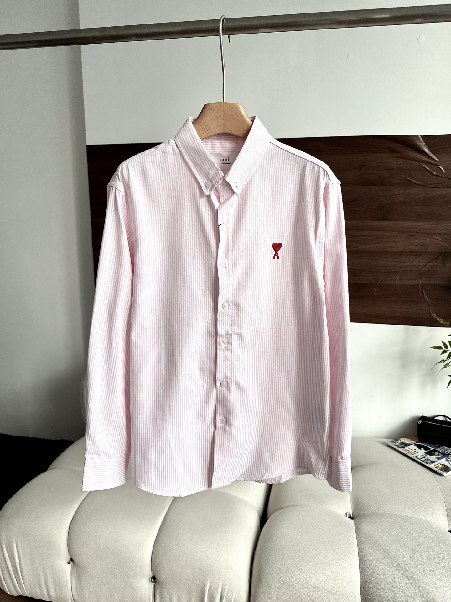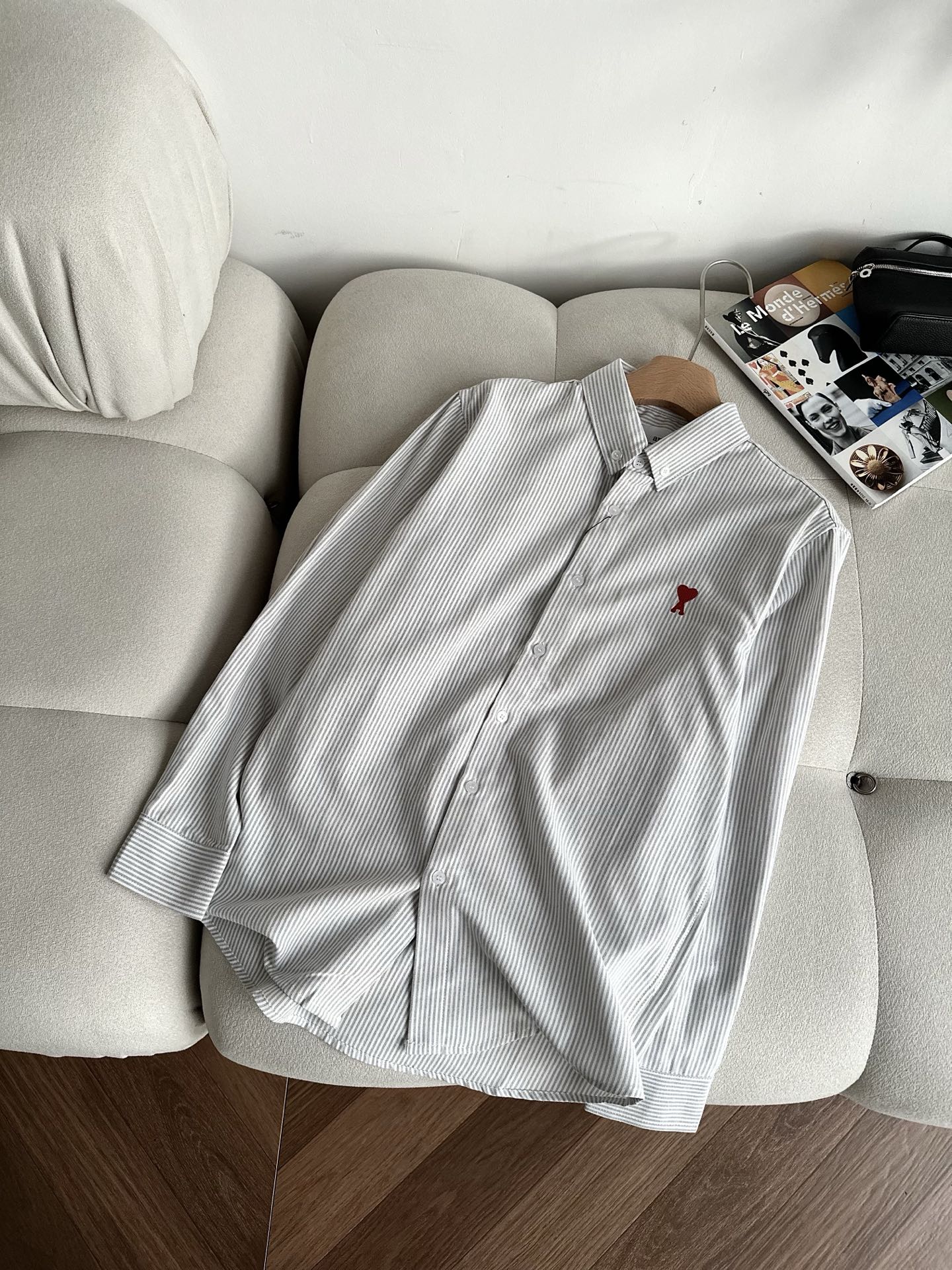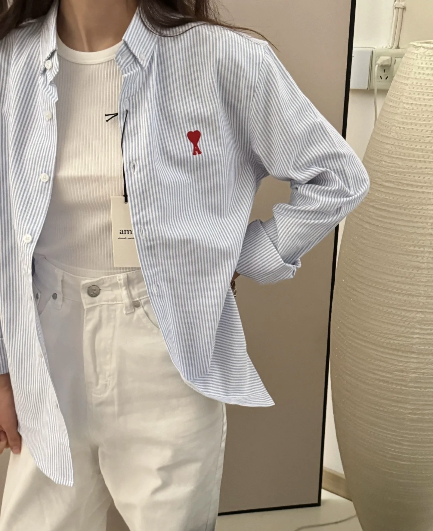 AMI男女同款经典款红色爱心条纹长袖衬衫‼️