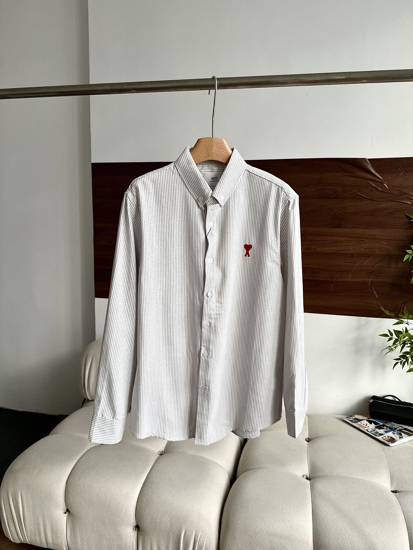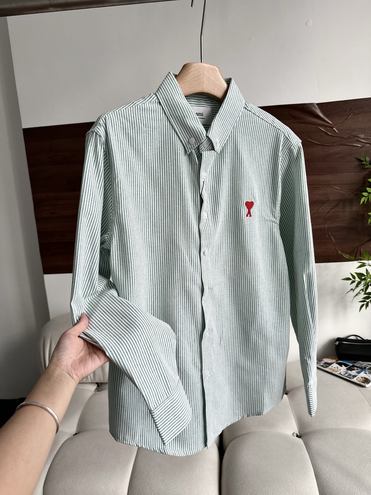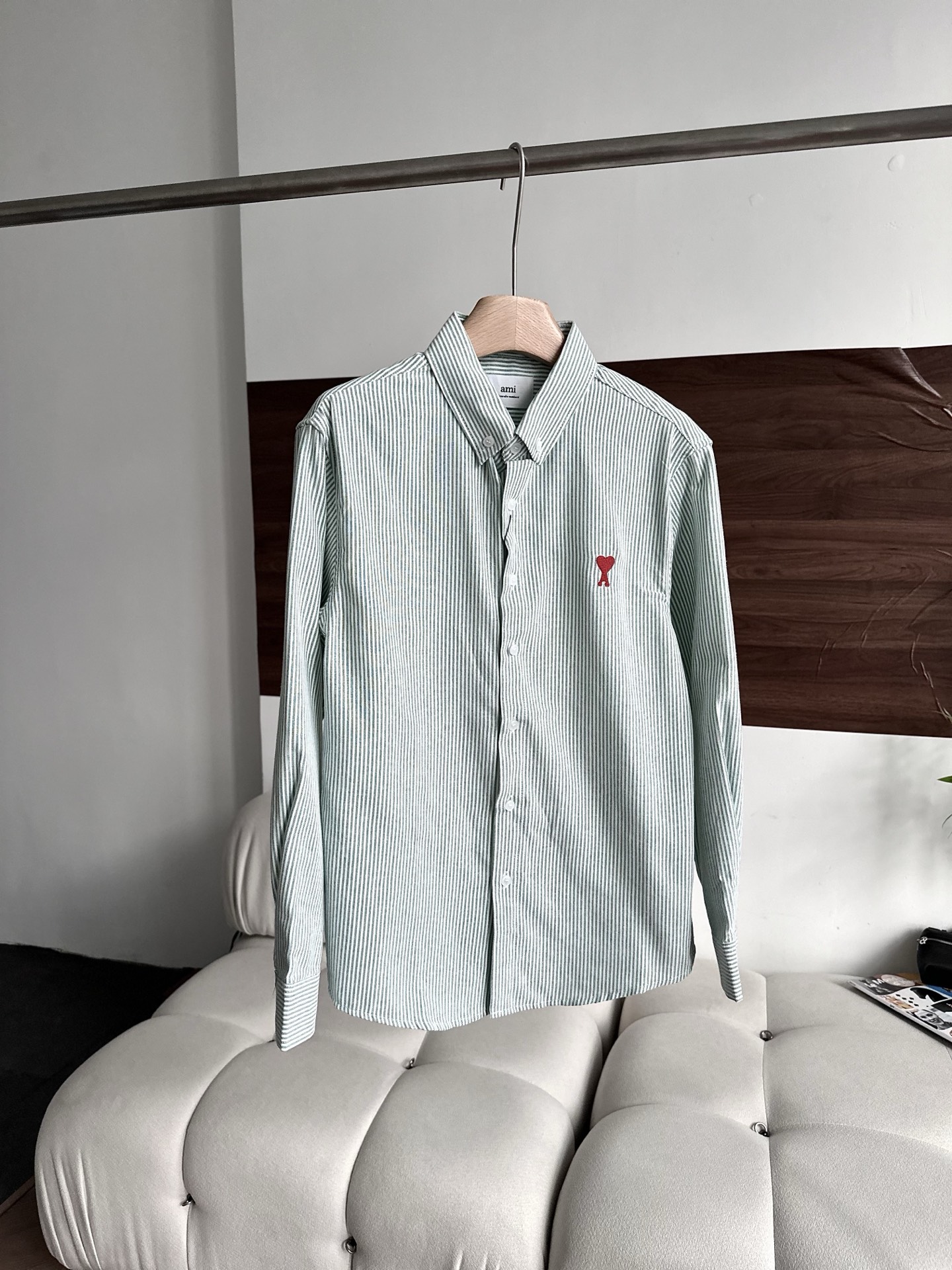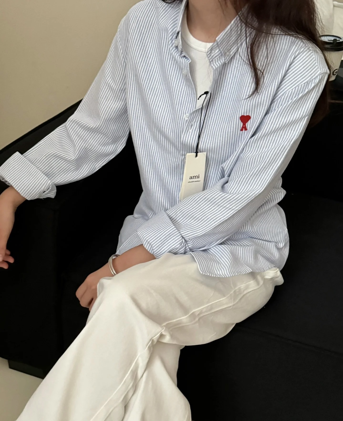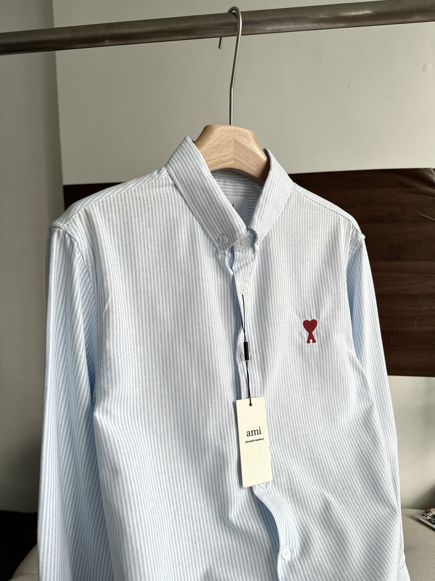 AMI男女同款经典款红色爱心条纹长袖衬衫‼️