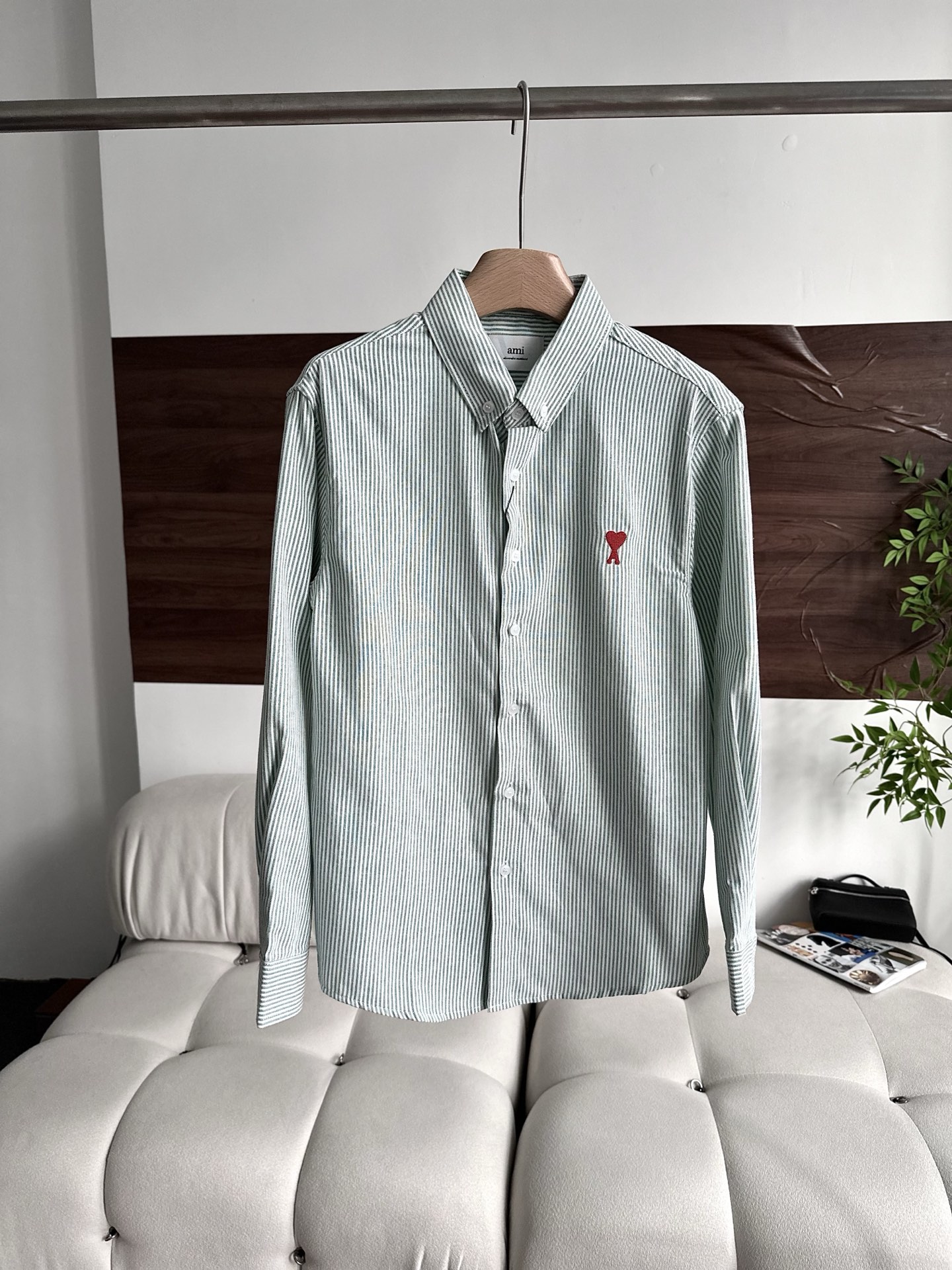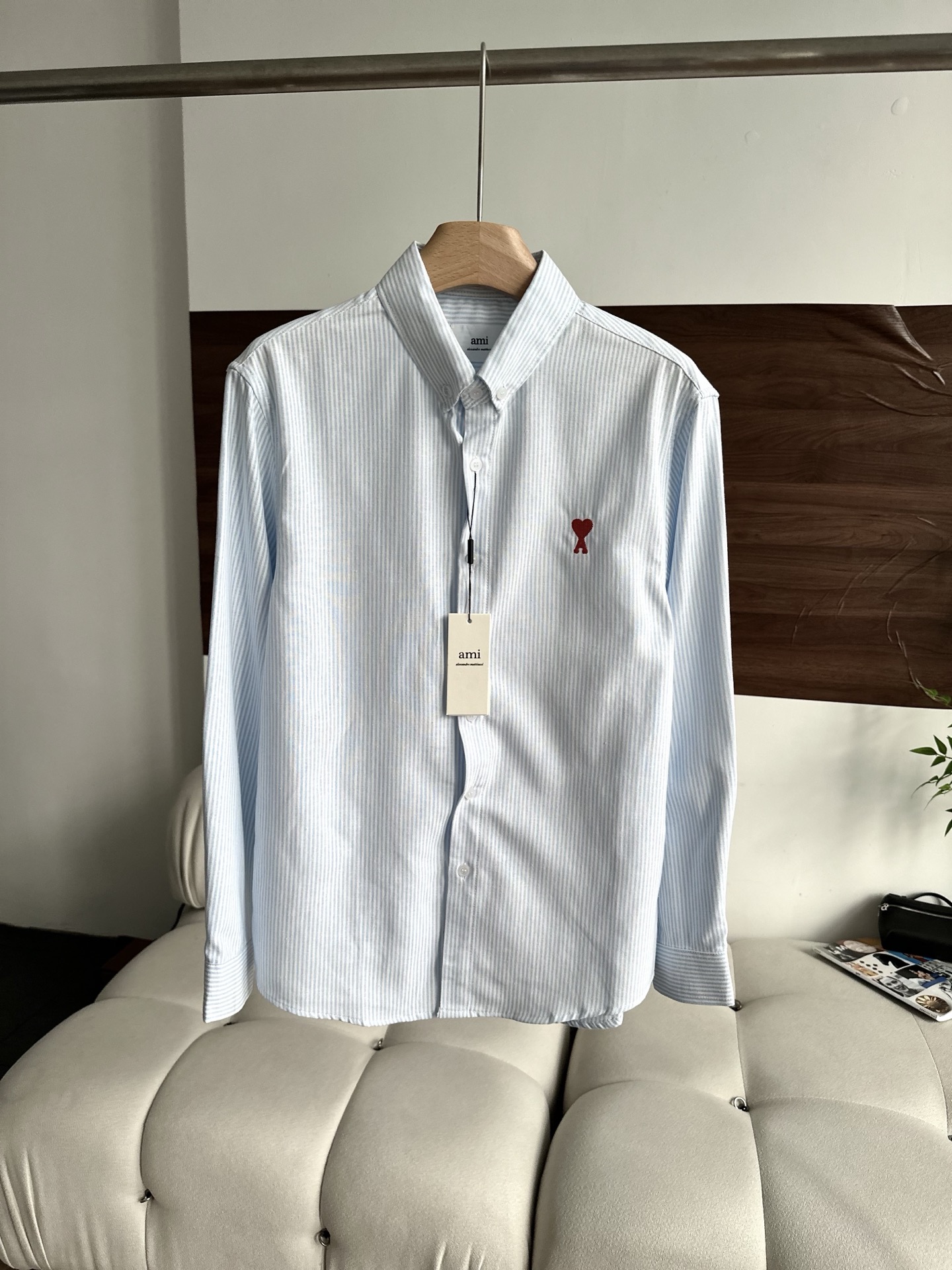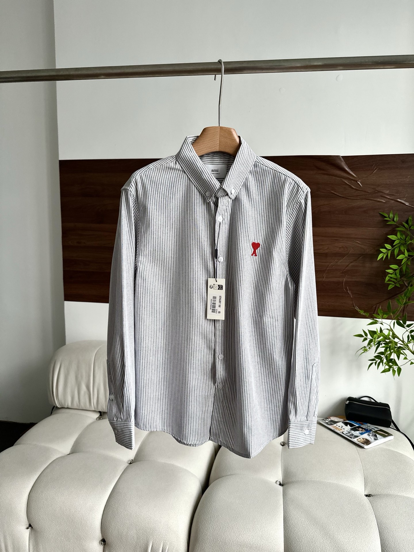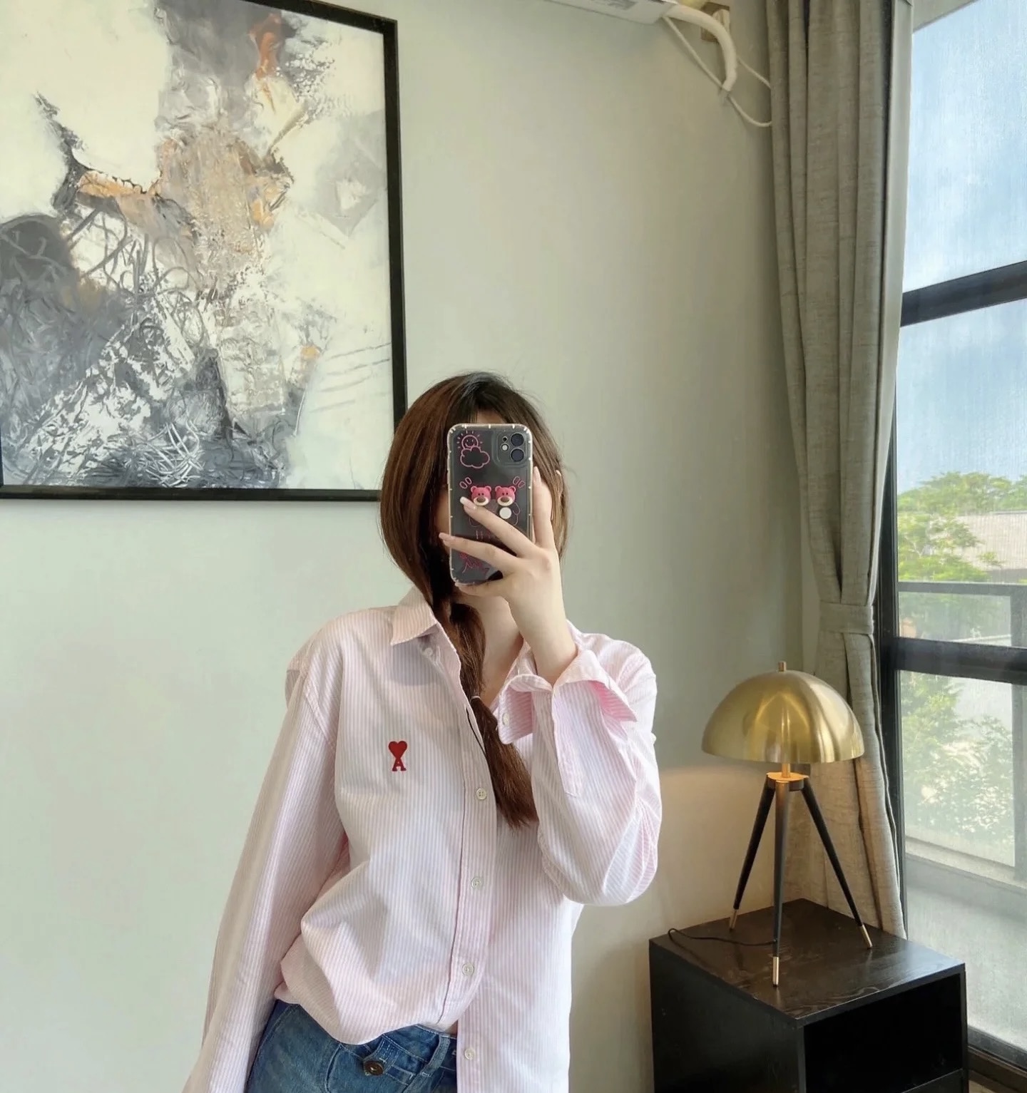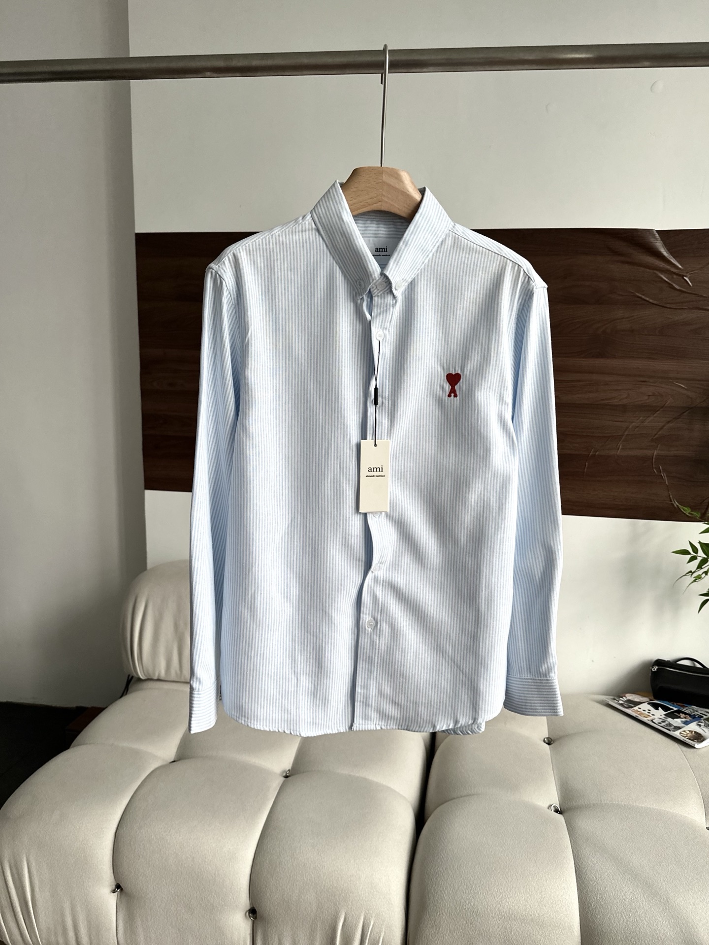 AMI男女同款经典款红色爱心条纹长袖衬衫‼️
