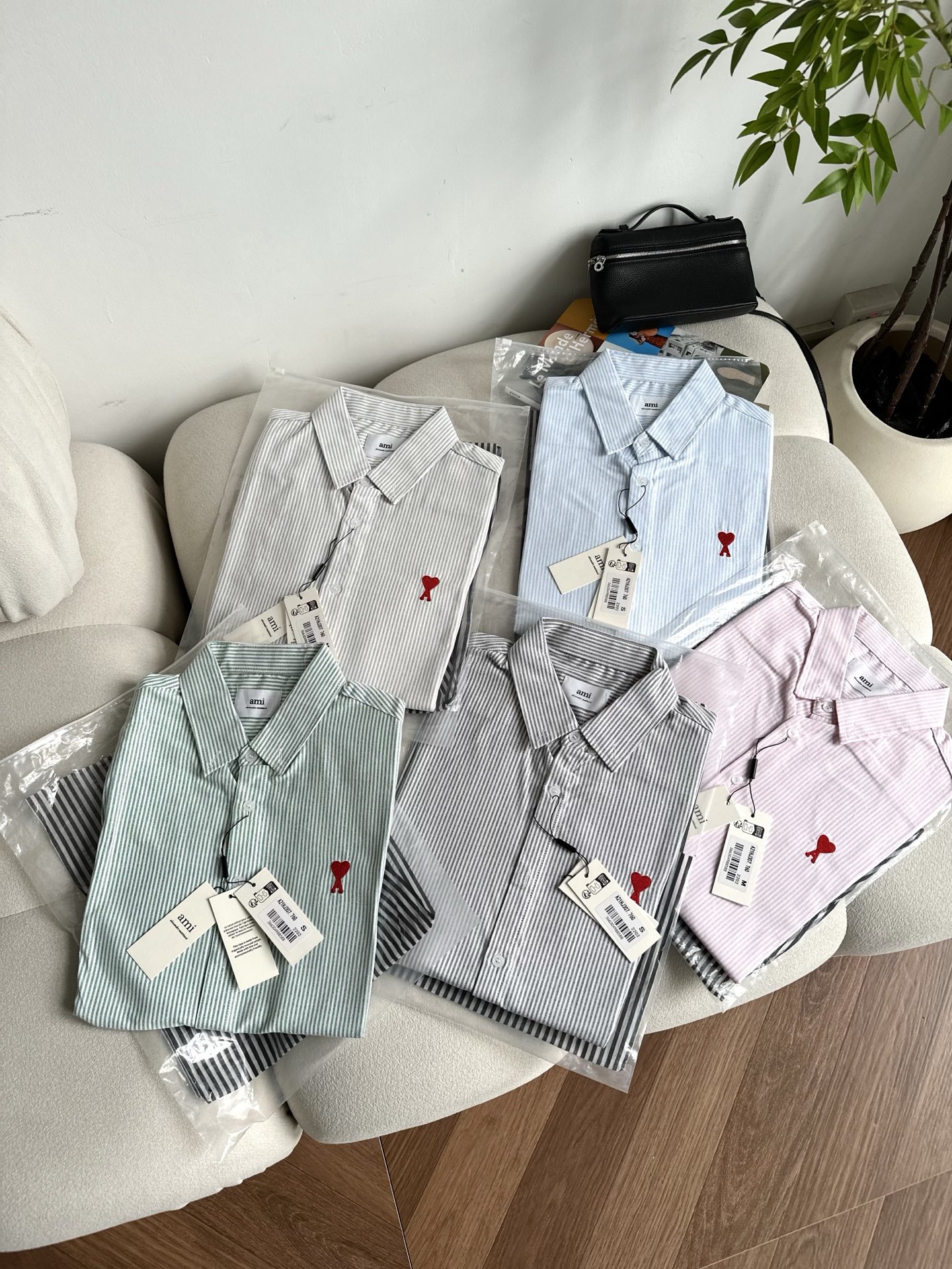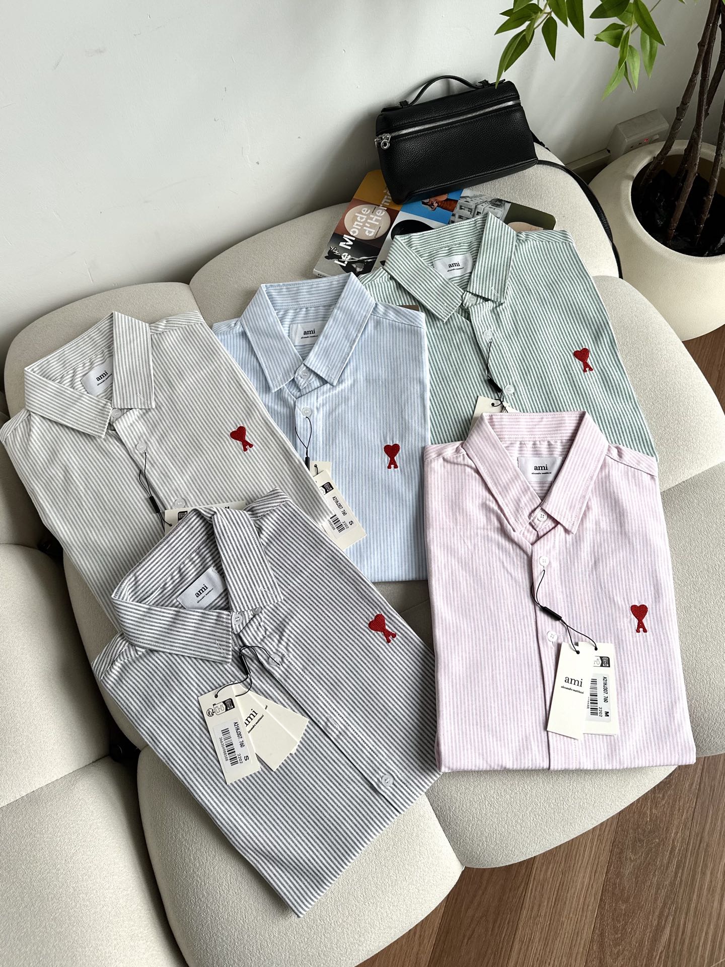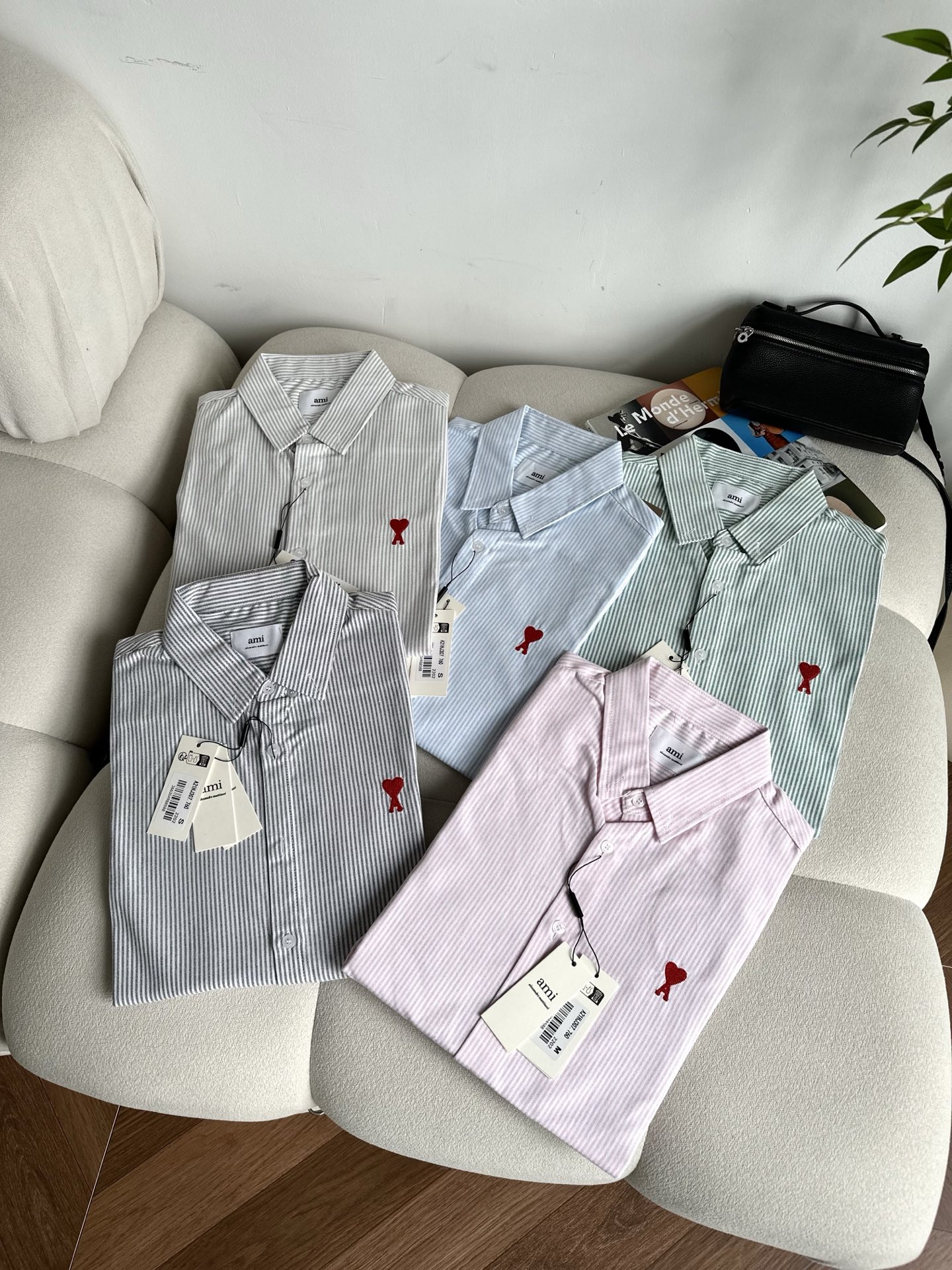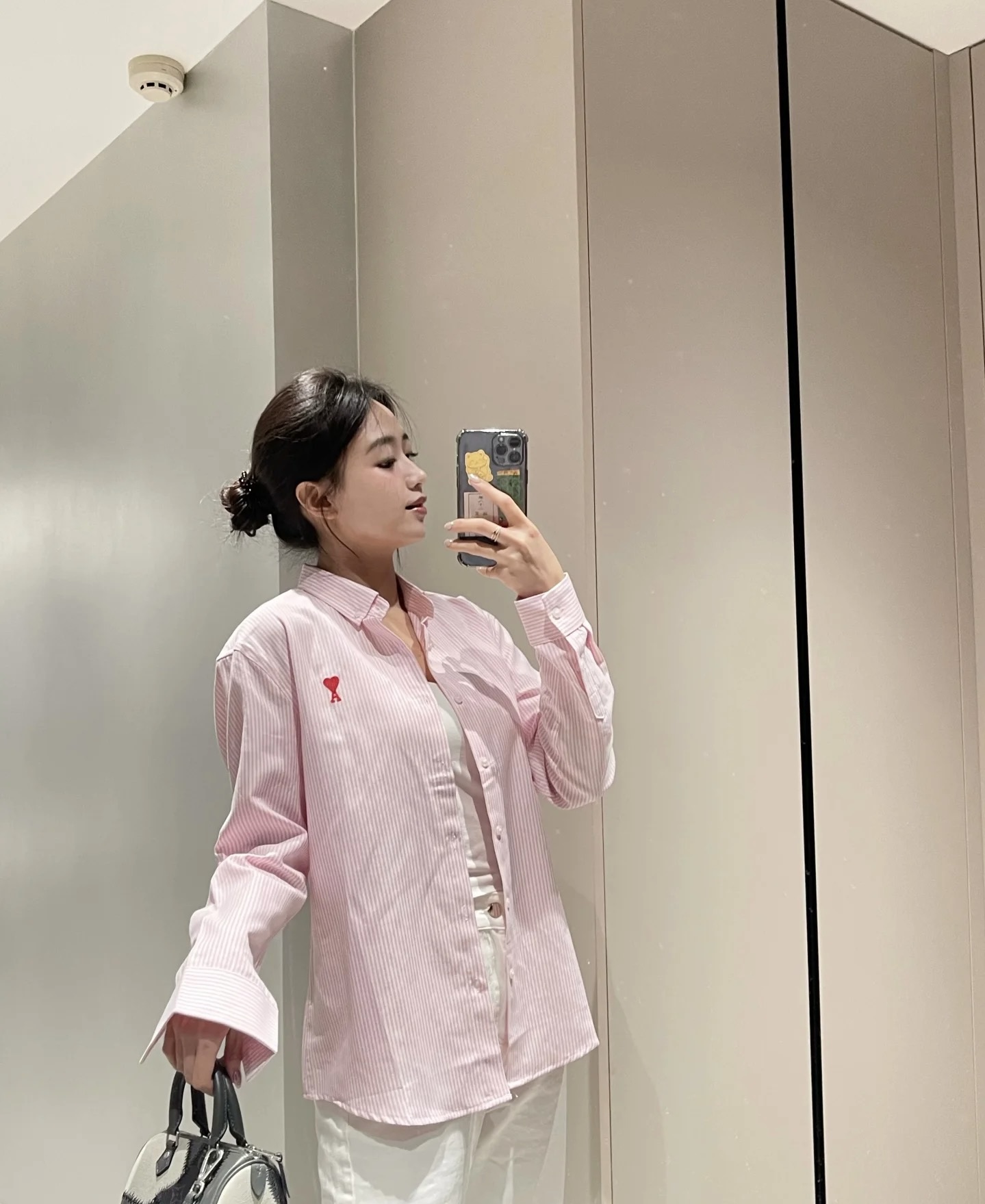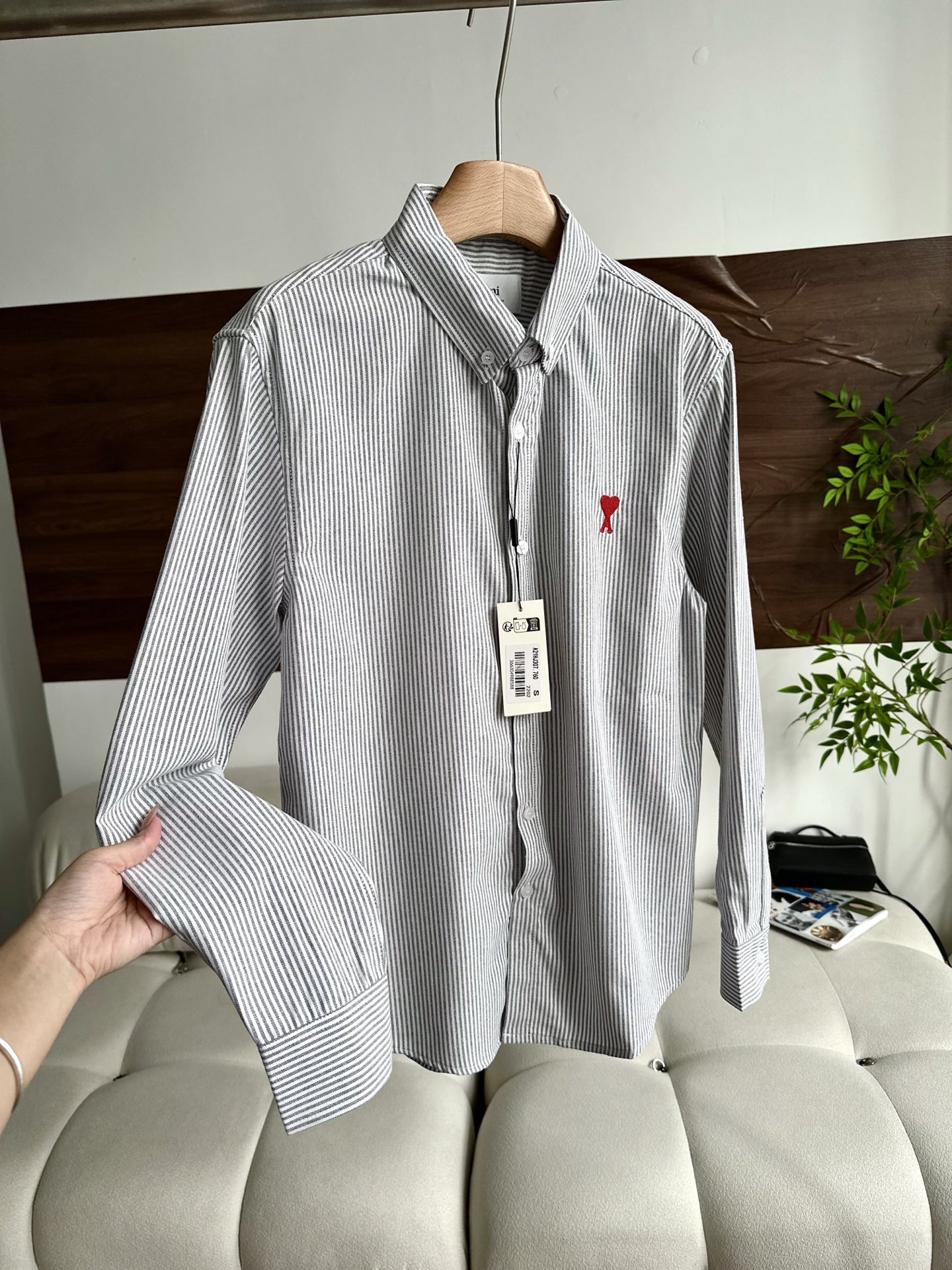AMI男女同款经典款红色爱心条纹长袖衬衫‼️