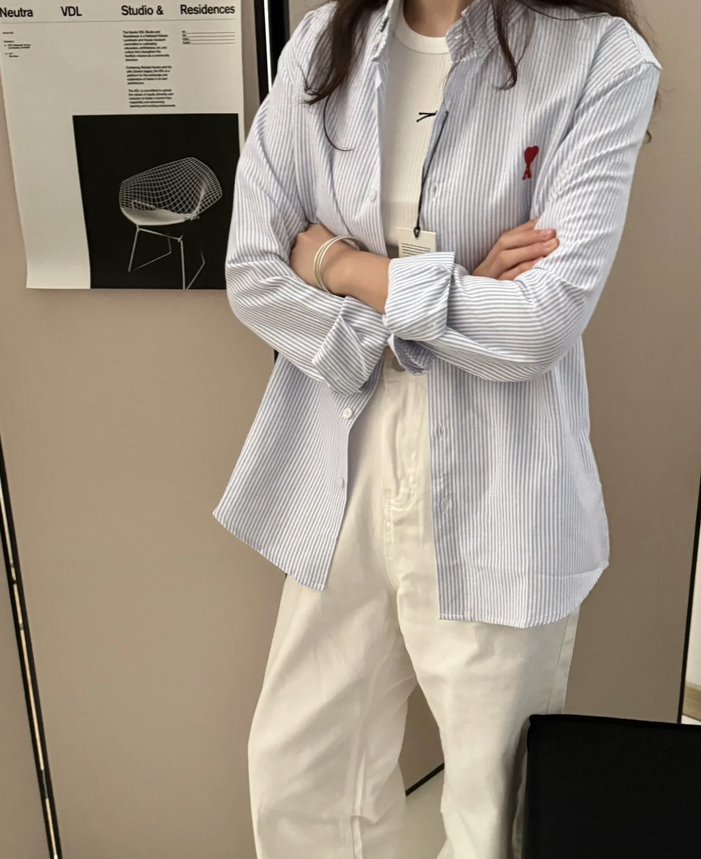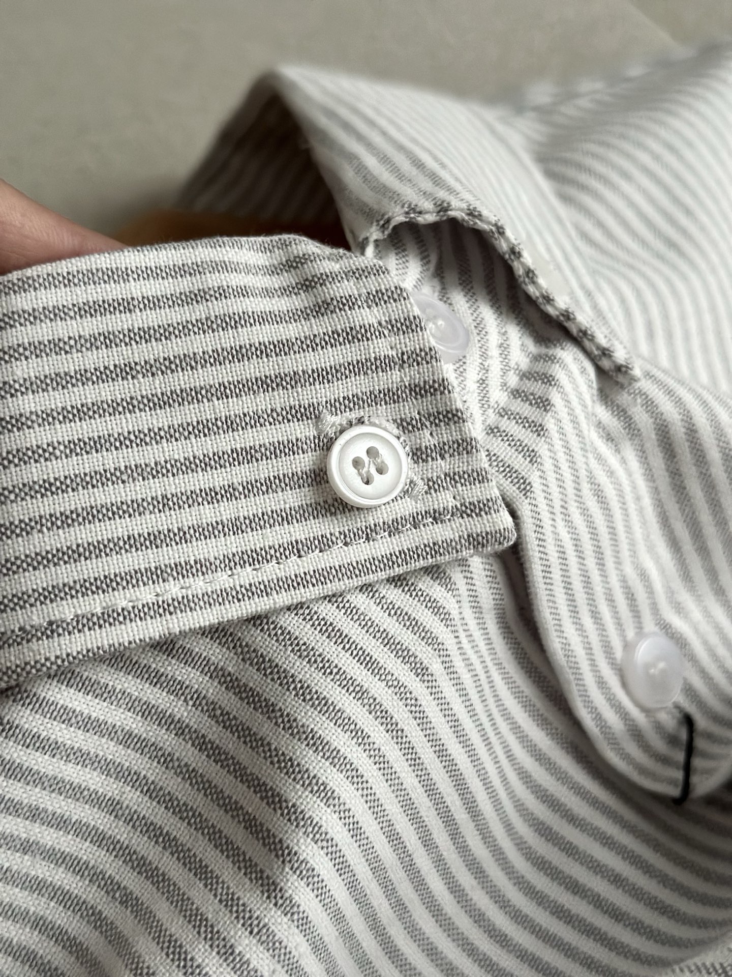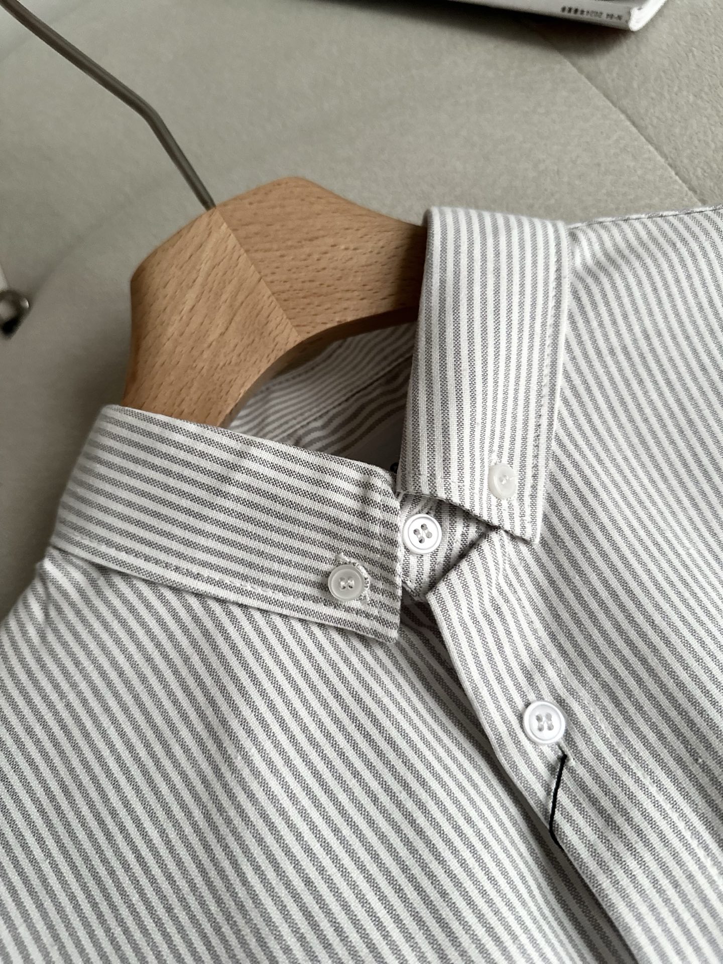 灰白条纹!! 轻松简约的穿搭永不过时! 一件细条纹衬衫应对早晚温差,灰白条纹清爽干净,轻松穿出学院风look,上身很显高显瘦
