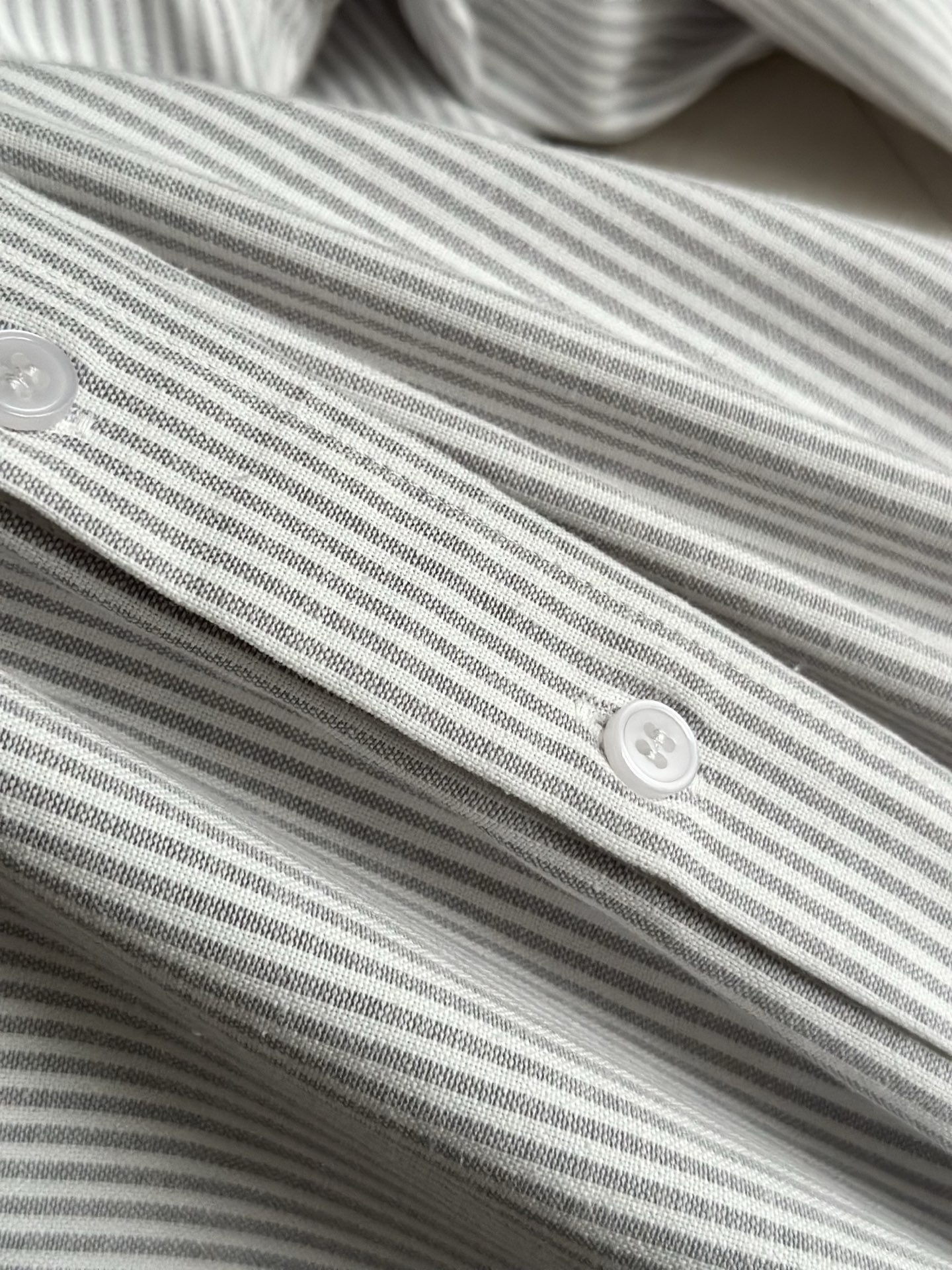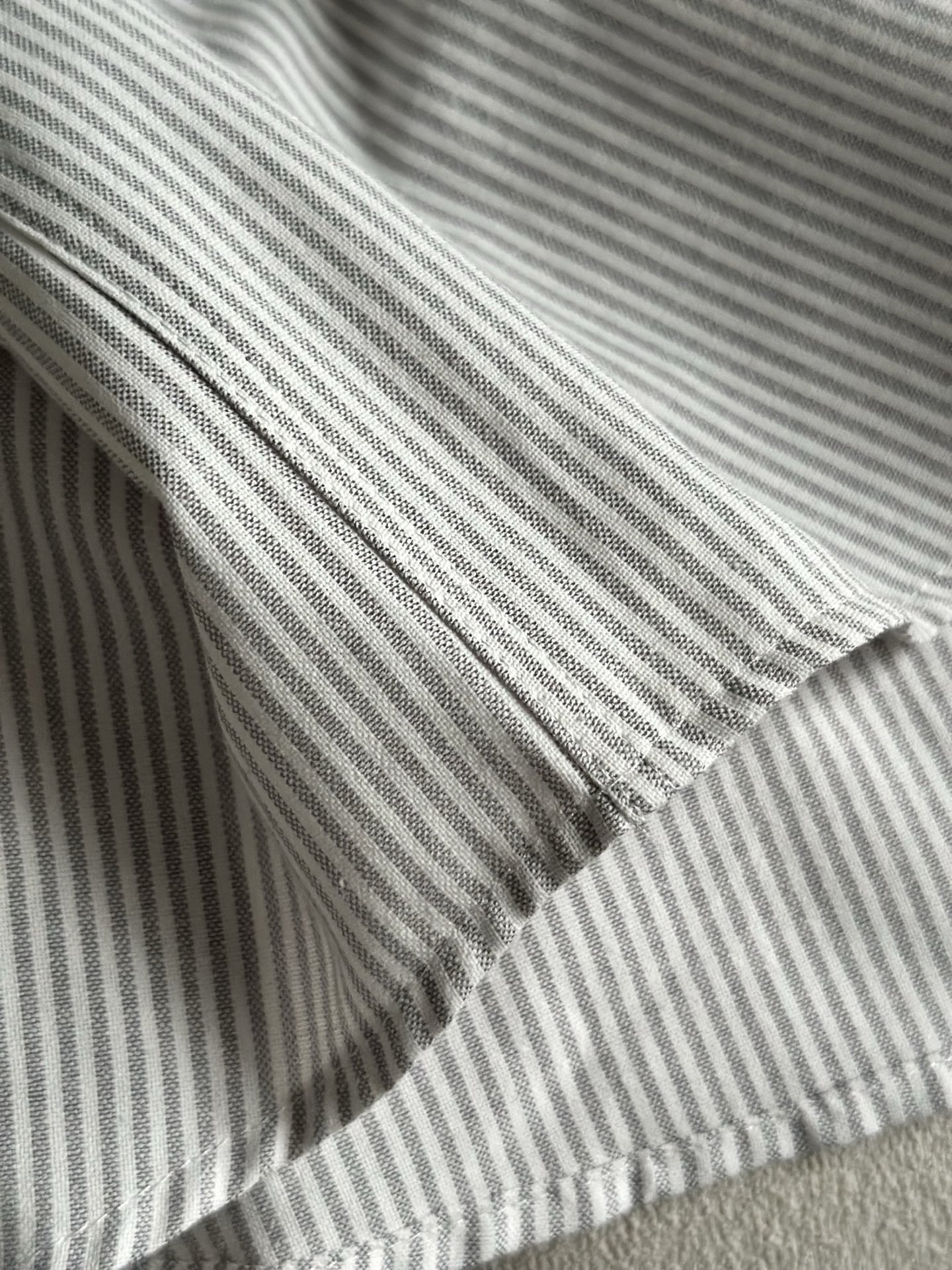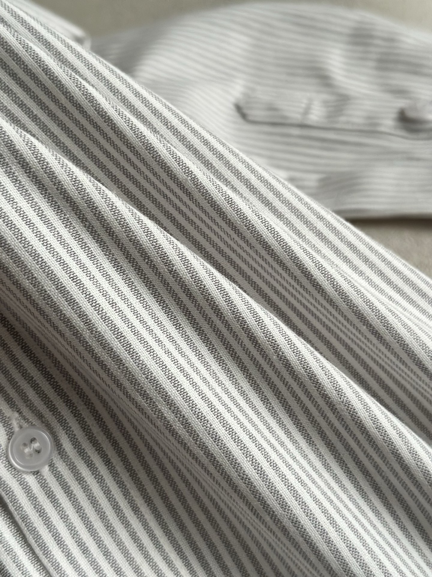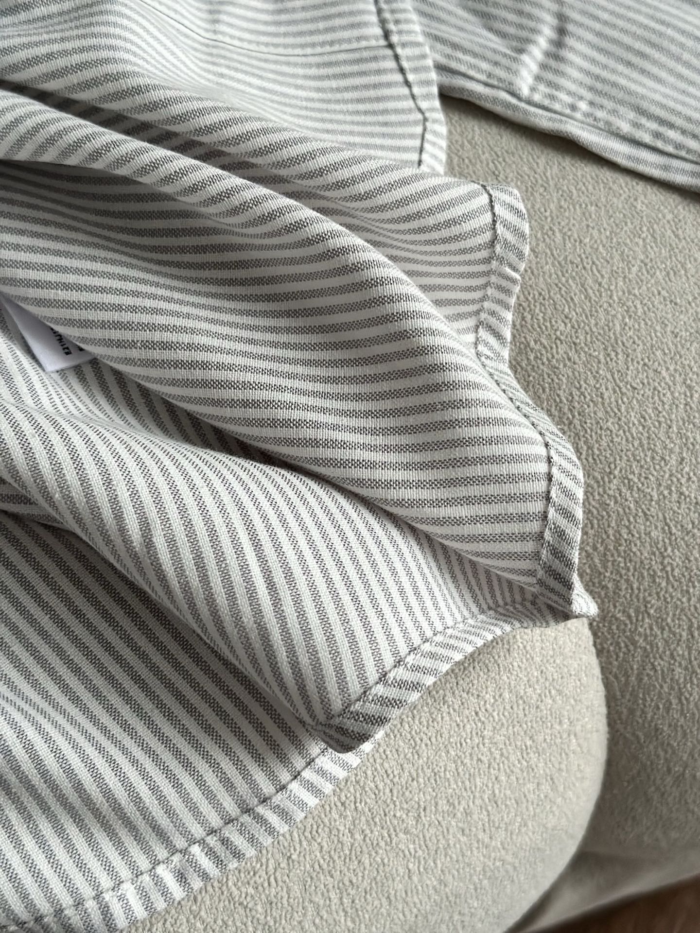 灰白条纹!! 轻松简约的穿搭永不过时! 一件细条纹衬衫应对早晚温差,灰白条纹清爽干净,轻松穿出学院风look,上身很显高显瘦