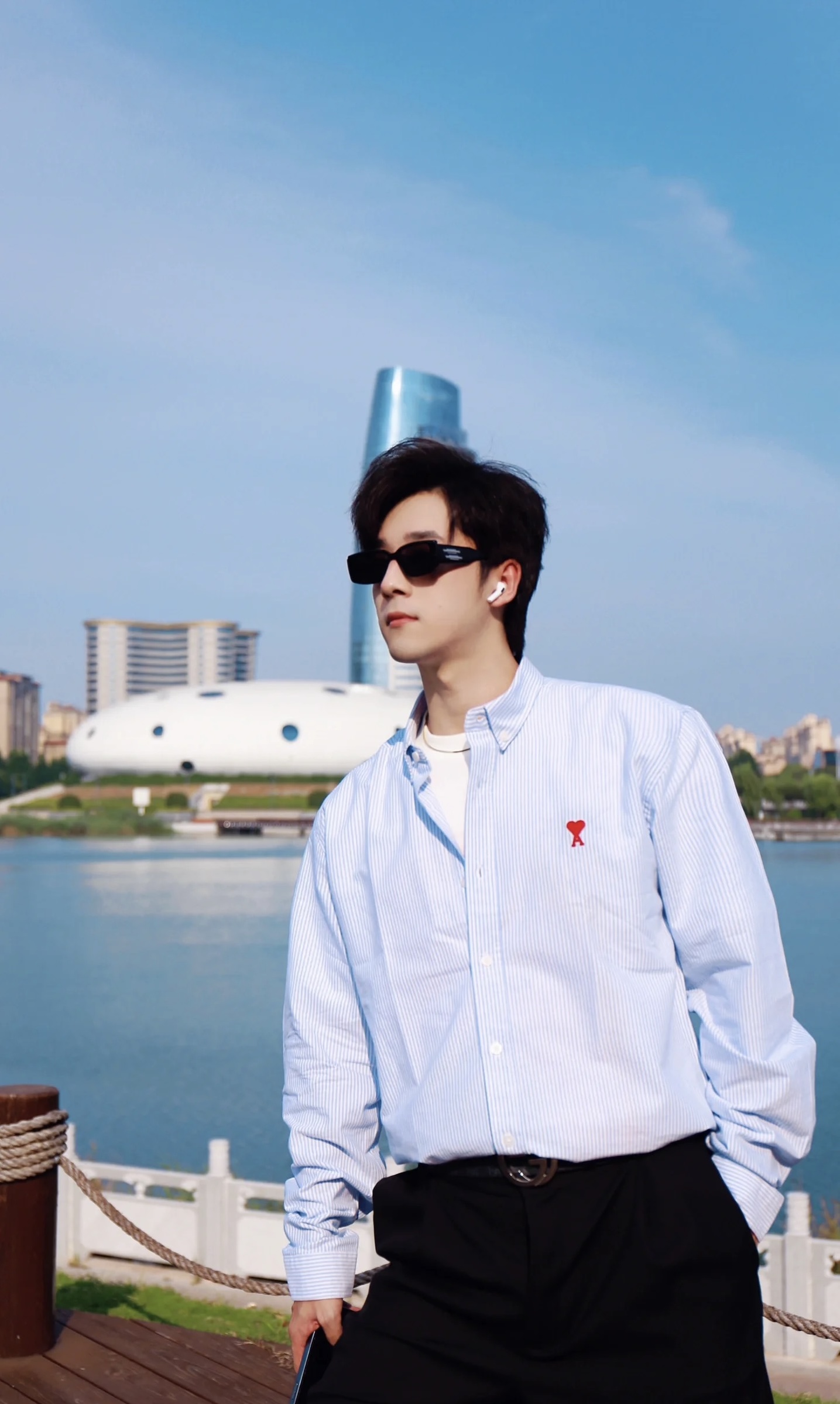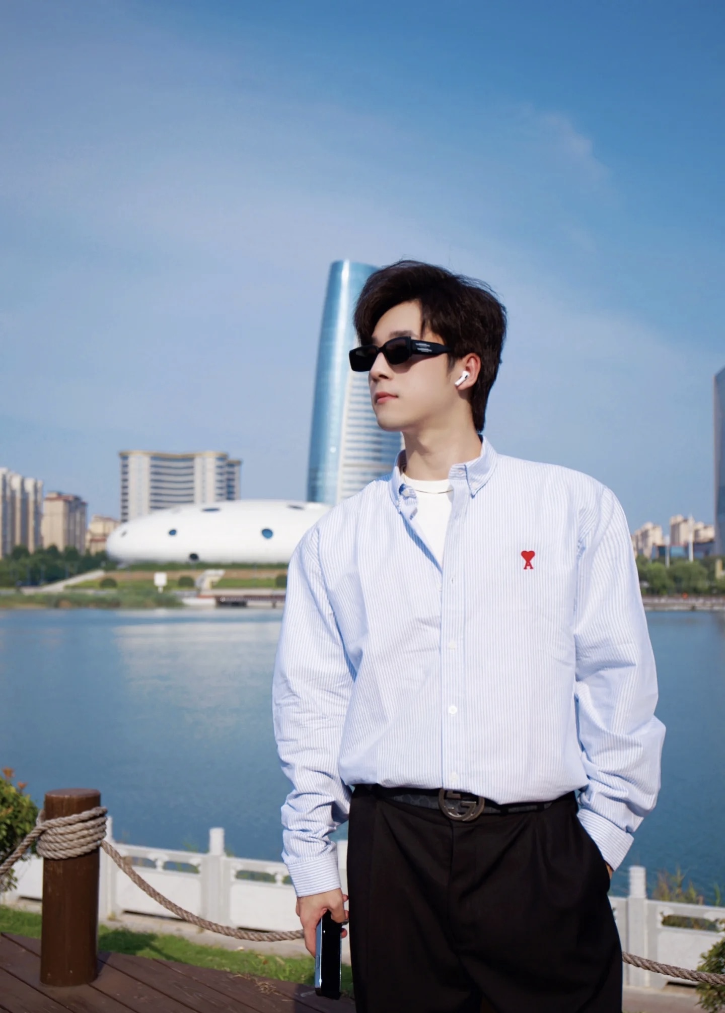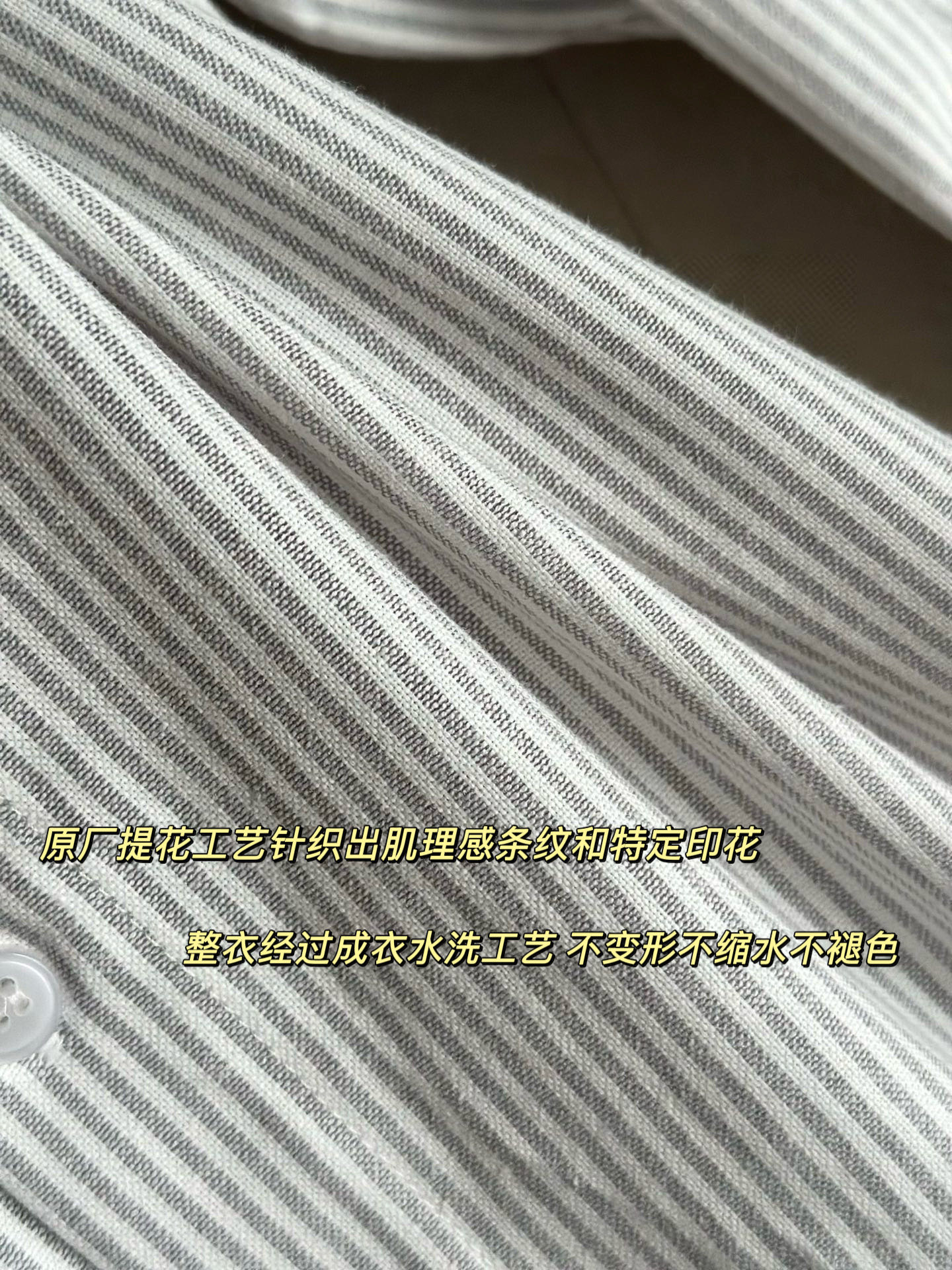 蓝白条纹!! 很治愈清爽的蓝色 蓝色条纹配上定制提花后 又多了些不一样的味道 单穿还是做外搭都很nice 上班族也可以秒变精致男大/女大‼️