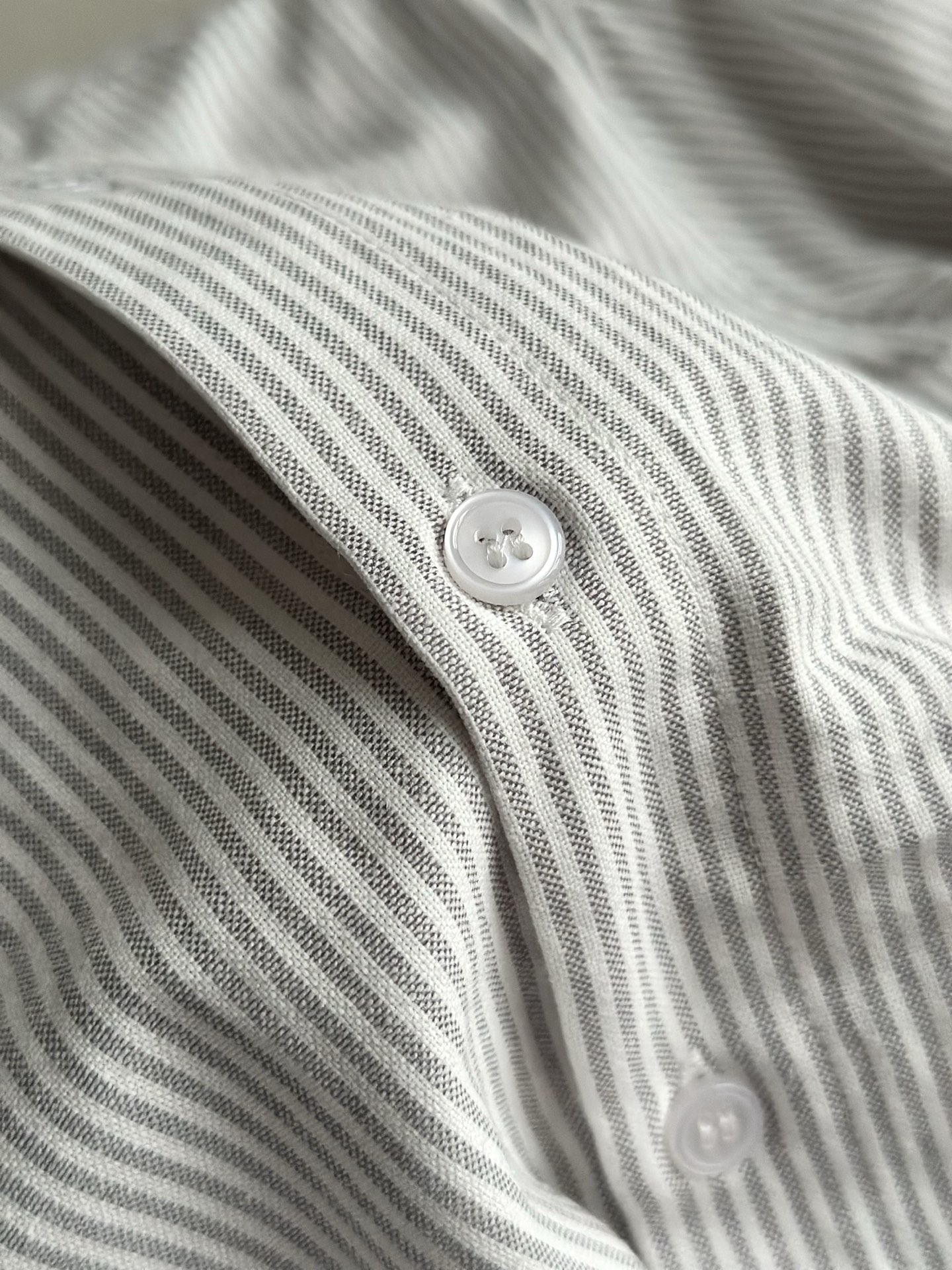 全身做了贝壳扣开合!! 质感超好,贝壳扣自带温润的光泽,扣子开合顺滑,日常穿脱方便,每一颗都牢牢固定 不用担心松动掉落!