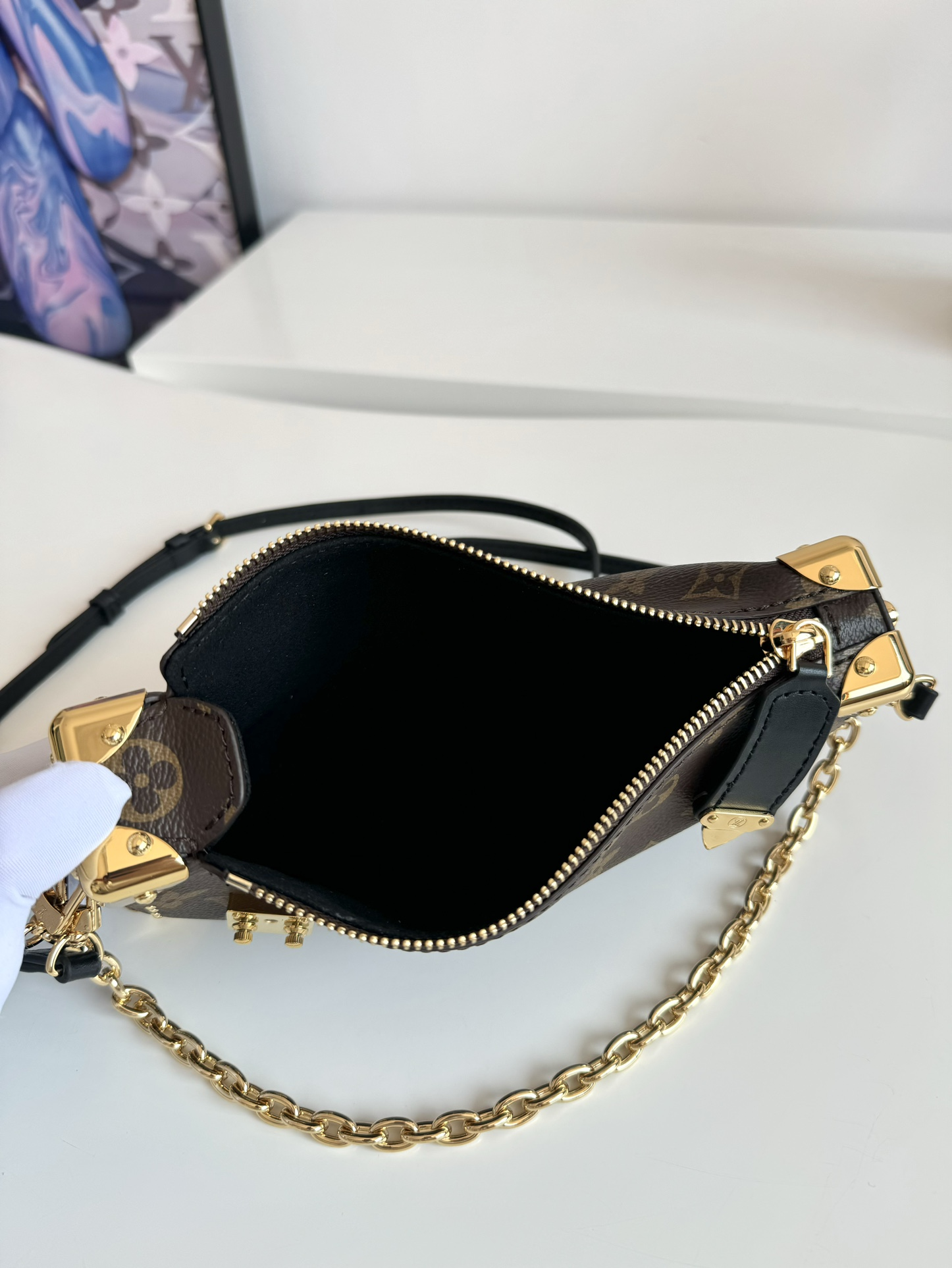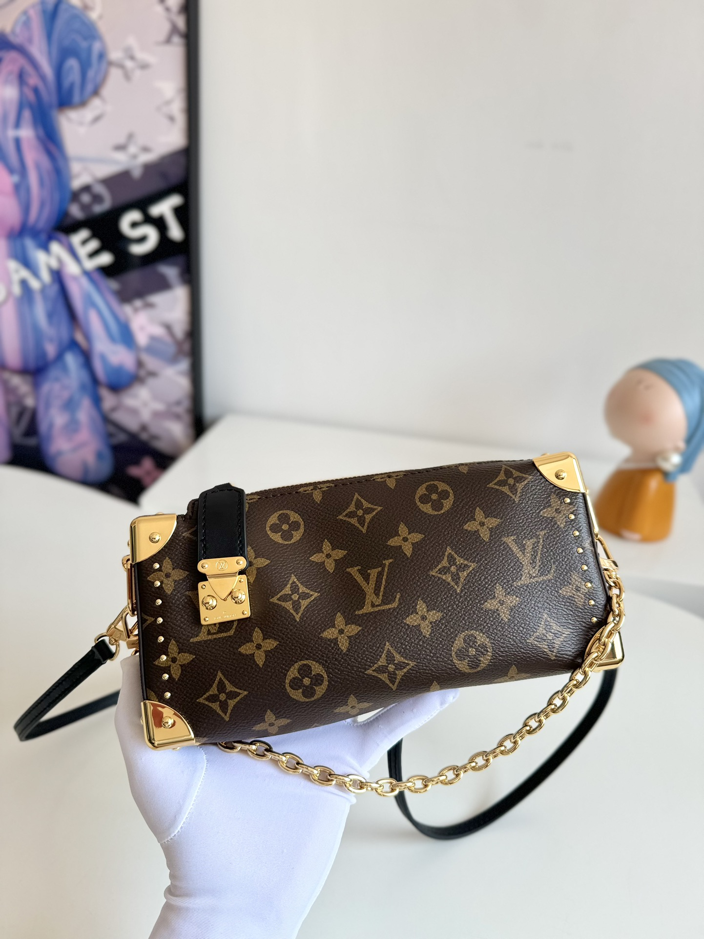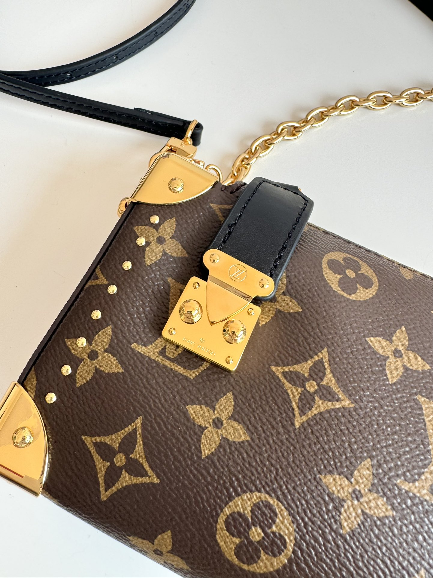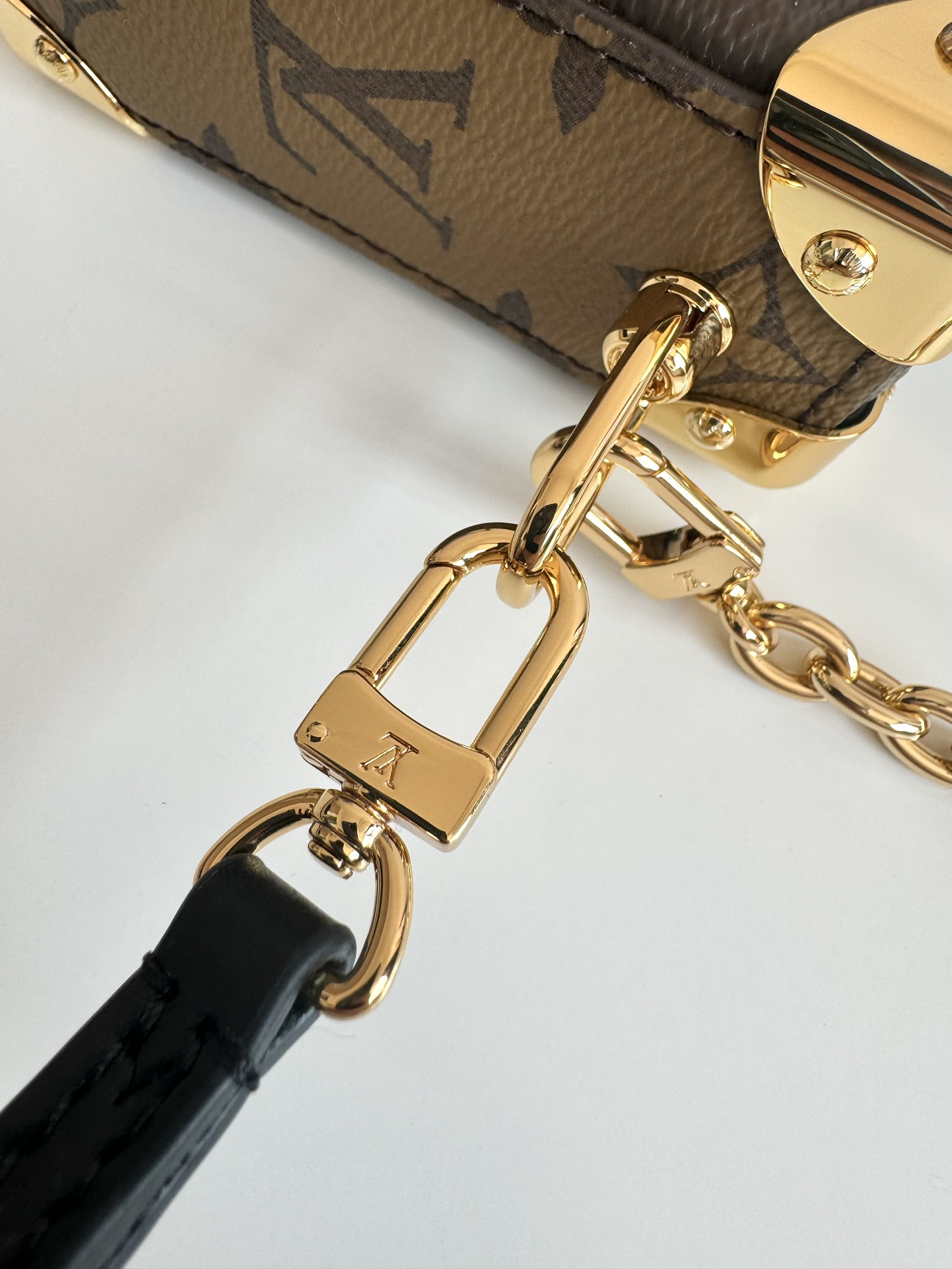 slim trunk 手袋以优雅之姿亮相2025cruise早春秀场,为经典 trunk 手袋系列再添新成员。monogram 帆布、monogram reverse帆布和光滑牛皮革饰边巧妙融合,彰显 nicolas ghesquière 的标志性笔触,s-lock 锁扣和金属铆钉致敬 trunk系列的悠久传统。尺寸:23x12x4cm