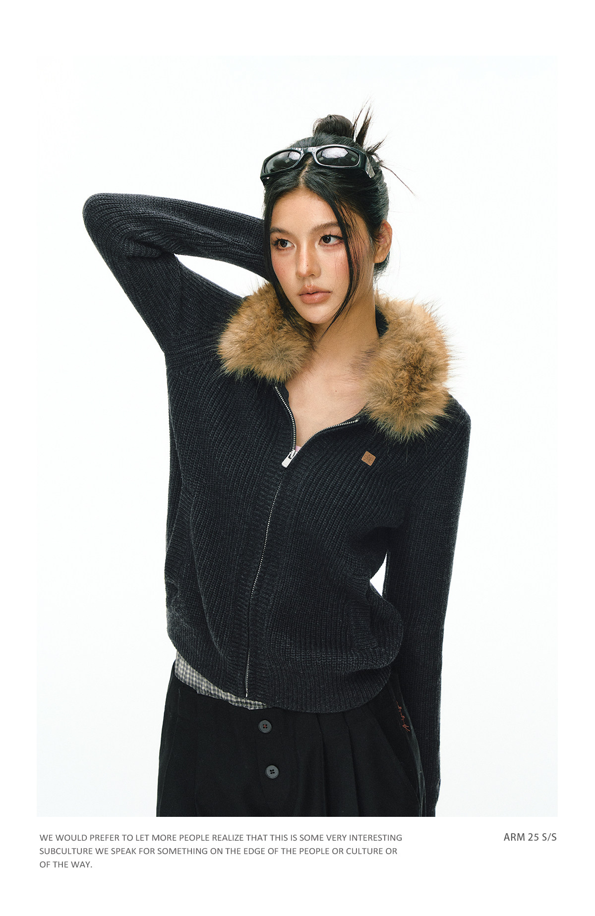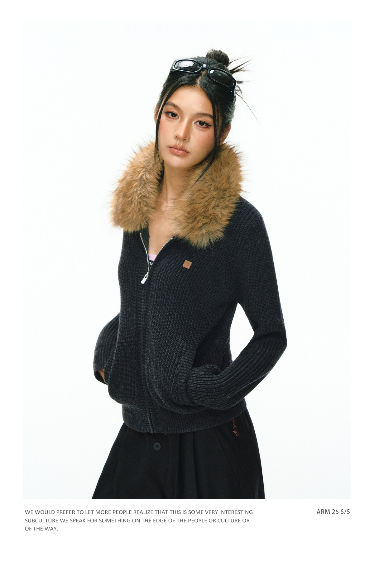 Ariseism 美式复古高级感毛领开衫毛衣外套女秋冬新款加厚上衣