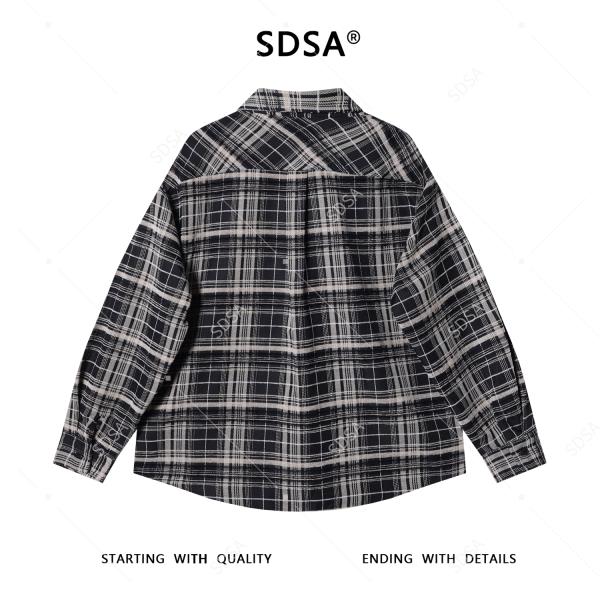 6503SDSA男士秋冬新款痞帅男装美式复古撞色格纹翻领长袖T恤时尚衬衣