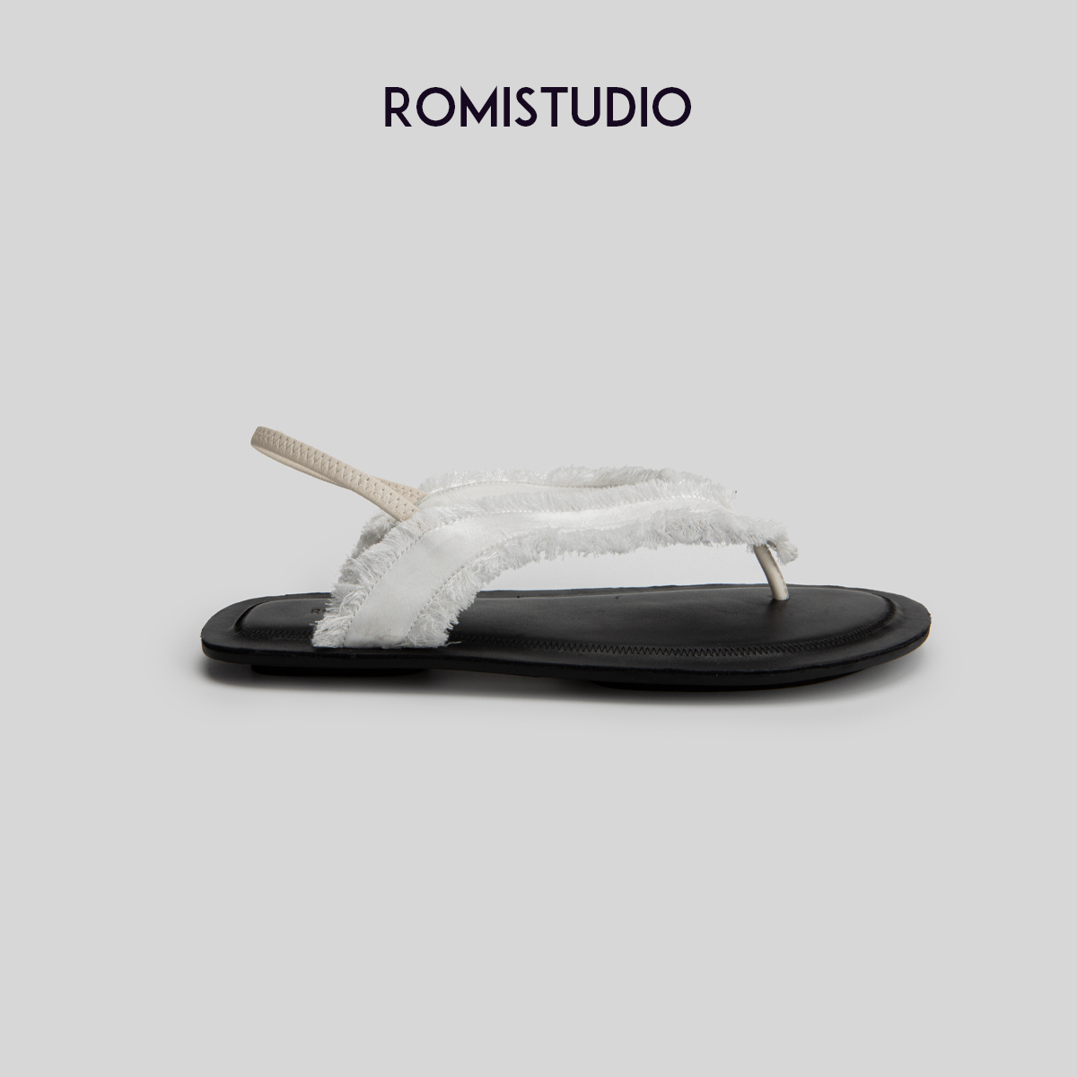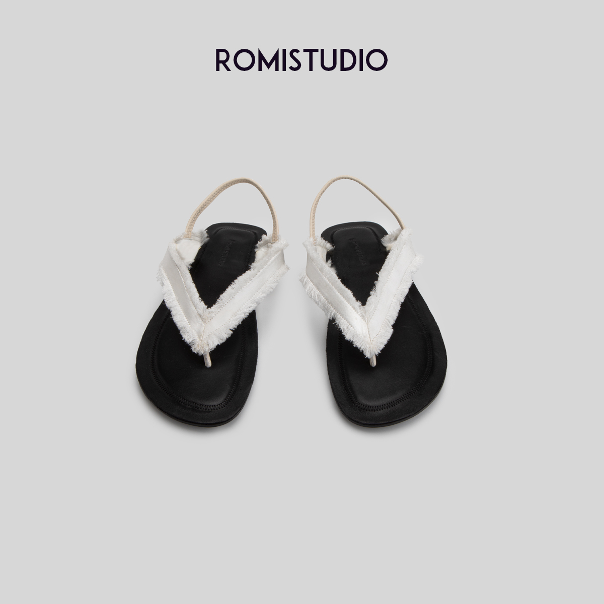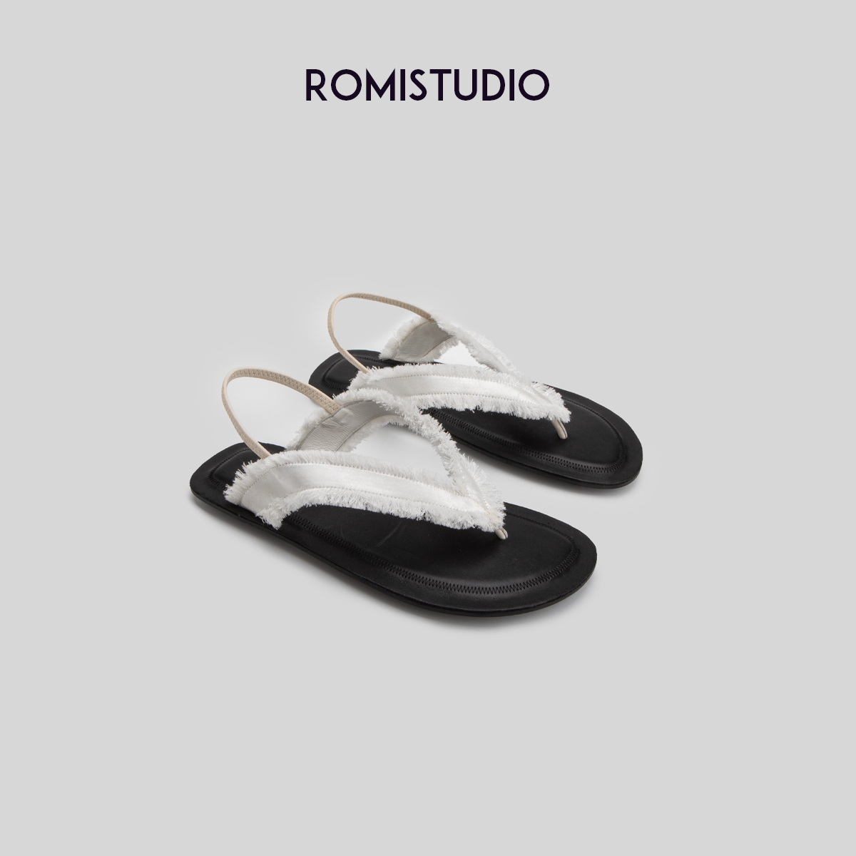 ROMI STUDIO"清凉仲夏"复古休闲平底人字夹趾白色罗马凉鞋S8042