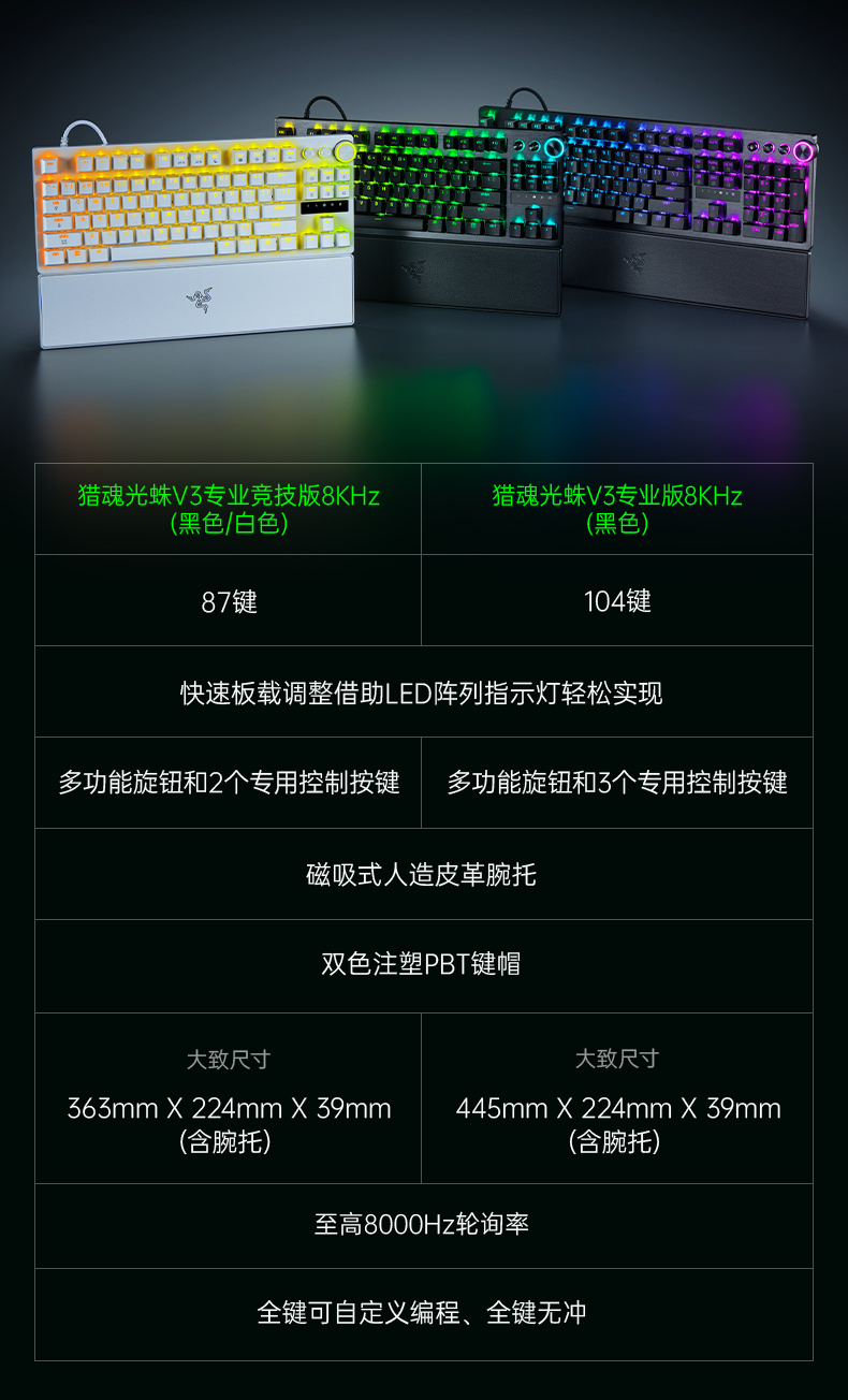 Razer雷蛇猎魂光蛛V3 Pro专业竞技版版8KHz光轴键盘【雷蛇官方直营,延保一年】