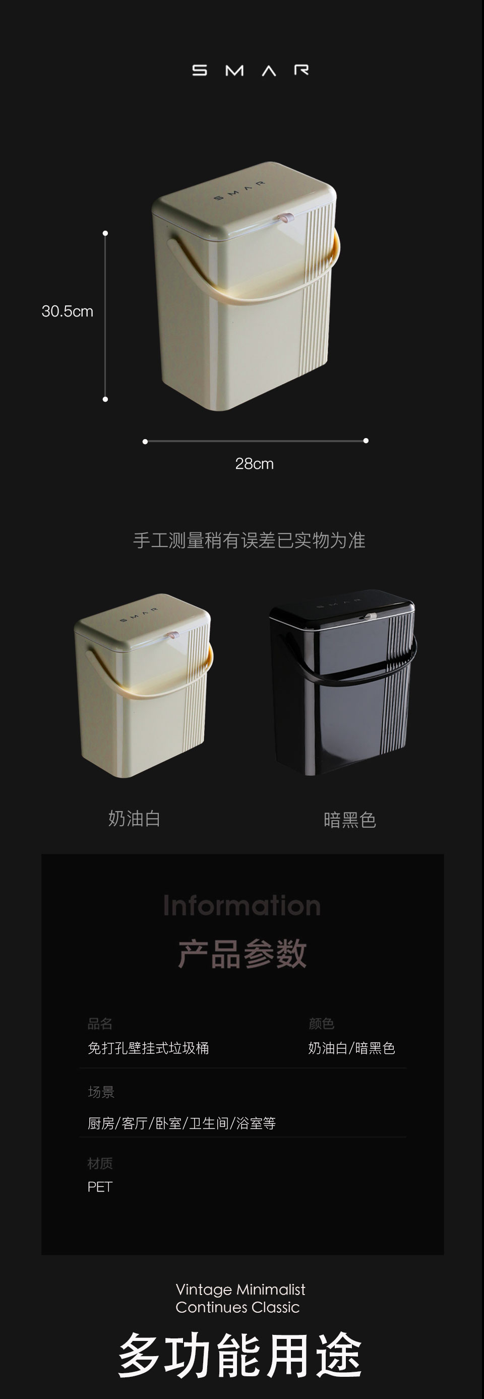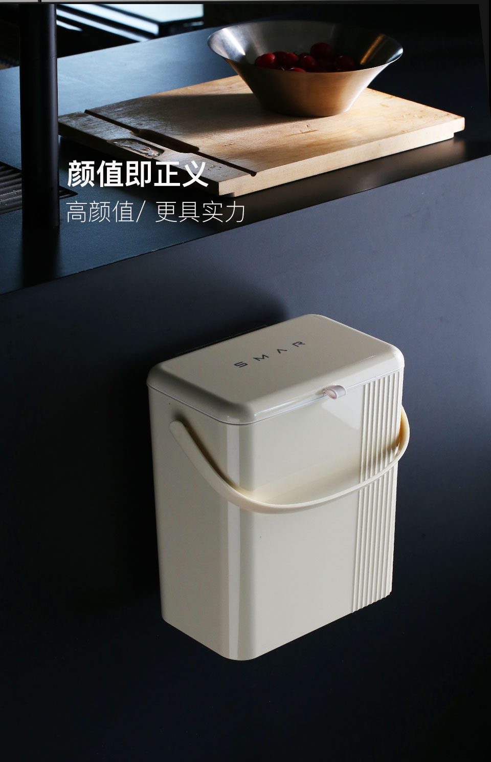 娜家法式奶油风厨房壁挂式垃圾桶