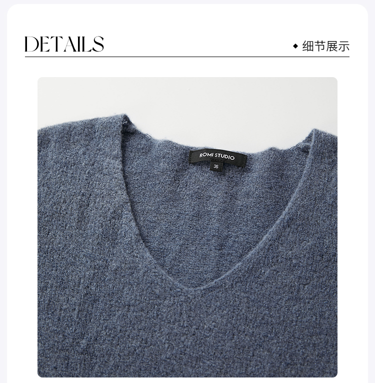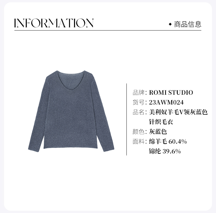 ROMI STUDIO-B “内外兼备”美利奴羊毛V领灰蓝色针织毛衣23AWM024