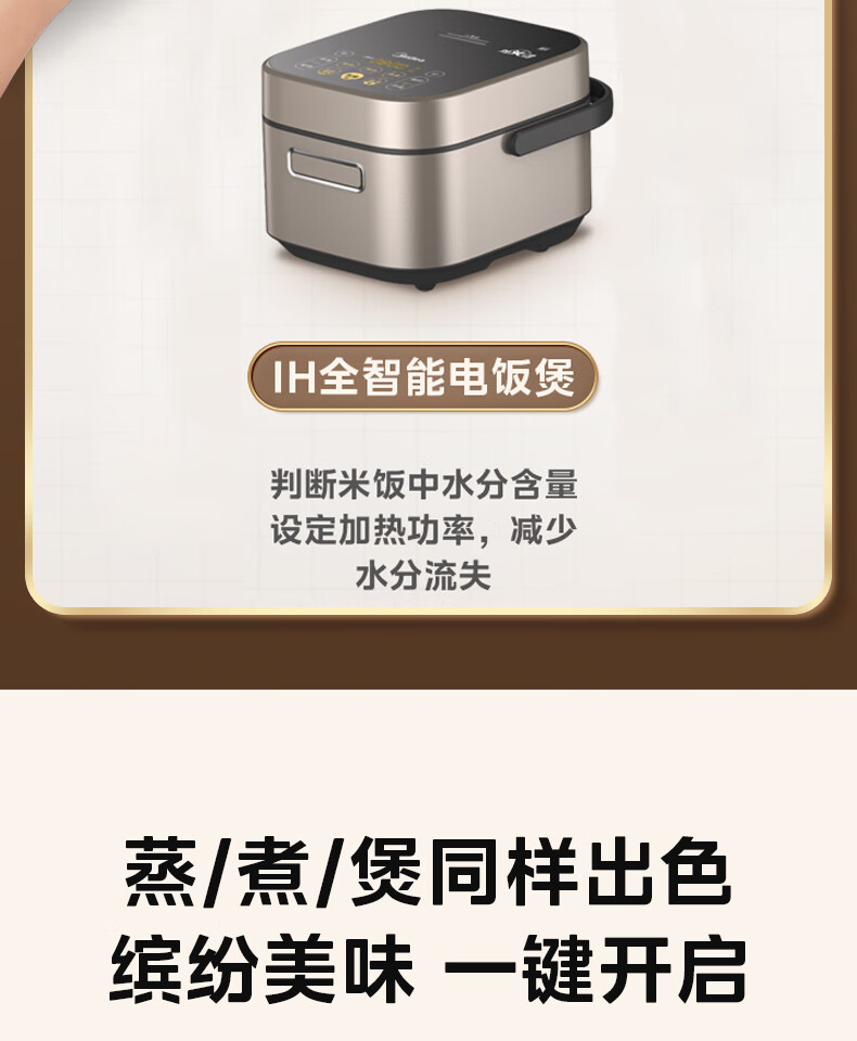 美的(Midea) 电饭煲家用智能触控3-6人家用3L智能预约多功能快煮电饭锅 立体IH大火力 线下同款 CFB3082H