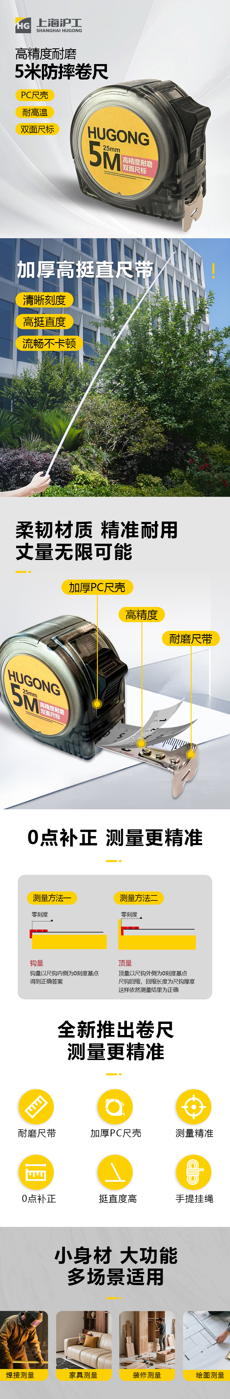 上海沪工卷尺/5M*25mm/加厚/双面尺带高强度PC材质