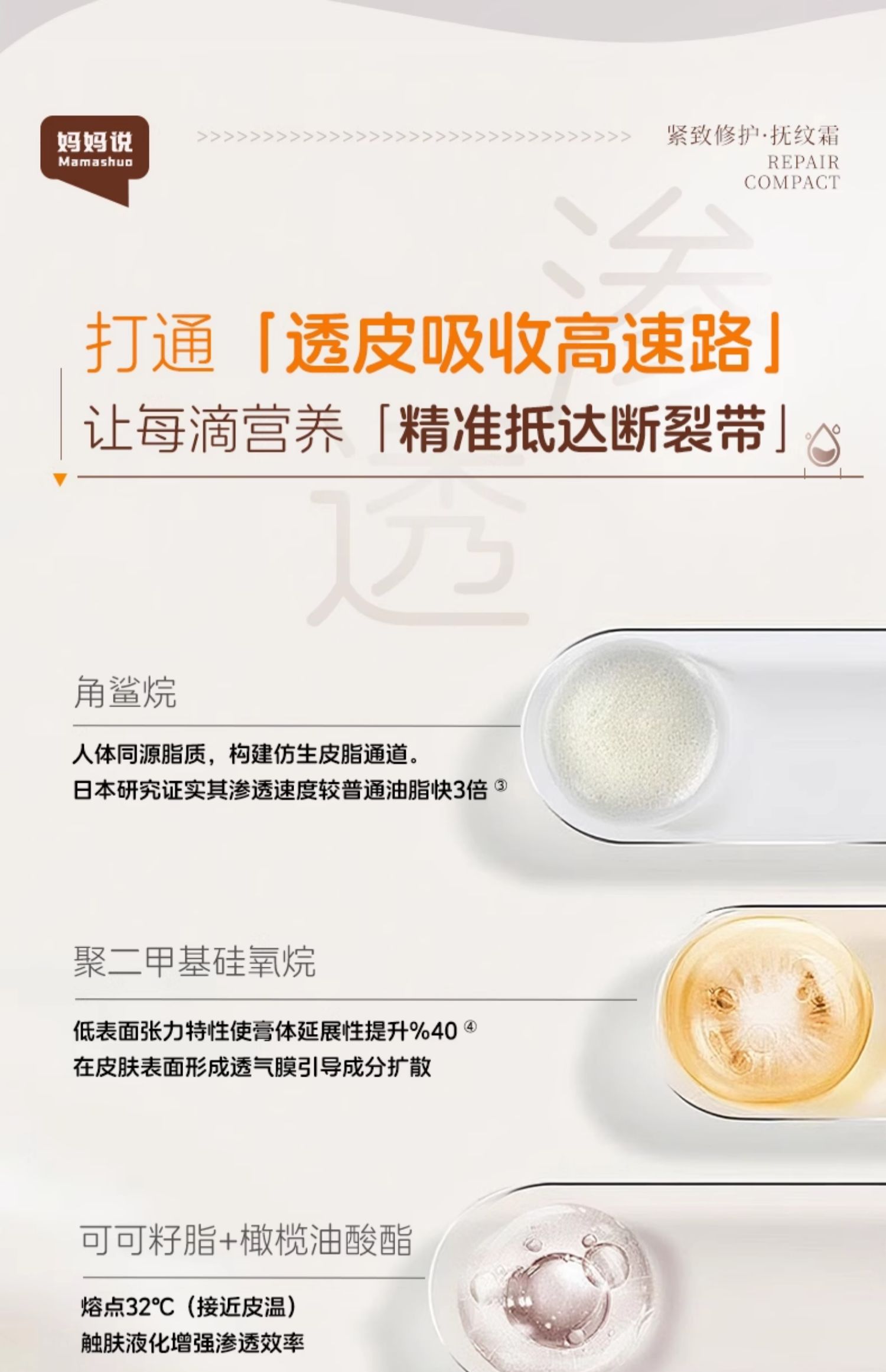 妈妈说抚纹霜妊娠霜银耳多糖淡纹油孕妇专用修护紧致肚皮抚纹淡化