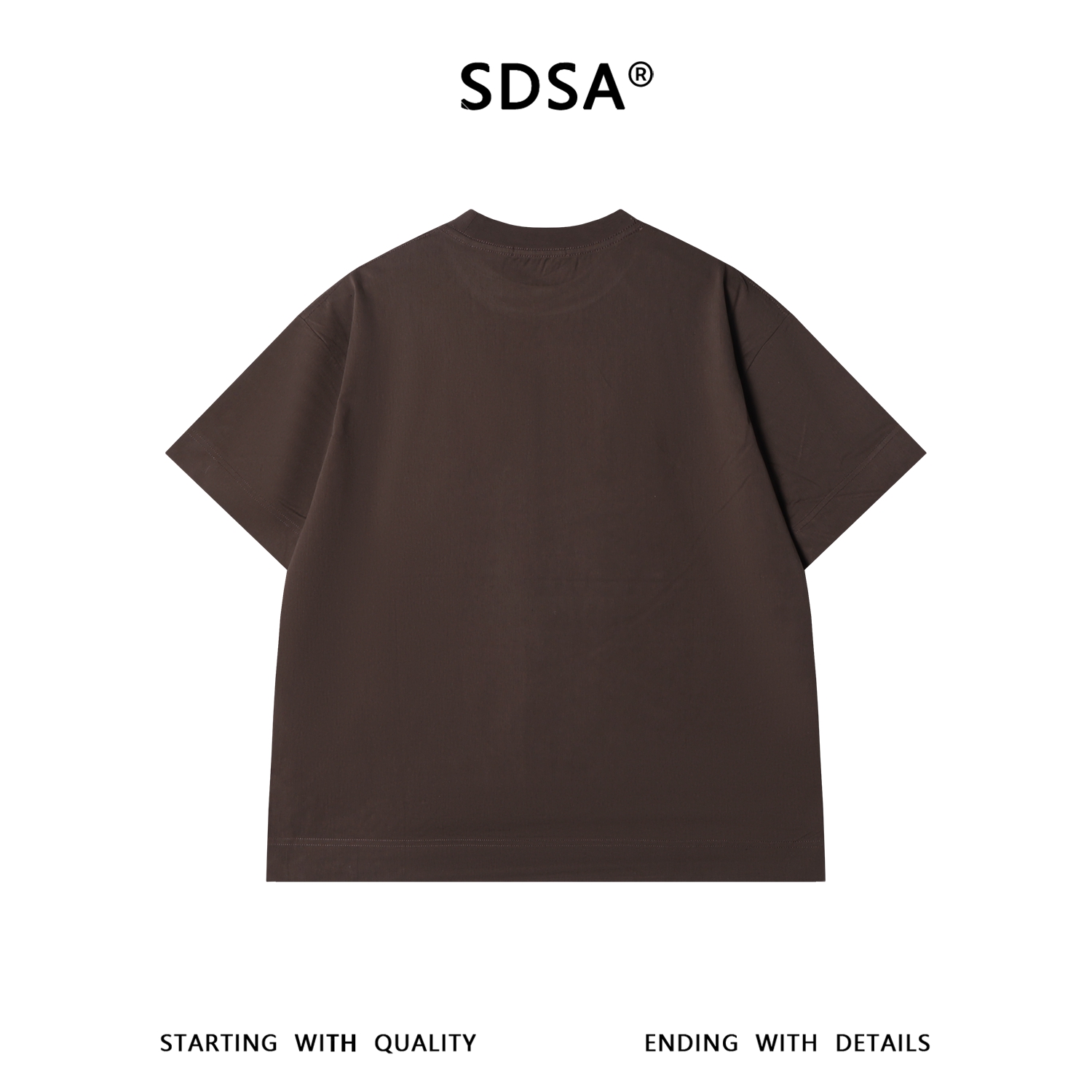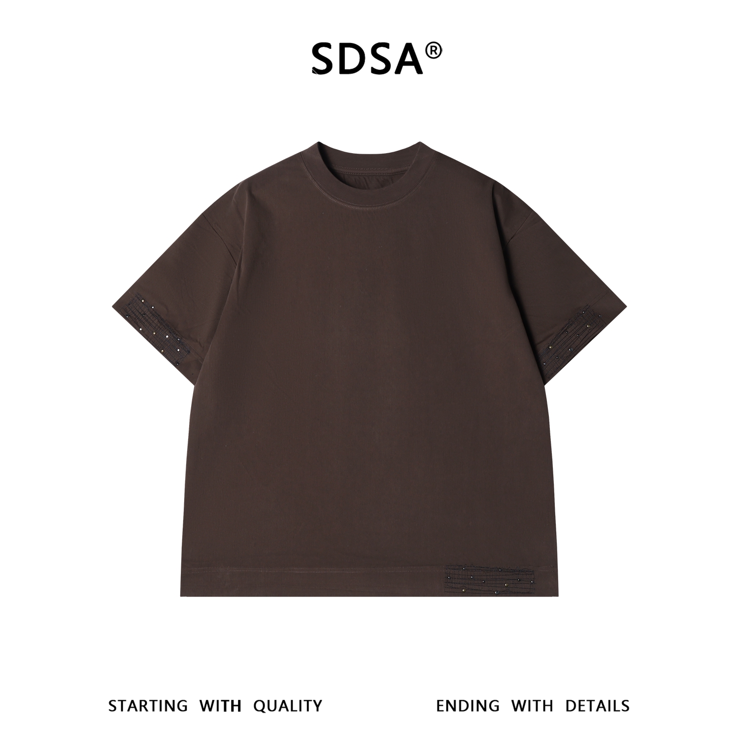 SDSA男装2026新款高贵轻奢简约网格钉珠拼接宽松短袖T恤百搭宽松