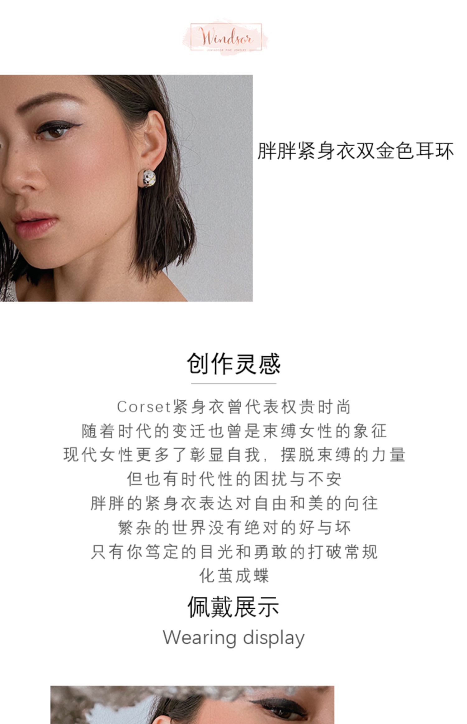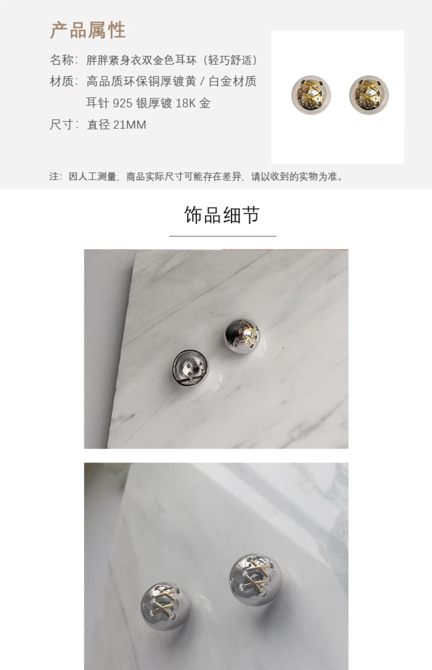 LHWINDSOR 胖胖紧身衣双金色耳钉现代简约轻巧舒适耳饰