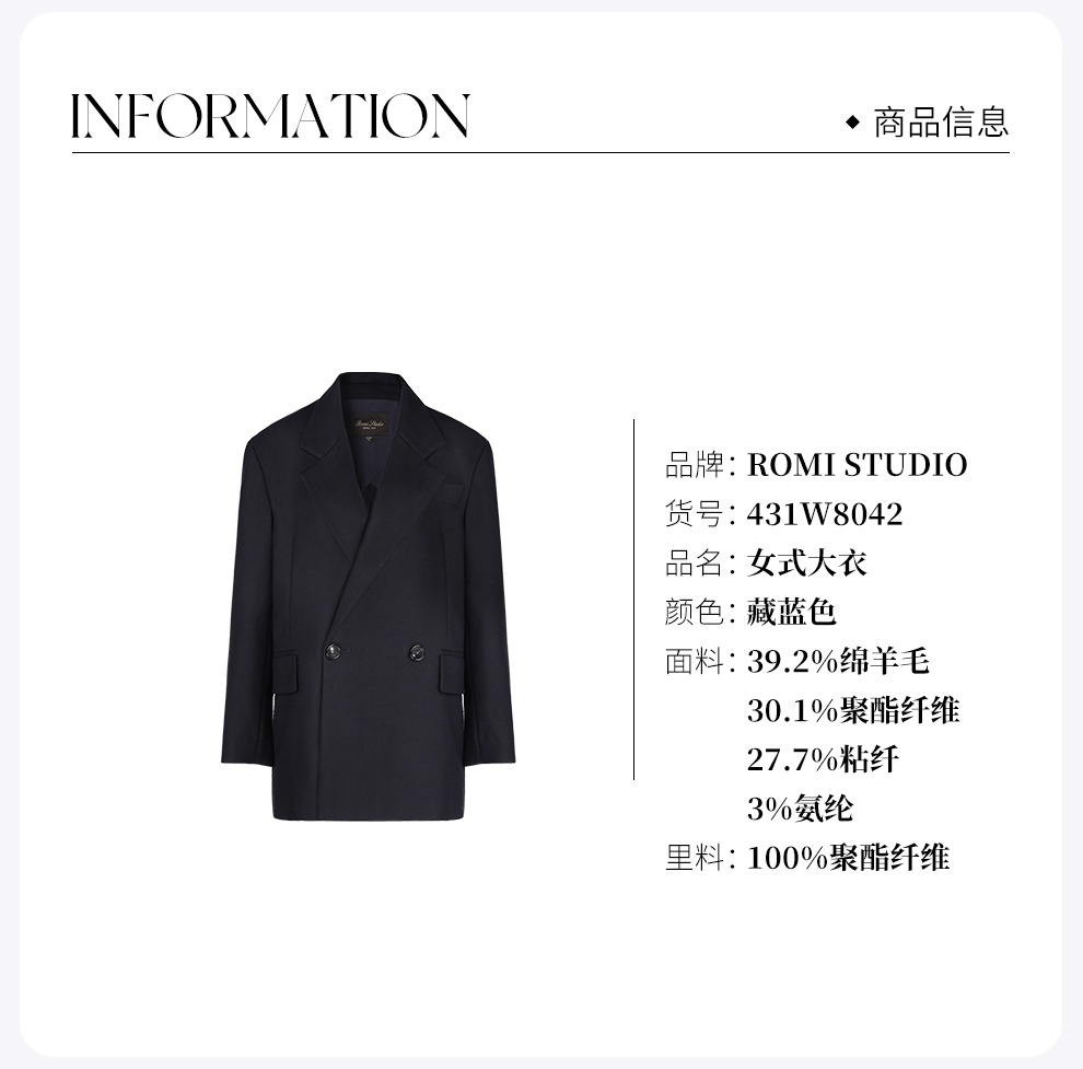 ROMI STUDIO “率性自我” 羊毛混纺肤感廓形H直身西装外套431W8042