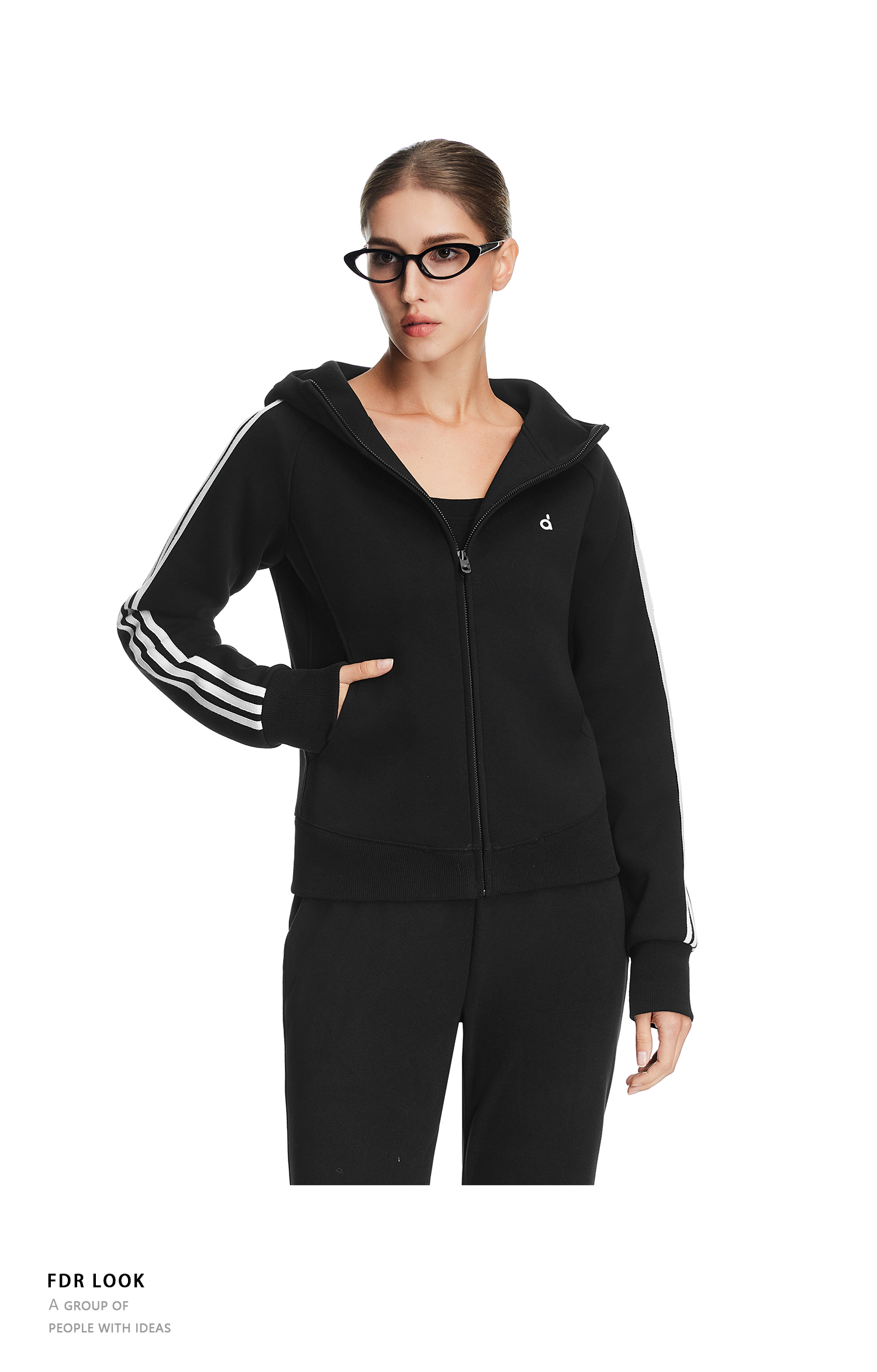 FDR官方店 辣妹基础修身织带连帽卫衣外套女秋季拉链开衫帽衫上衣