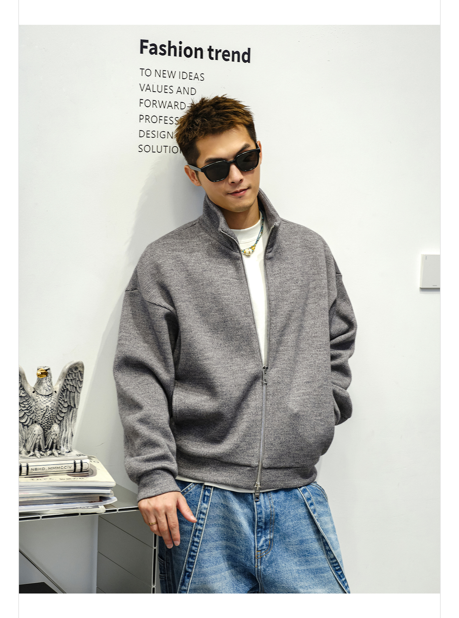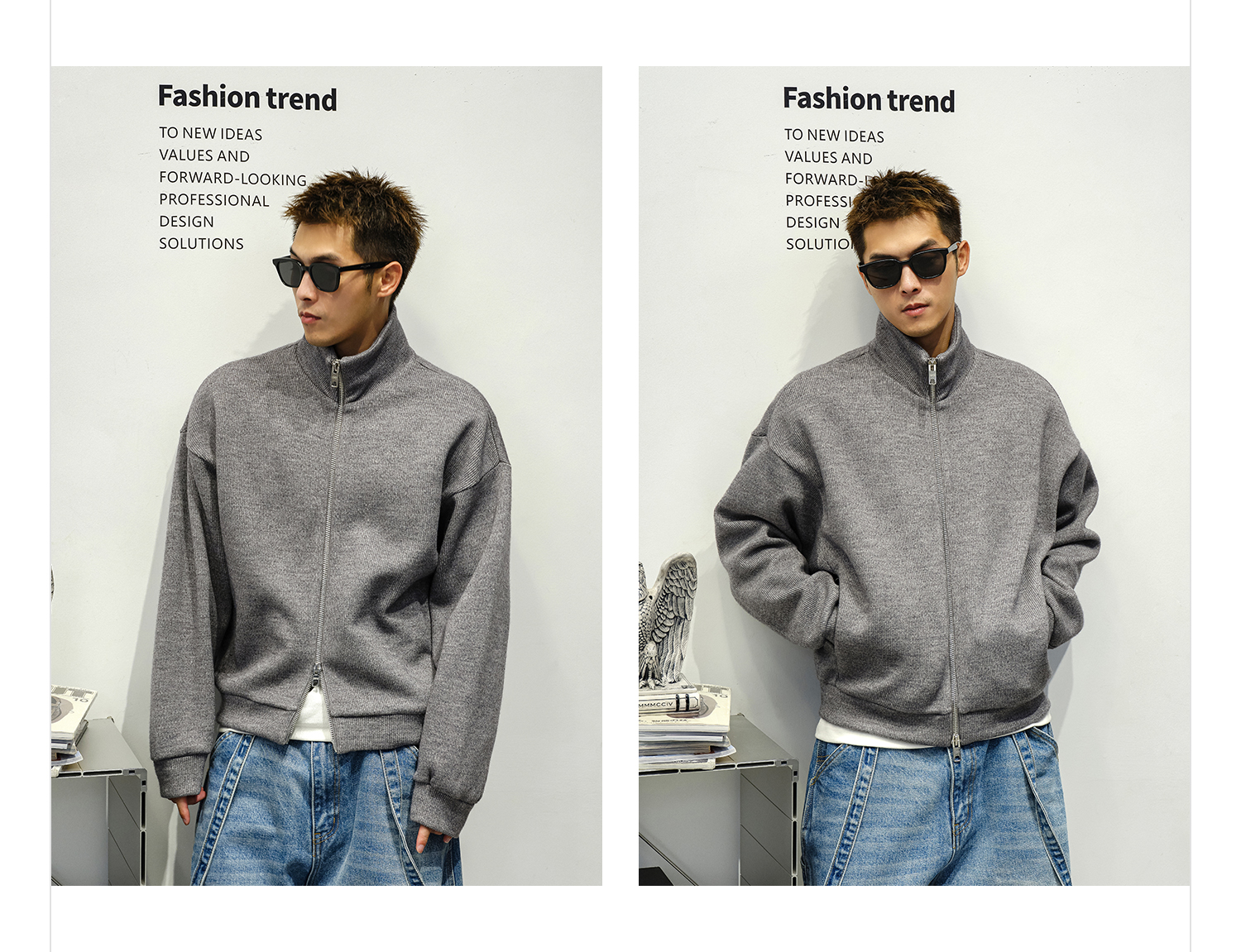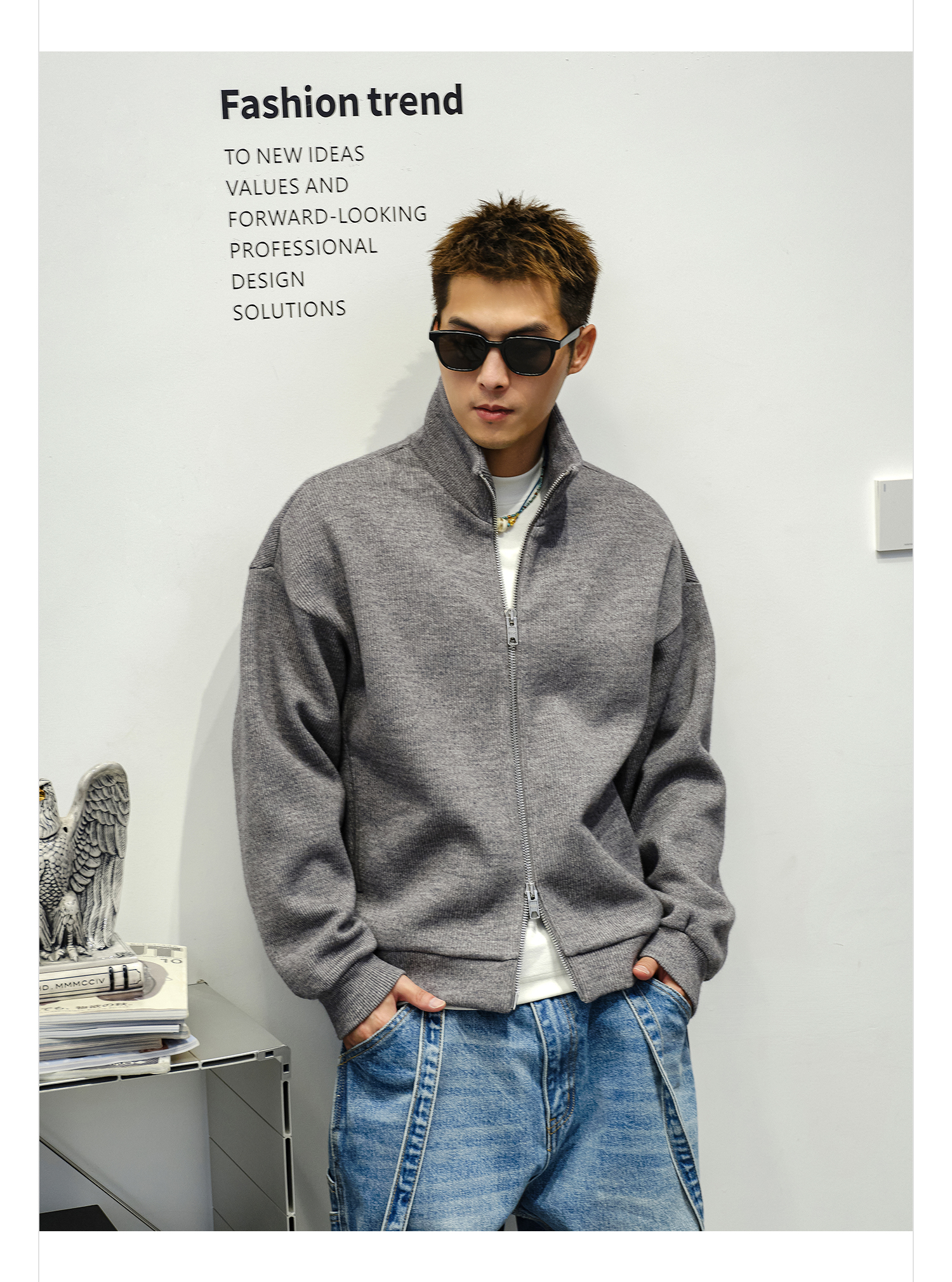 徐太浪【双拉链 cleanfit】灰色立领夹克男秋冬新款休闲防风外套