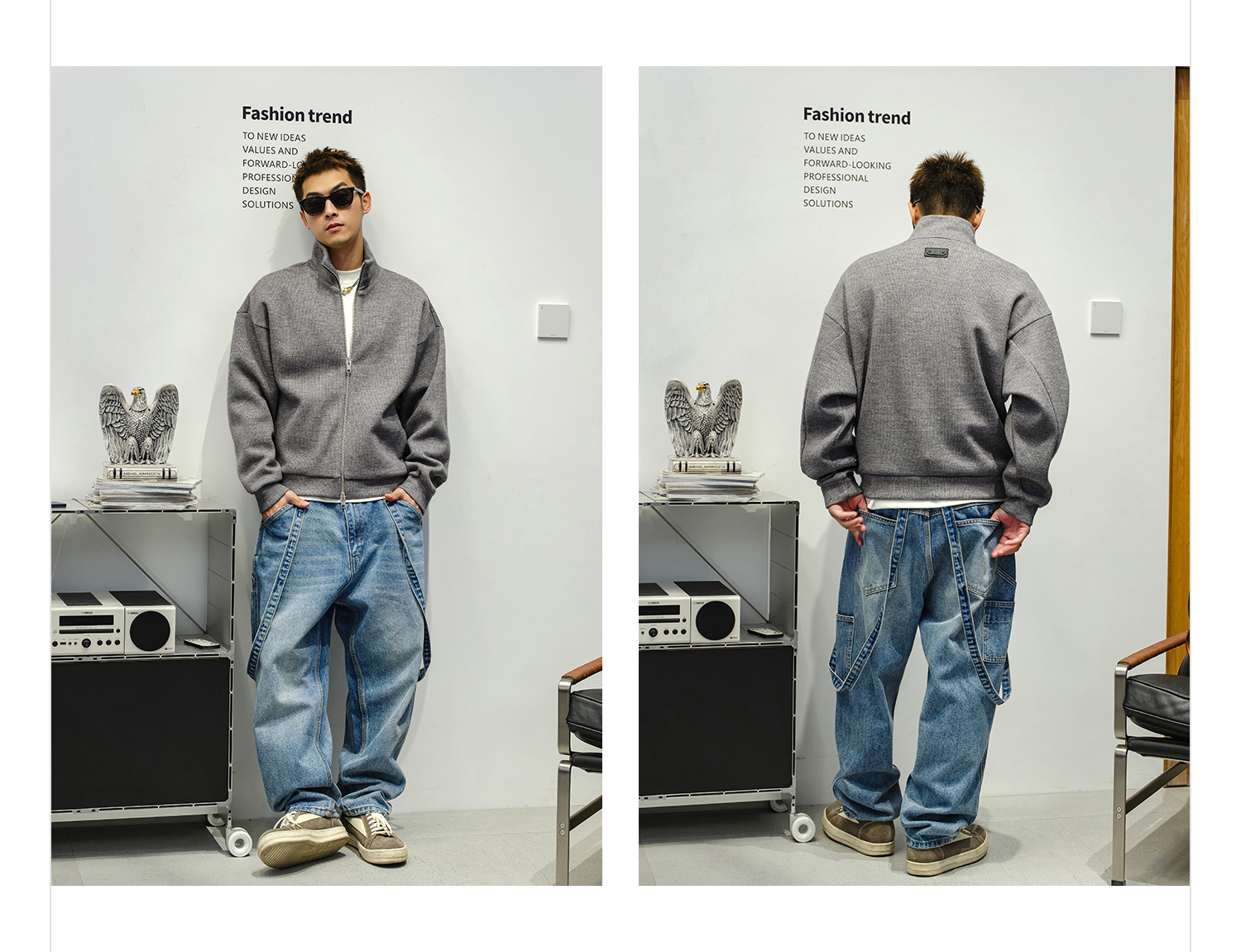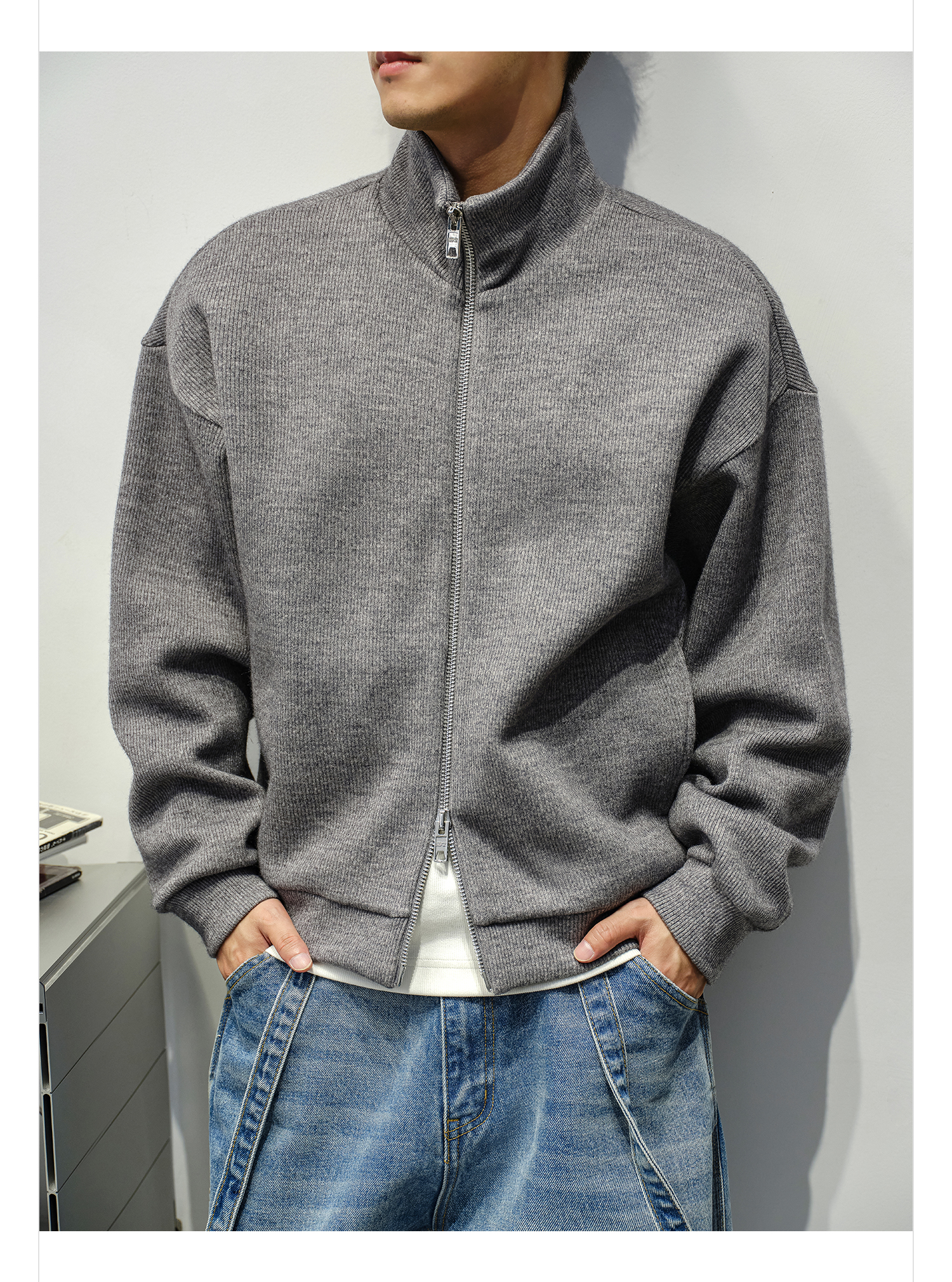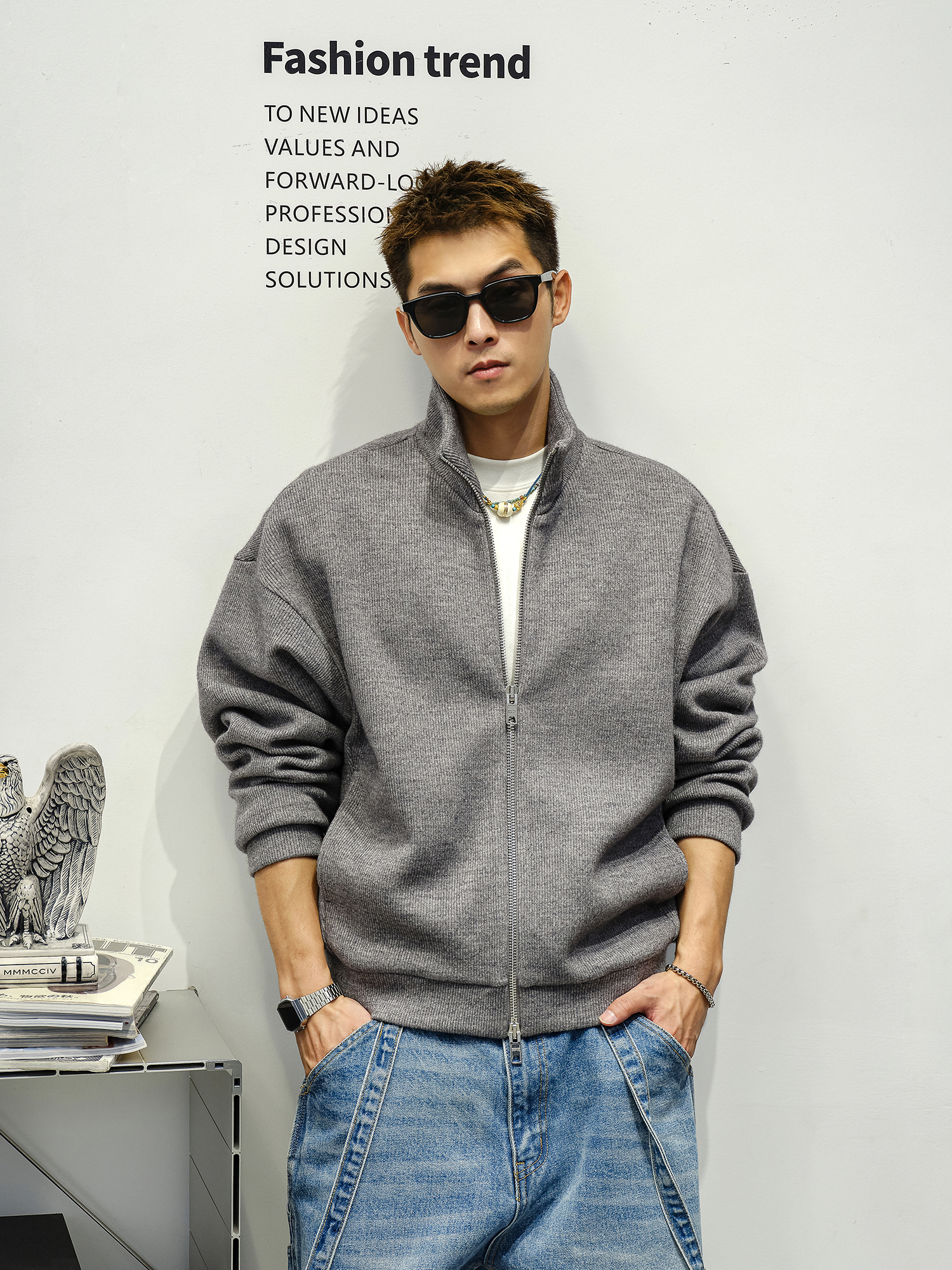 徐太浪【双拉链 cleanfit】灰色立领夹克男秋冬新款休闲防风外套