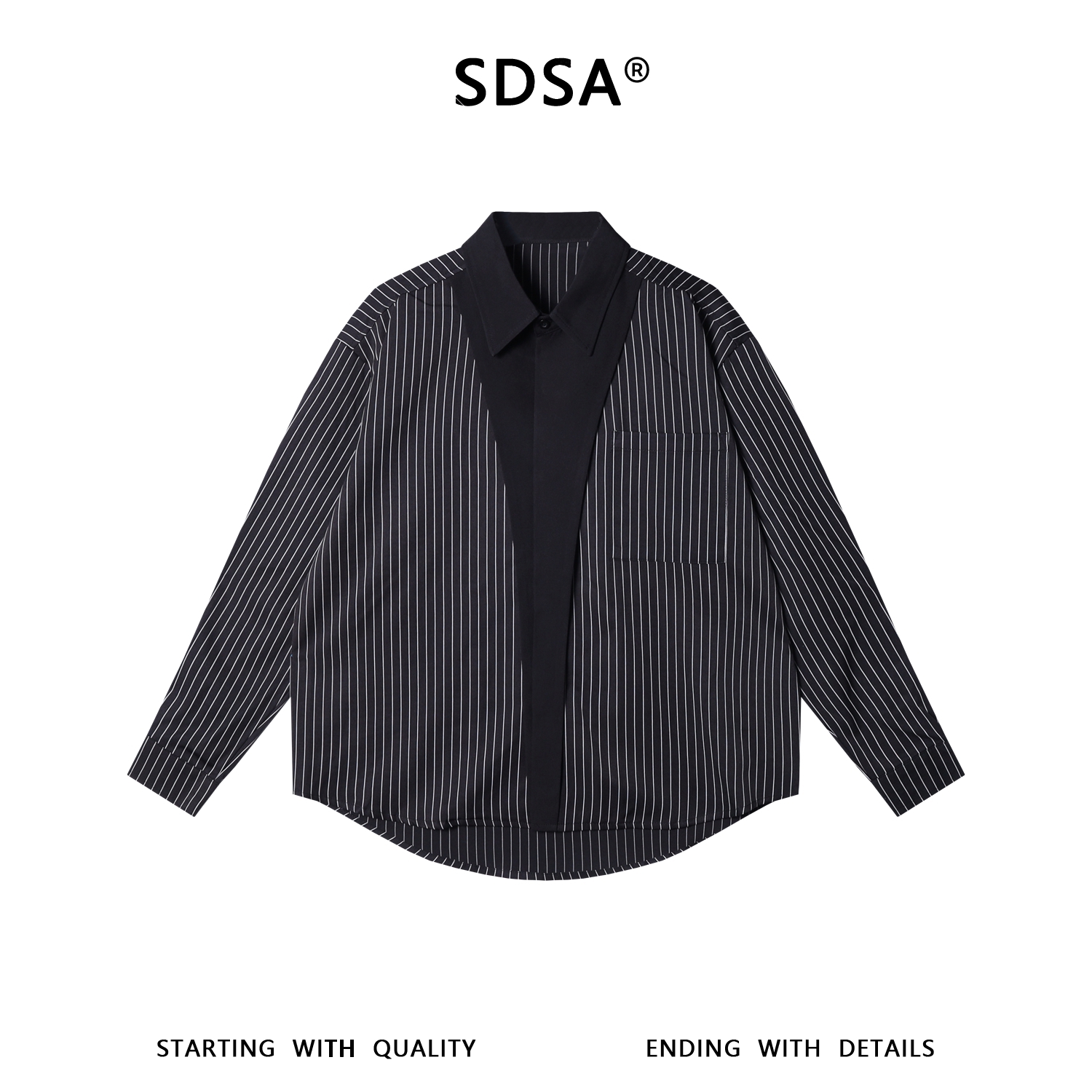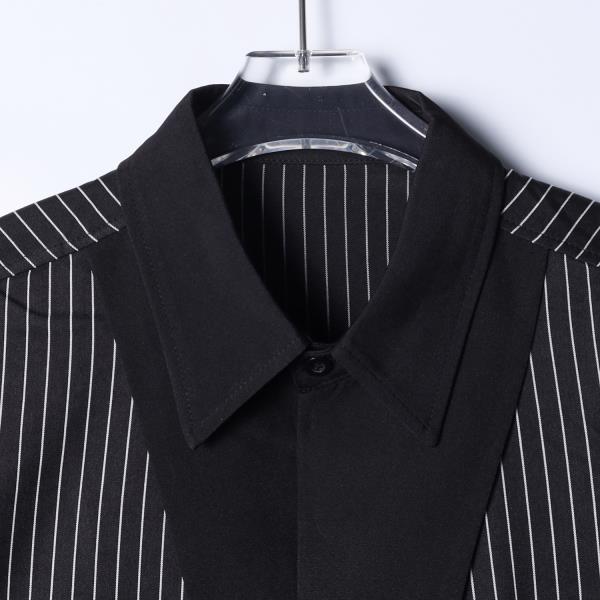 7014SDSA男士秋冬新款痞帅男装潮牌时尚撞色竖纹翻领领带衬衣百搭时尚